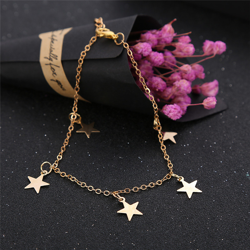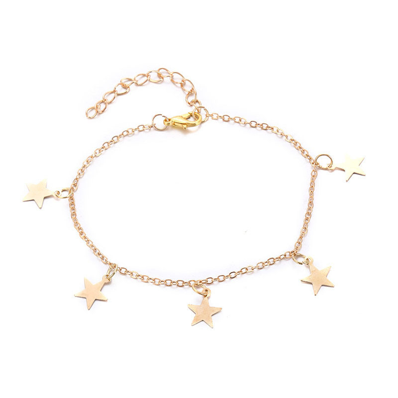 亚马逊金色星星脚链夏季海滩赤脚腿手链脚链夏季瑜伽沙滩脚链