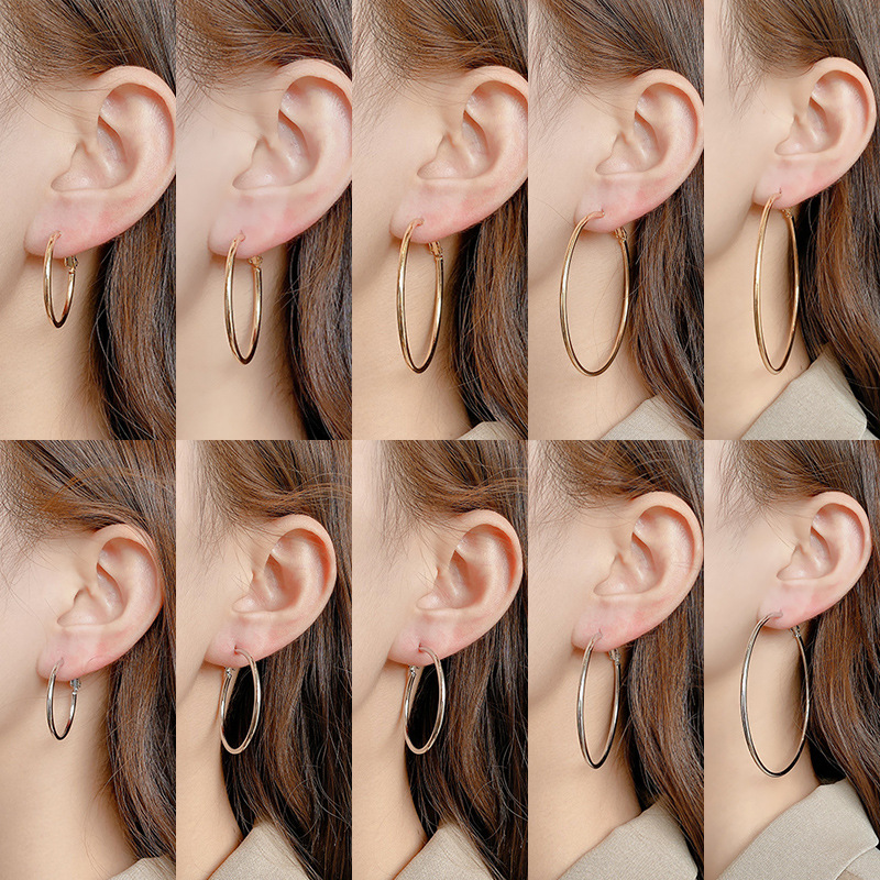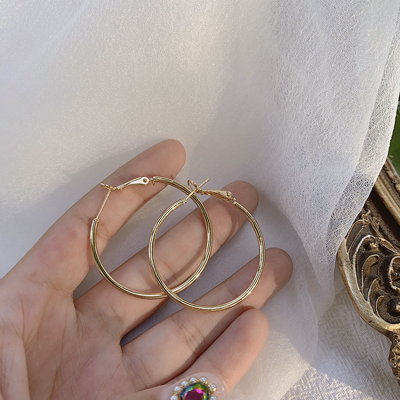 s925银针复古个性耳饰欧美百搭圈圈耳环女个性网红夸张网红大耳圈
