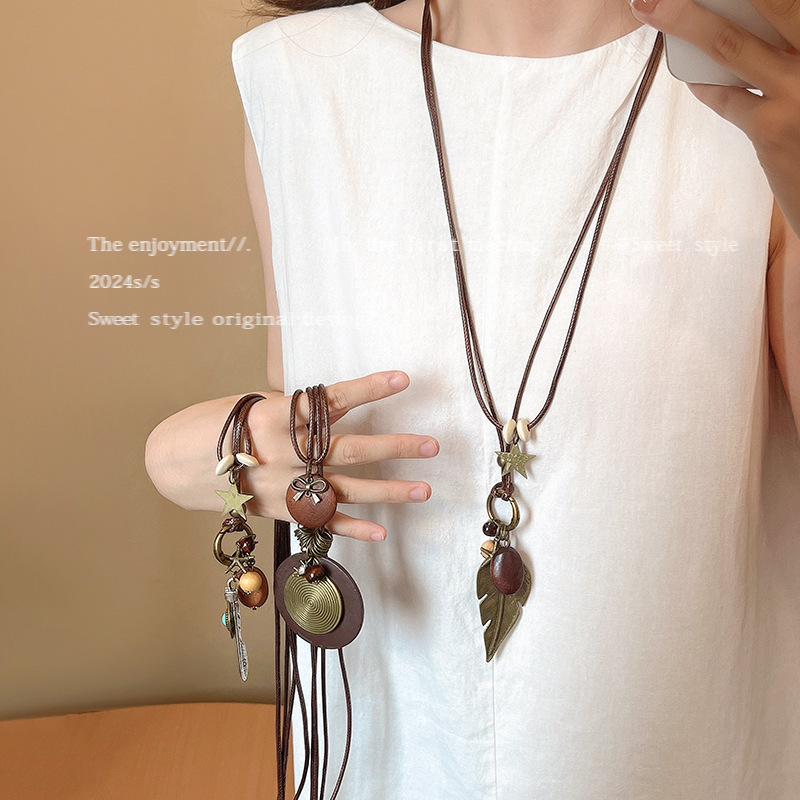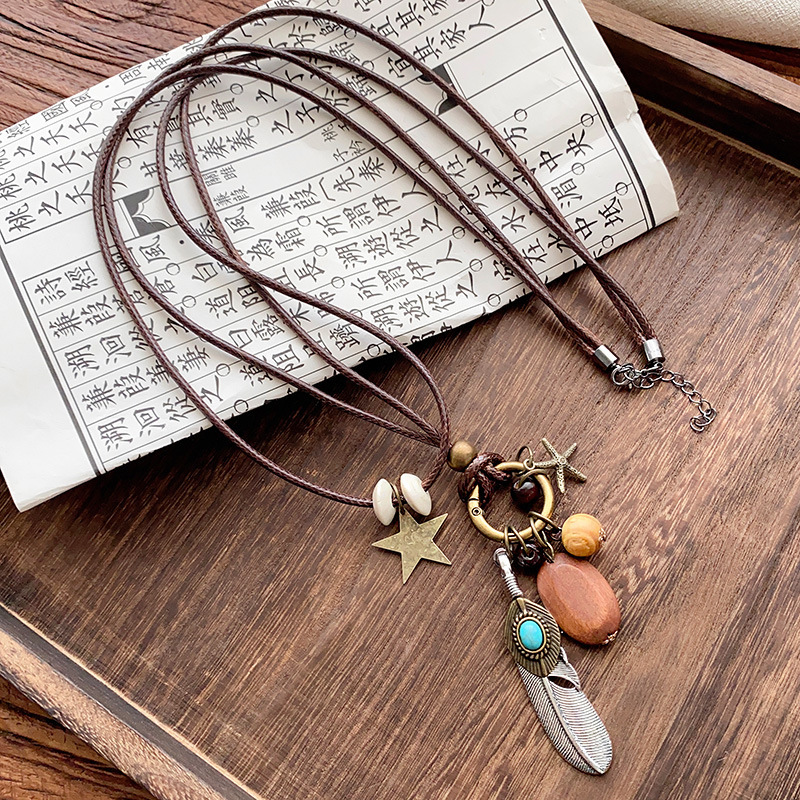 新中式禅意长款羽毛项链女复古民族风叠戴毛衣链新款秋冬百搭配饰