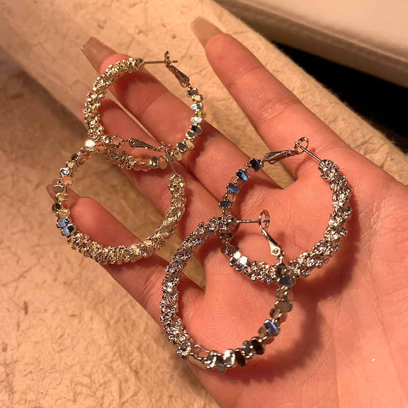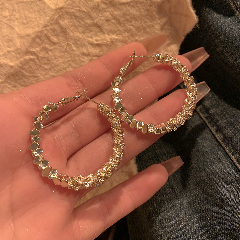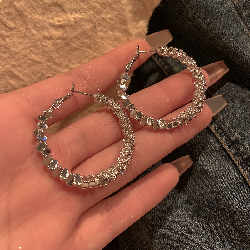 碎银子圈圈耳环女秋冬小众设计感轻奢高级耳钉2023新爆款潮耳饰品