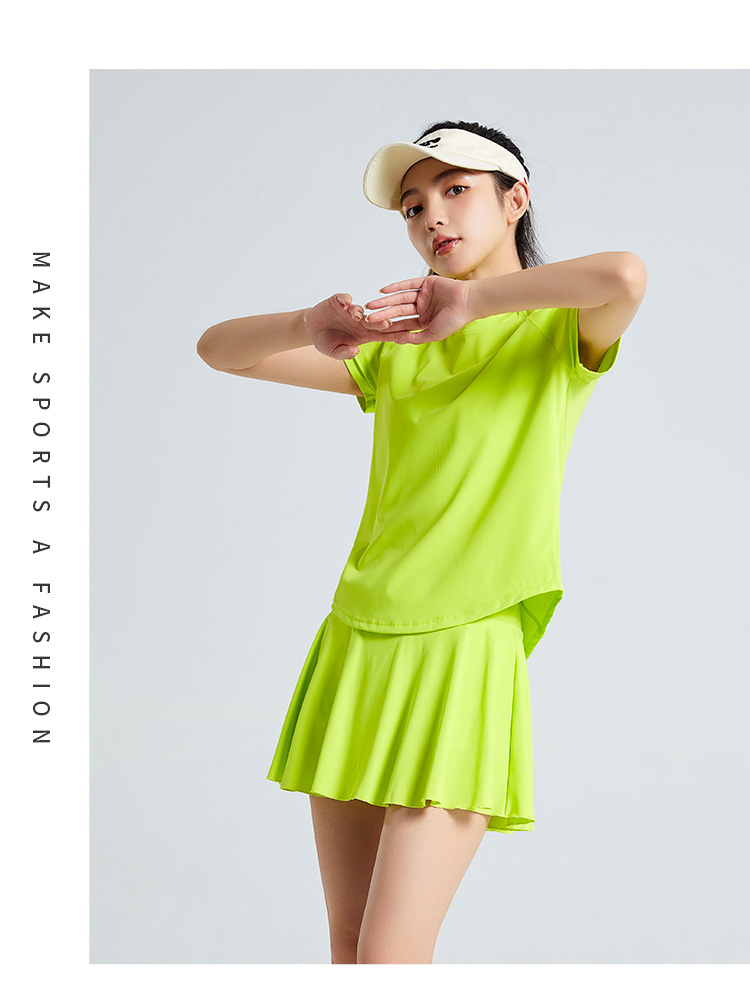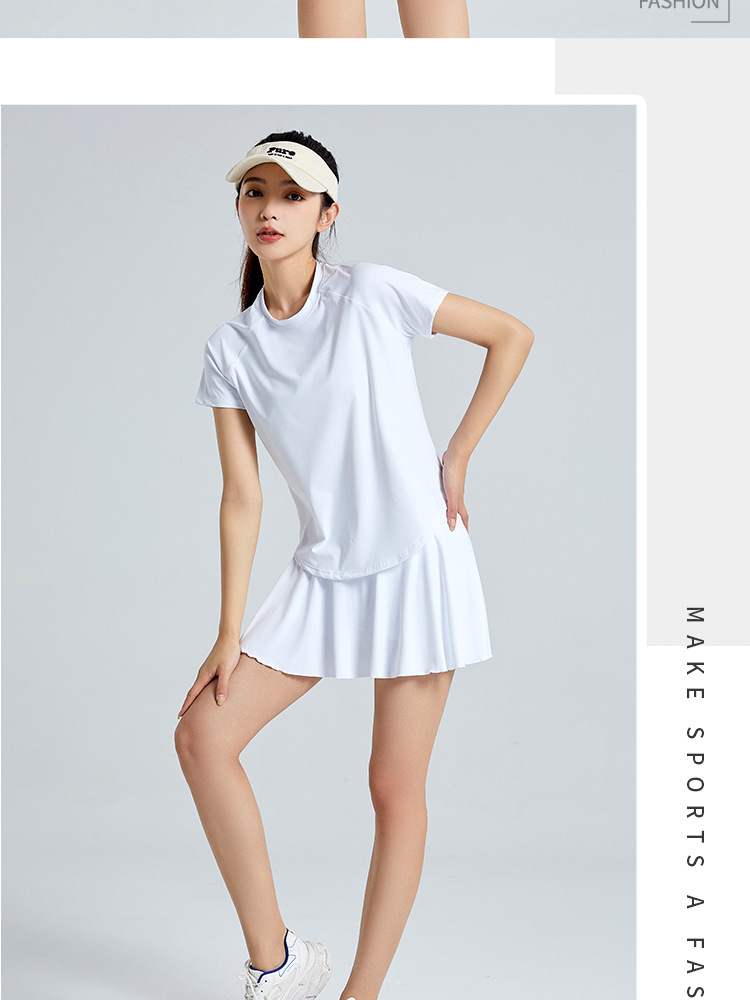 瑜伽服女夏2023新款速干普拉提训练跑步运动短袖上衣健身短裙套装