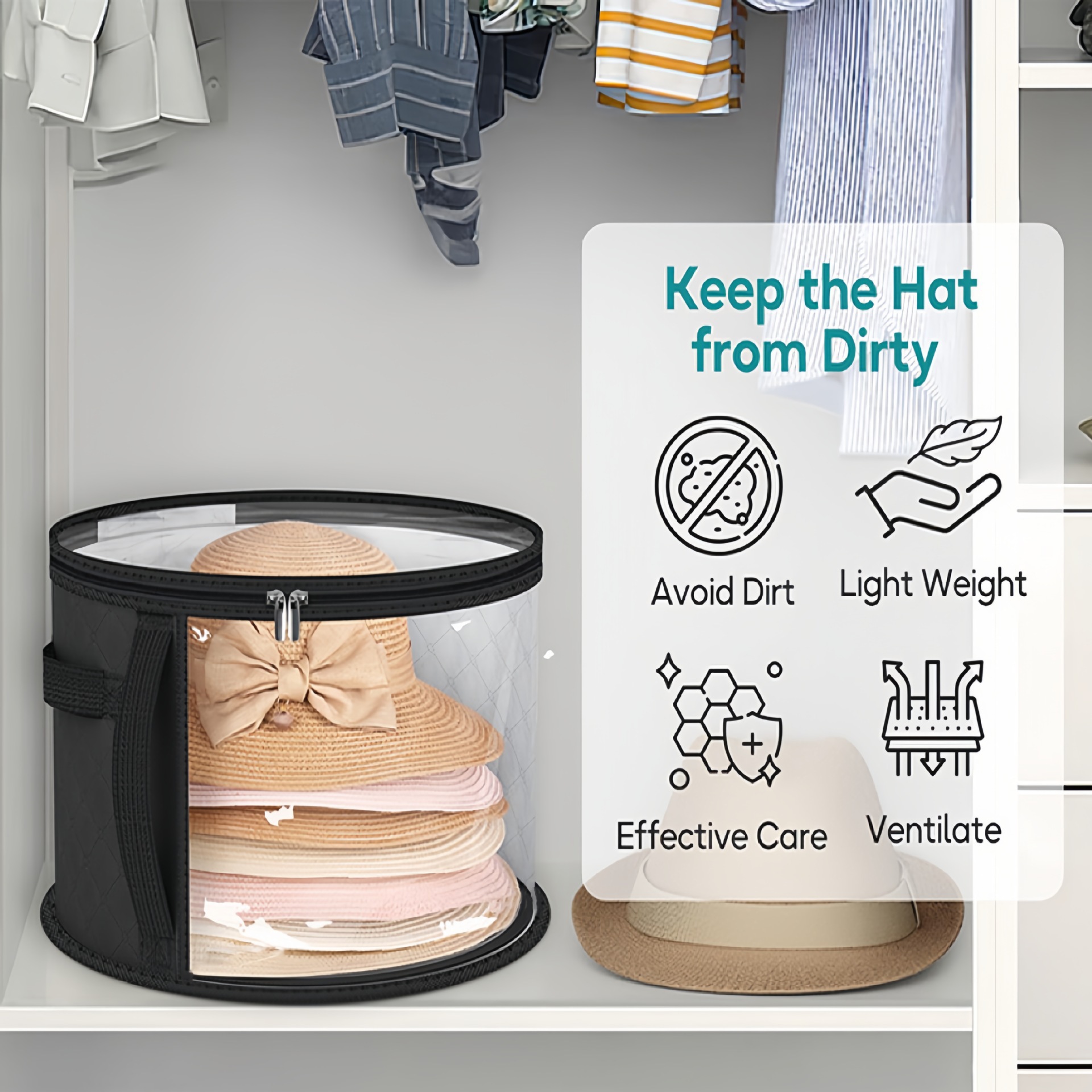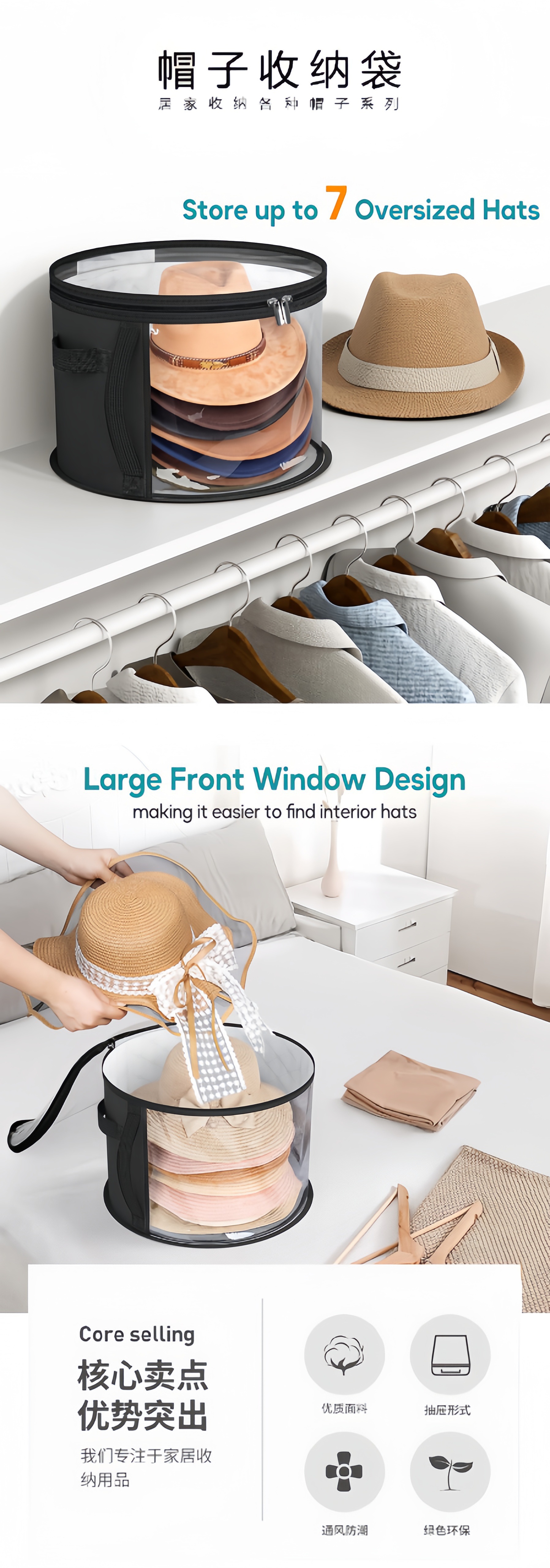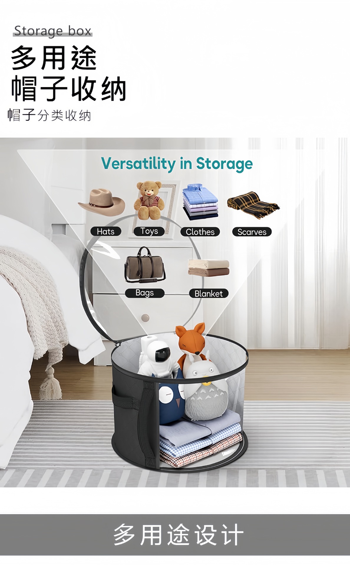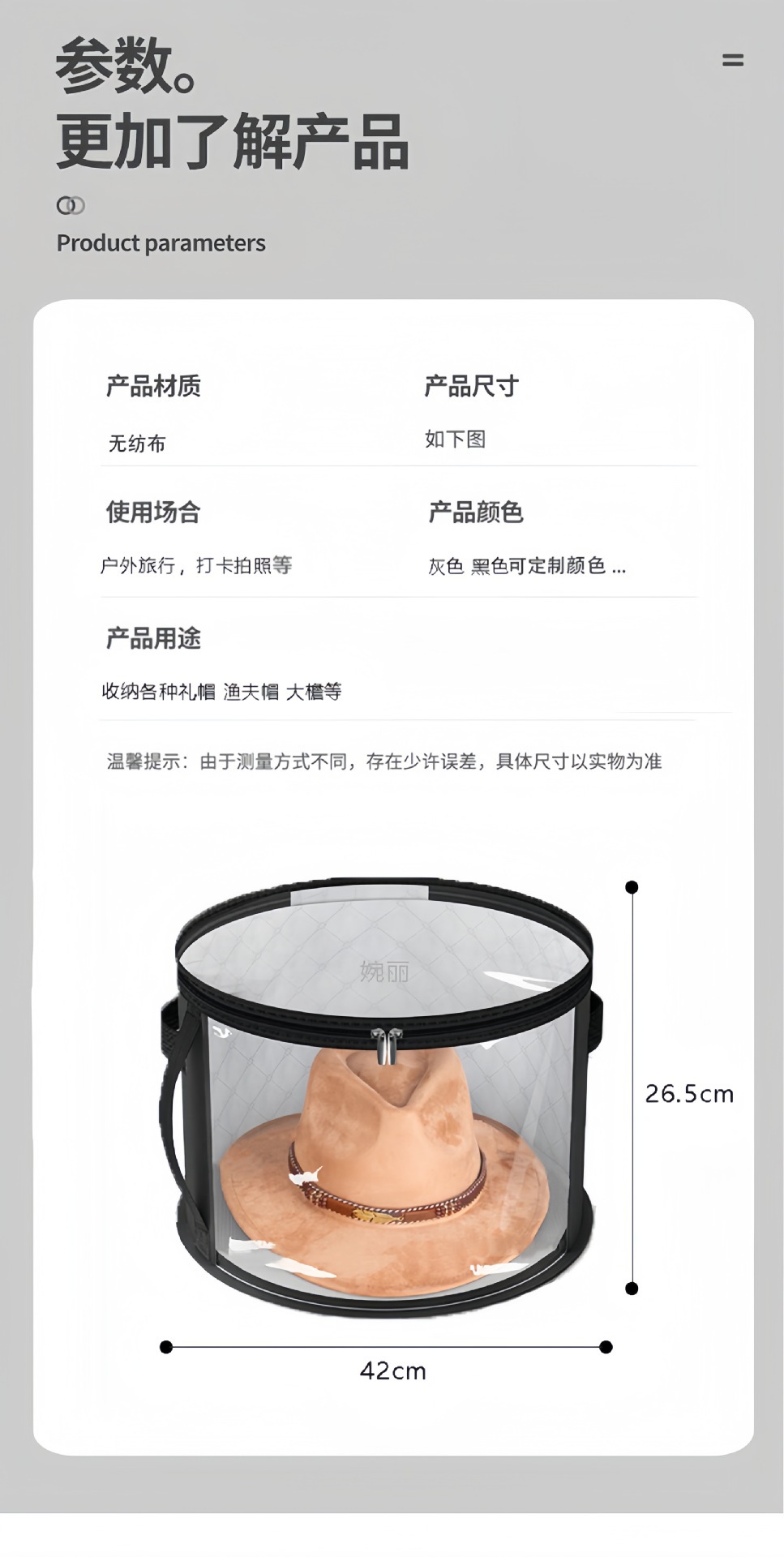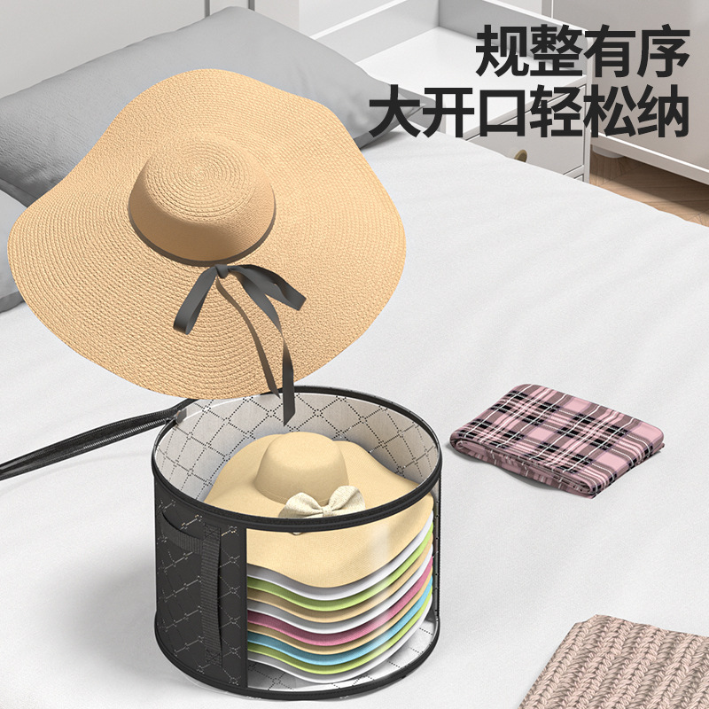 透明拉链款帽子收纳袋户外沙滩帽子可叠加大容量圆形帽子收纳盒子