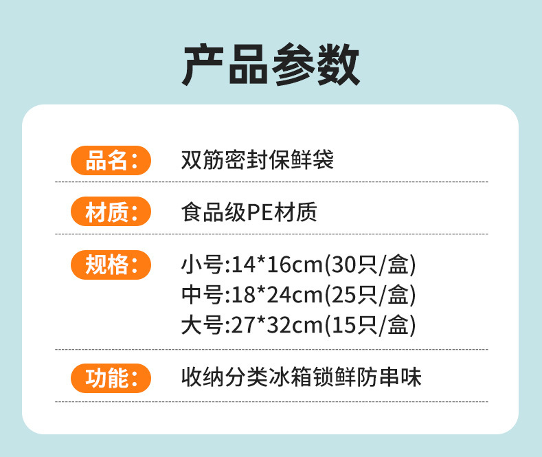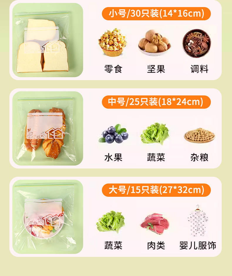 加厚抽取式双筋封口辅食袋 食品级冰箱食物分装收纳密封保鲜袋