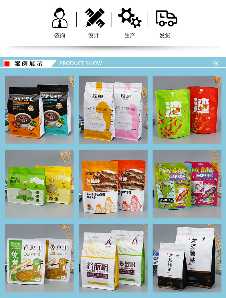 厂家做八边封塑料食品包装袋自立密封拉链铝箔袋真空复合卷膜定制