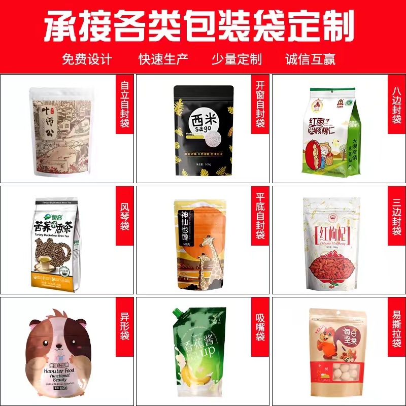 食品包装袋定制八边封铝箔塑料茶叶自立铝箔袋休闲食品自封拉链袋