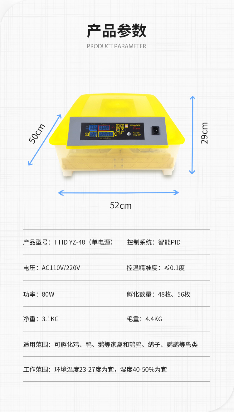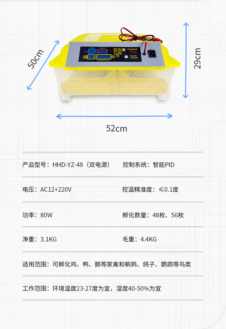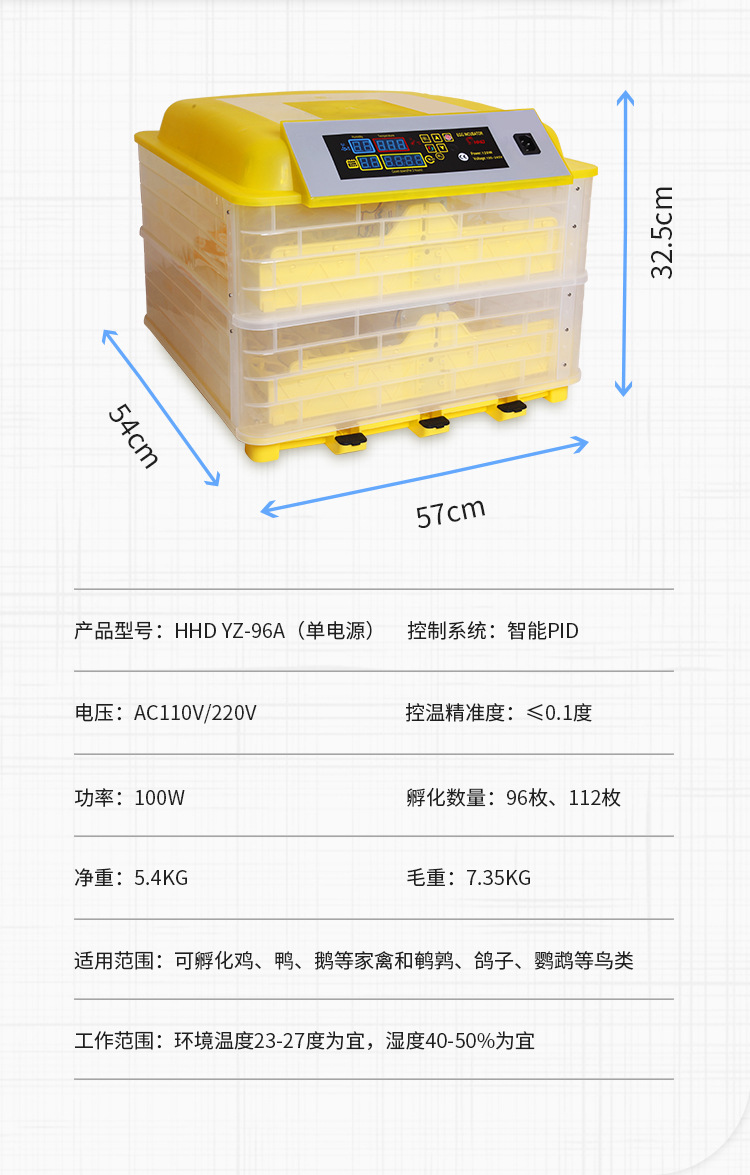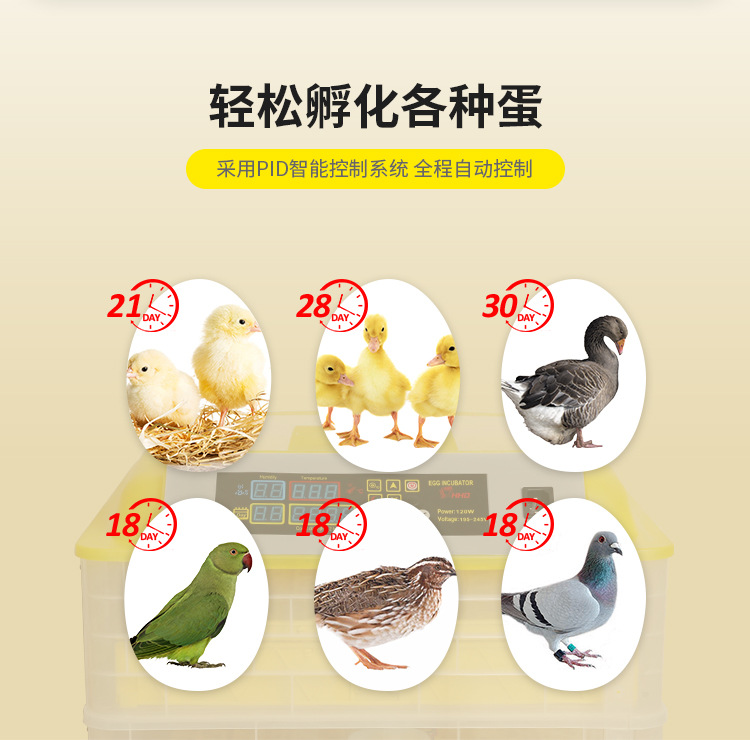 HHD厂家批发自动翻蛋自动控温一键孵化自动翻蛋112枚单电源孵蛋机