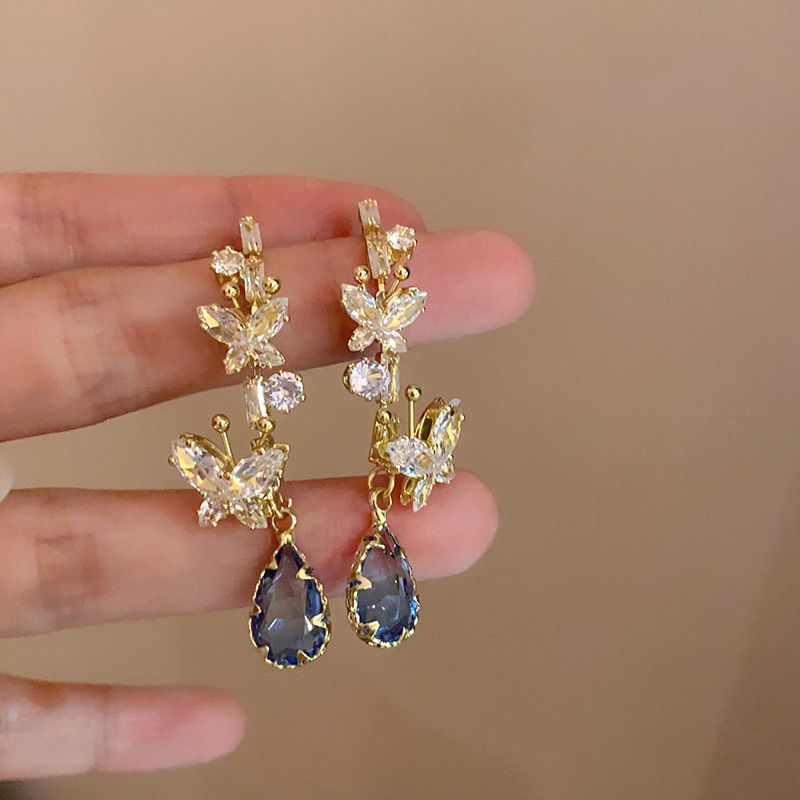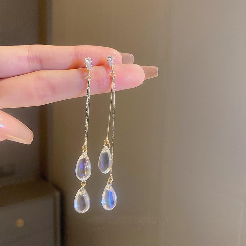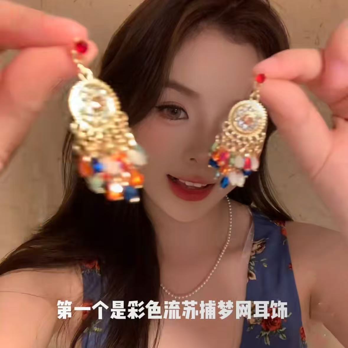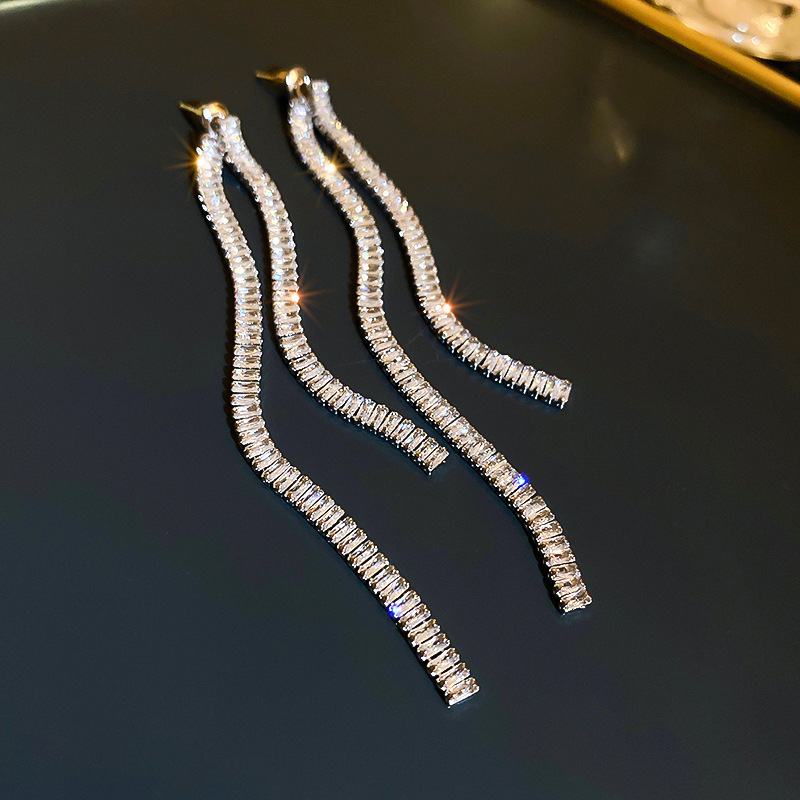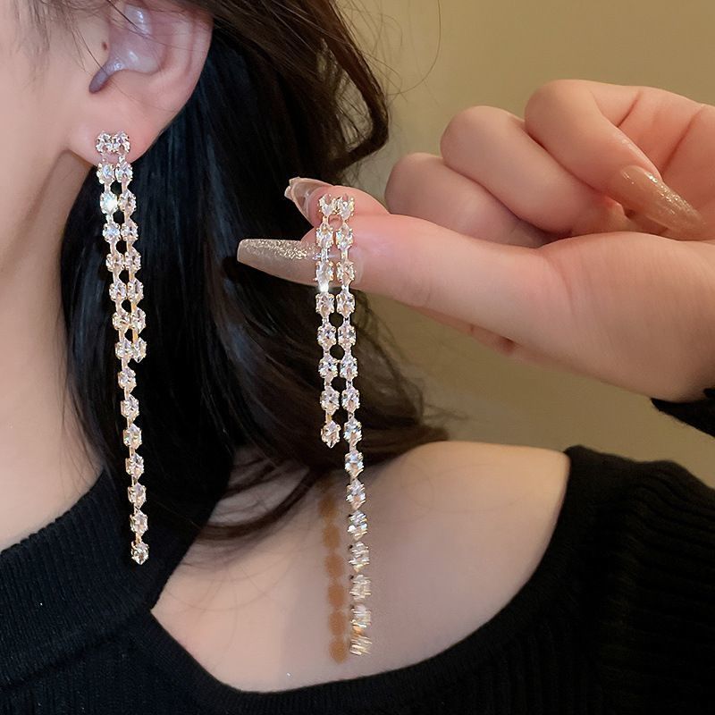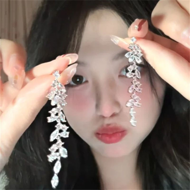 耳环ins简约时尚个性耳坠轻奢高级感耳饰银针镶钻树叶流苏耳环女