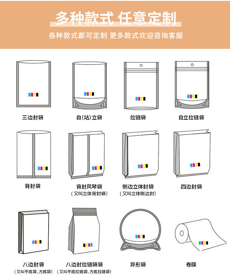 食品包装袋定制小批量塑料真空铝箔袋休闲零食通用自立自封复合袋