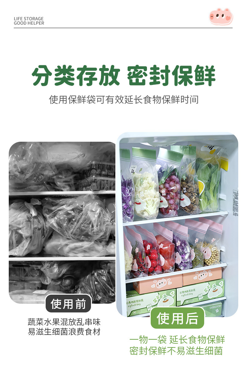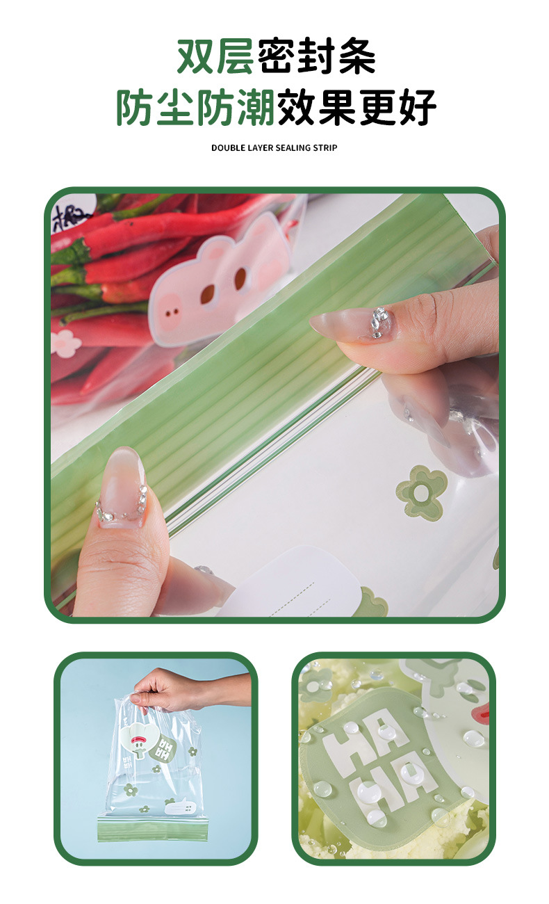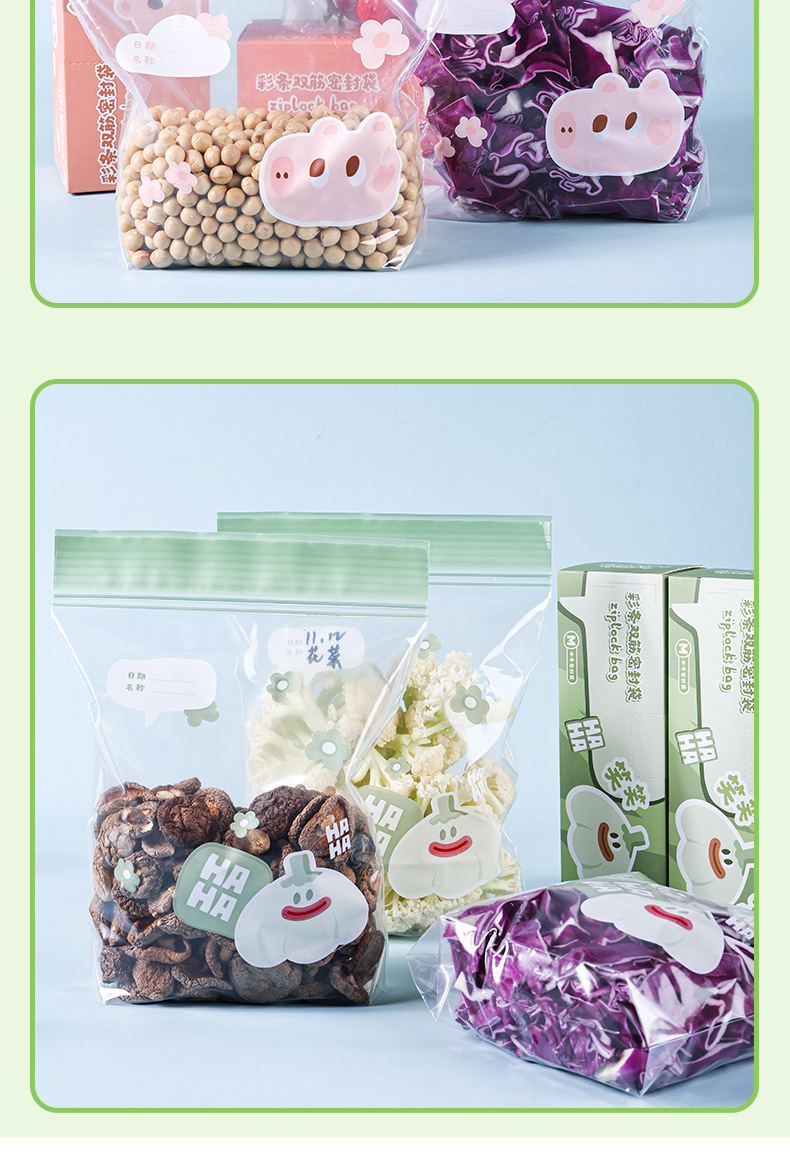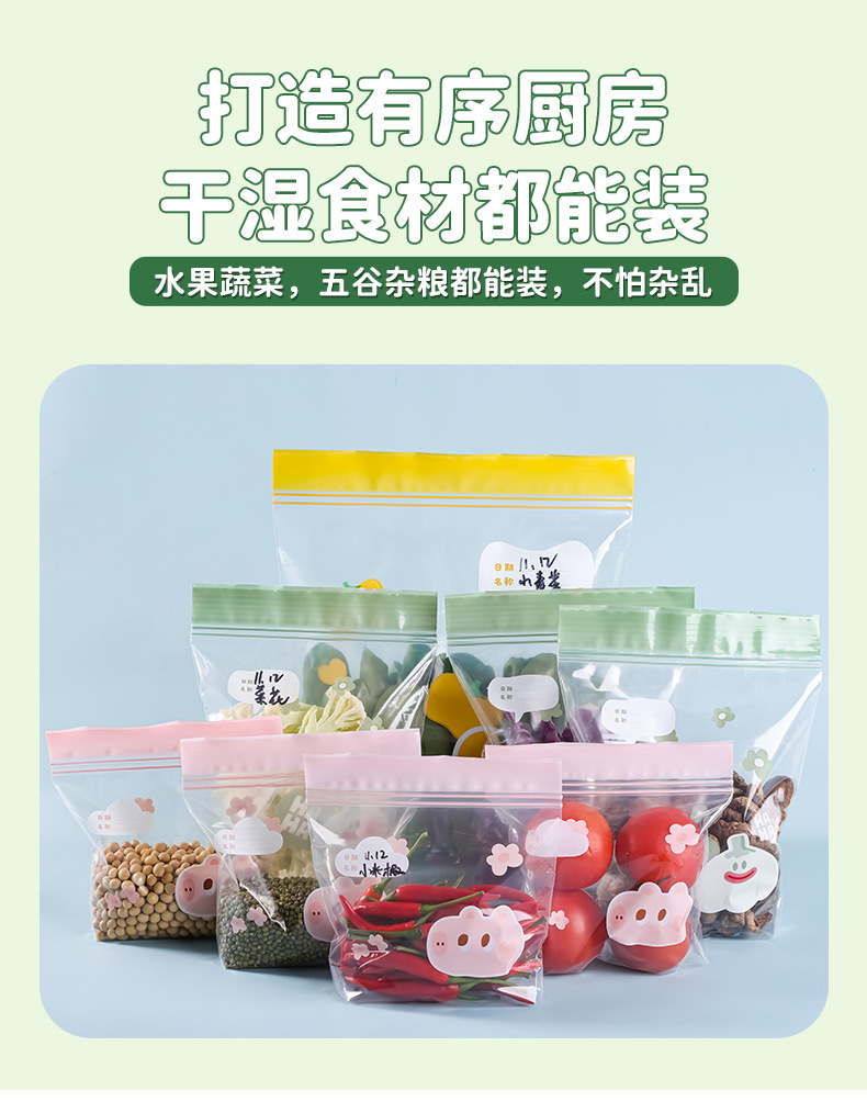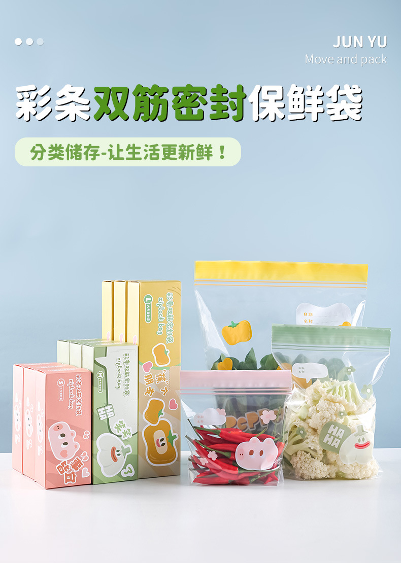 食品级彩边双筋保鲜袋冰箱分类收纳自封袋家用加厚密封袋保鲜袋