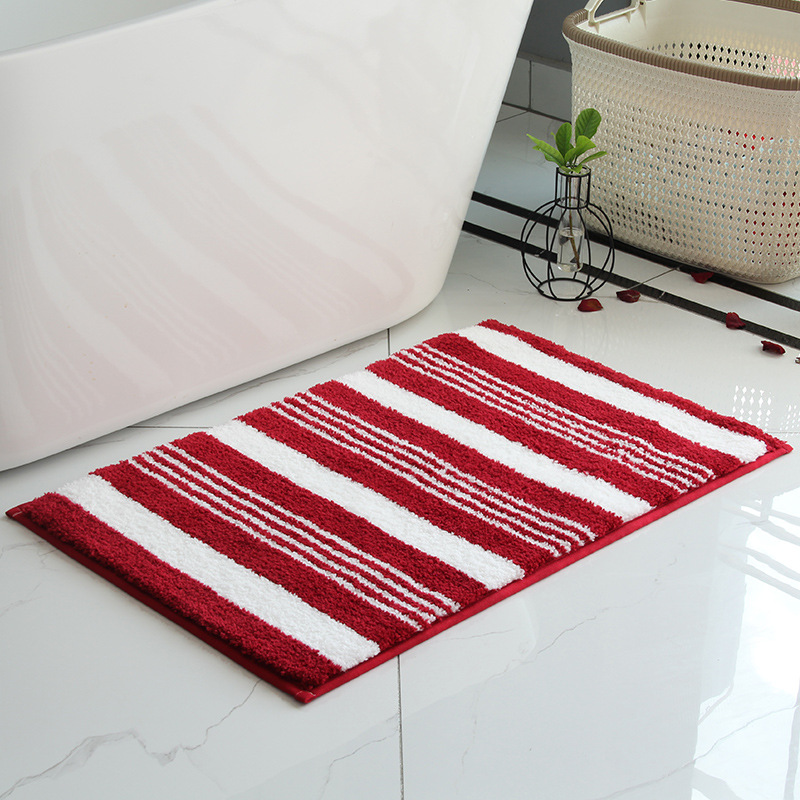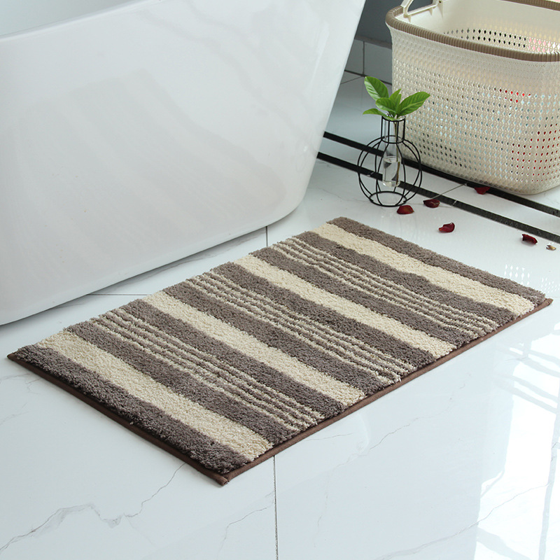 2025新款条纹家用进门地垫浴室吸水脚垫防滑垫子植绒地垫