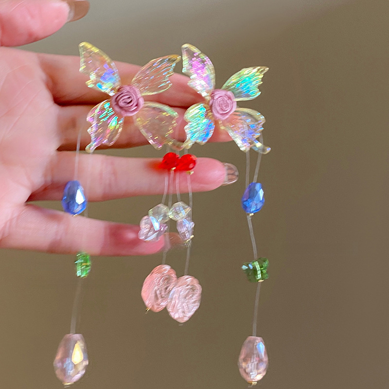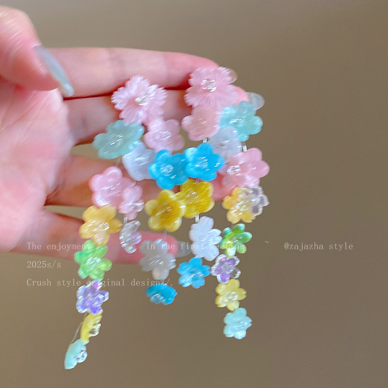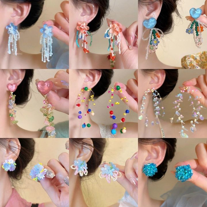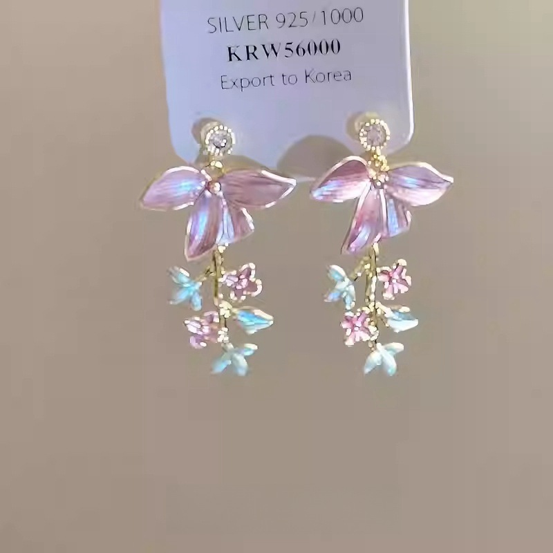 耳环小清新耳坠女海边度假风耳饰银针树脂花朵蝴蝶结流苏耳环批发