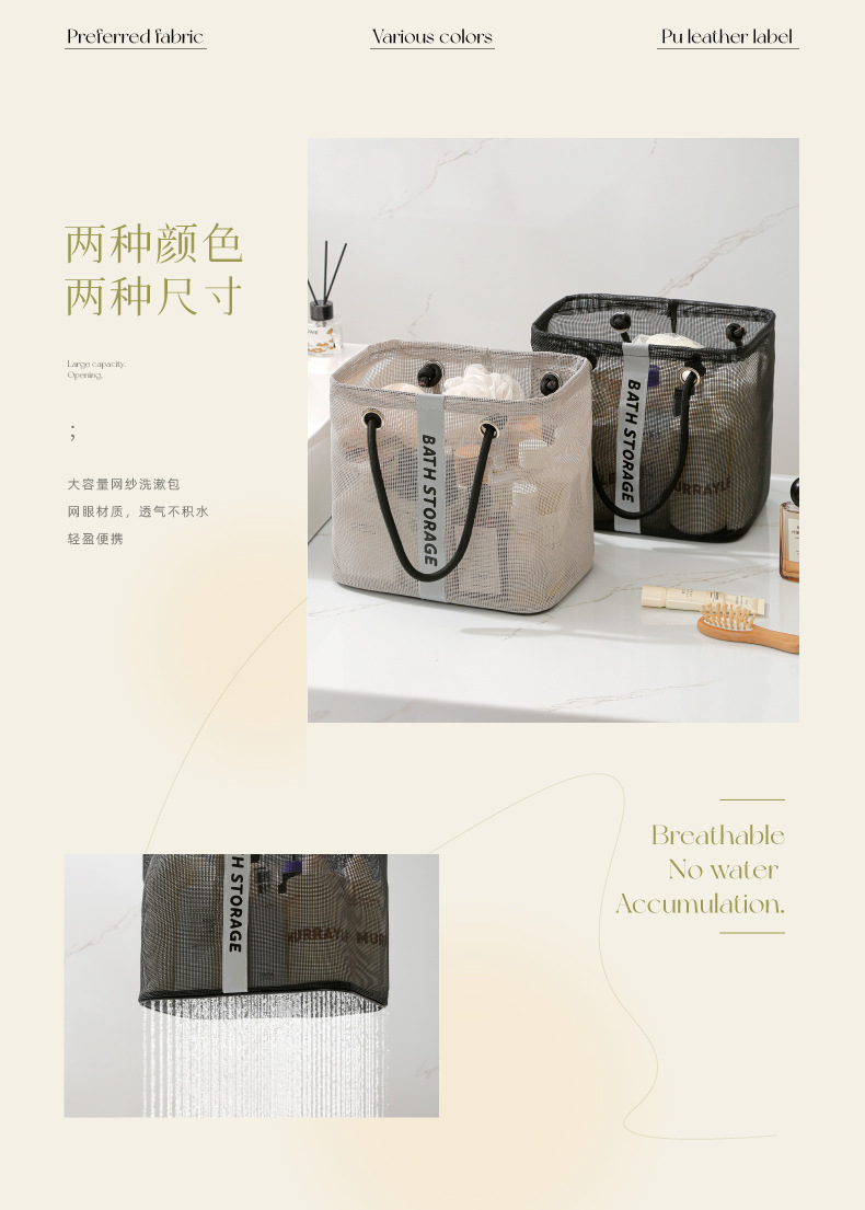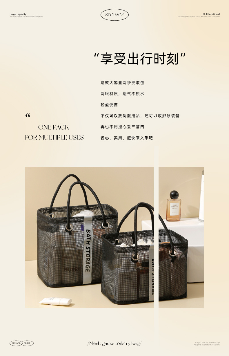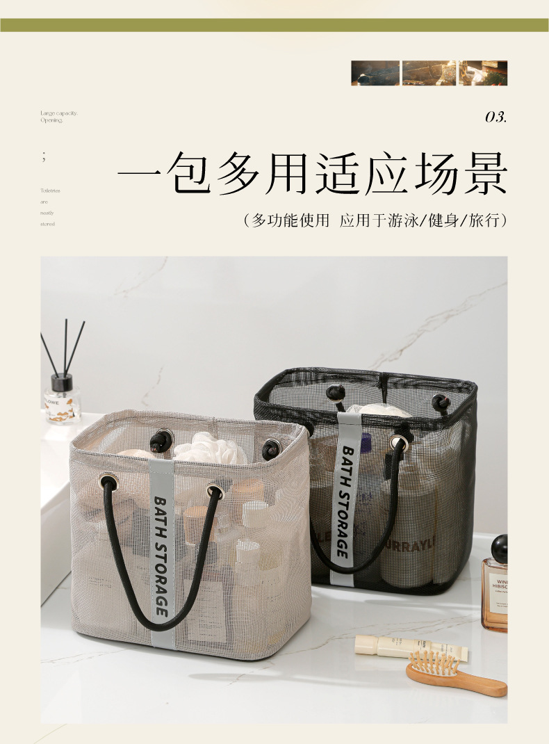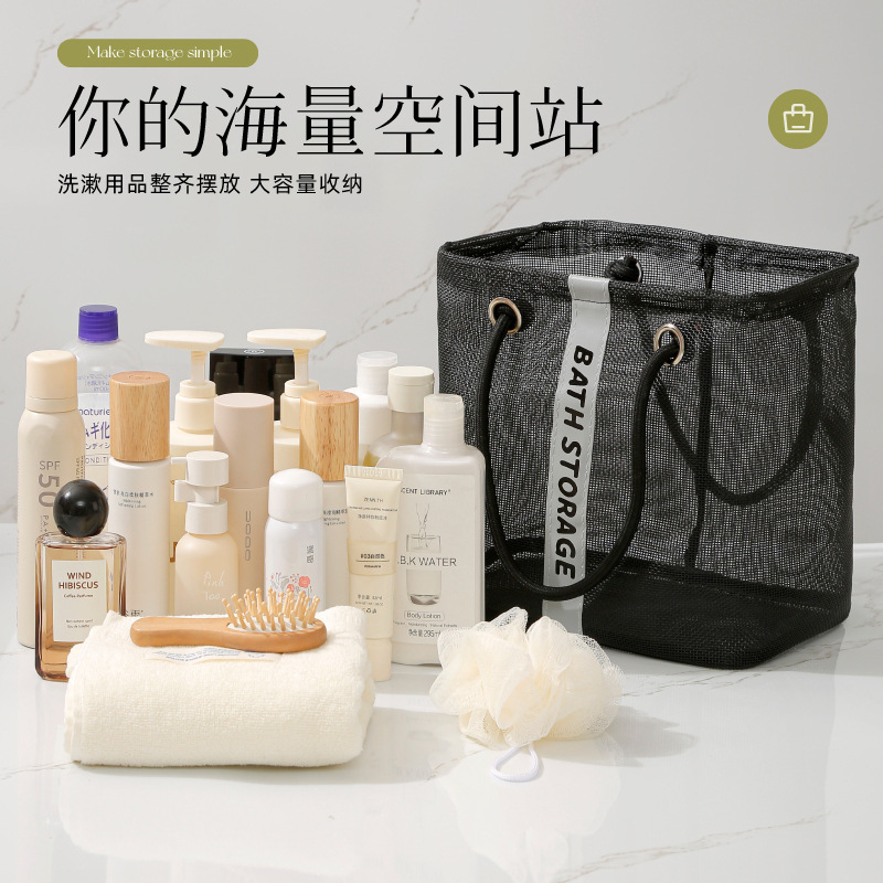大容量洗澡提篮沥水网纱洗浴包便携手提洗漱包旅行脏衣洗漱收纳筐