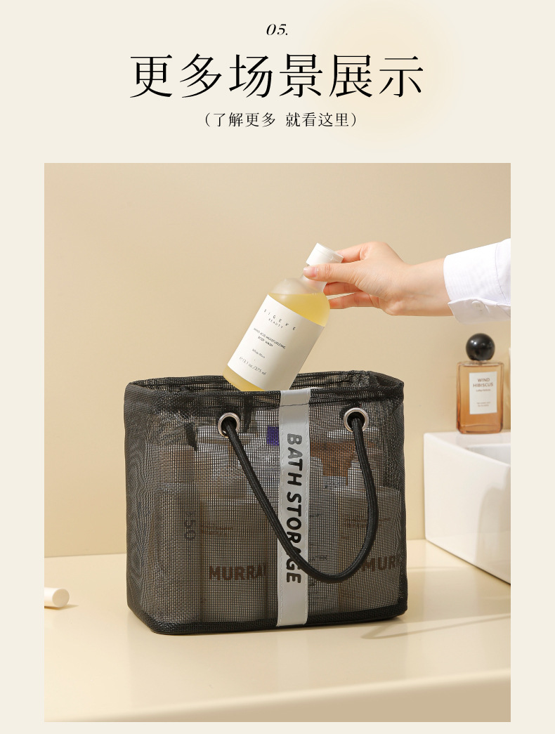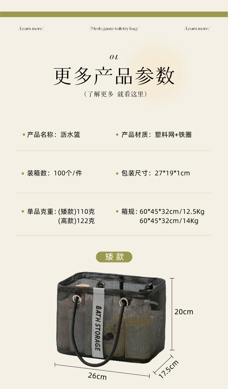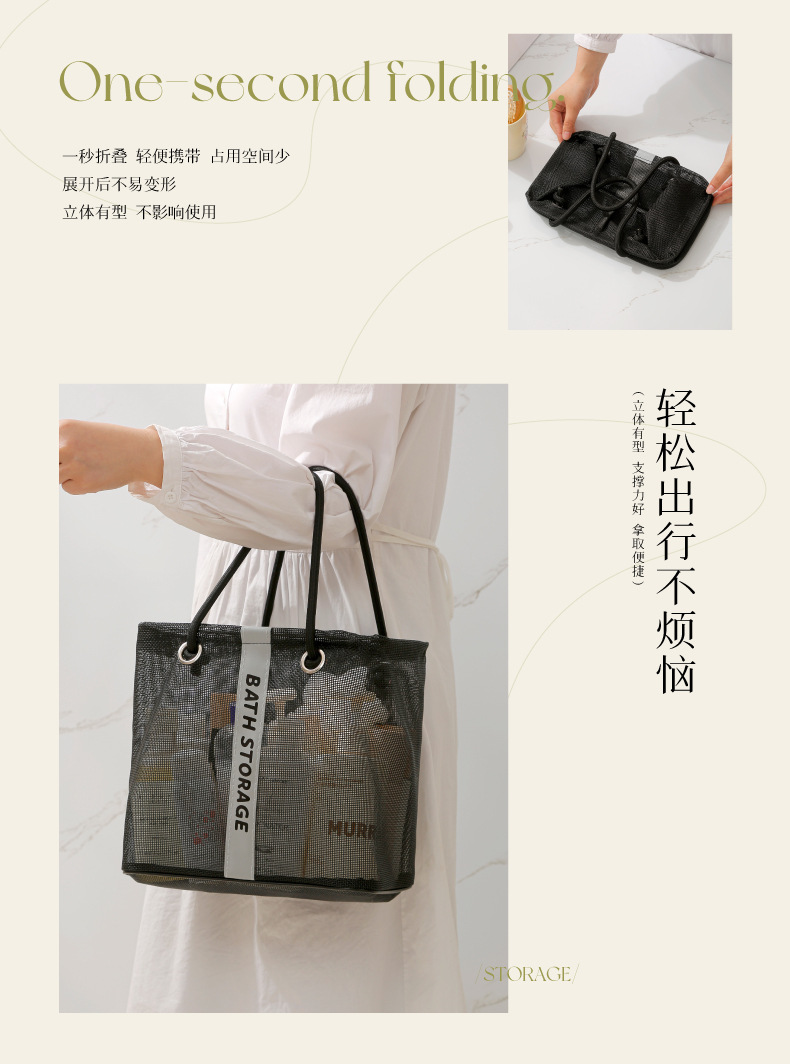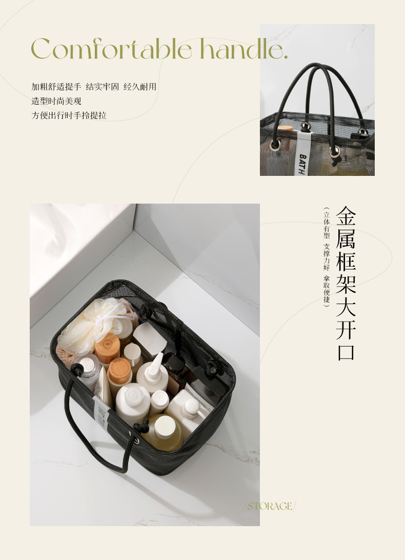 大容量洗澡提篮沥水网纱洗浴包便携手提洗漱包旅行脏衣洗漱收纳筐