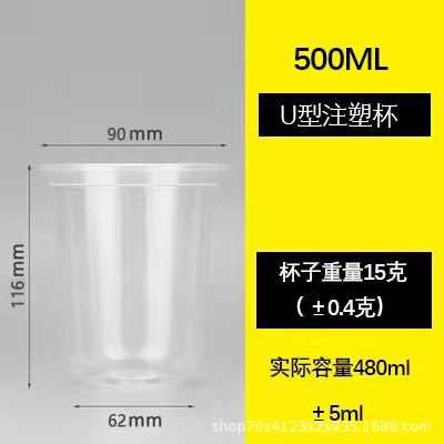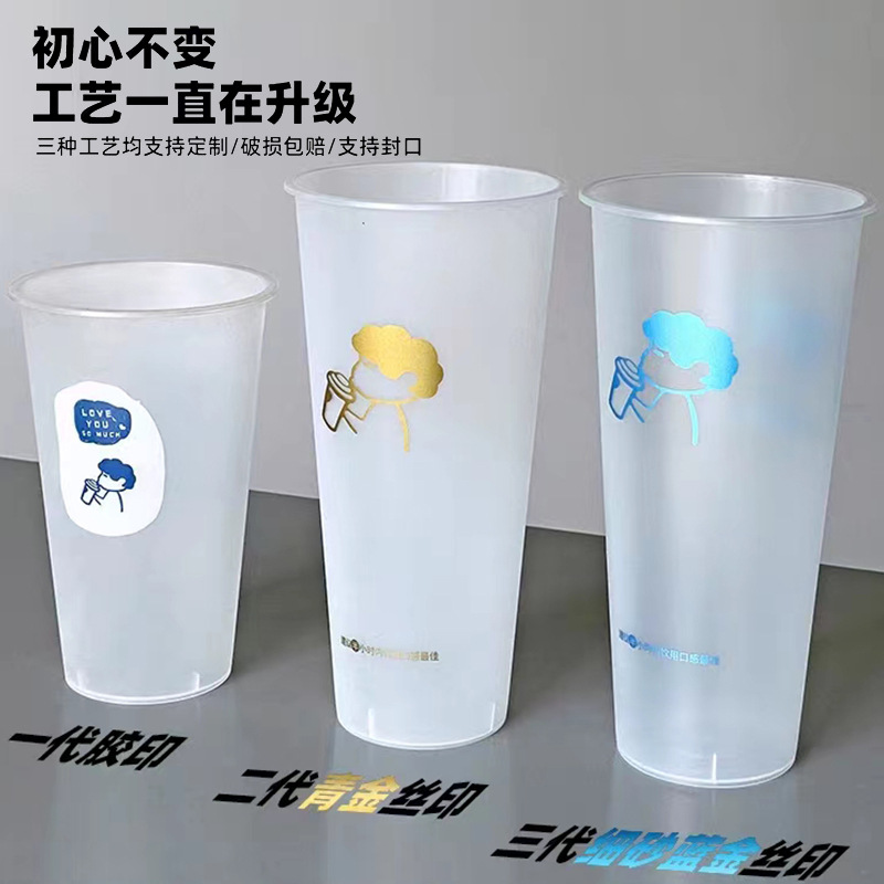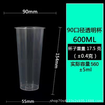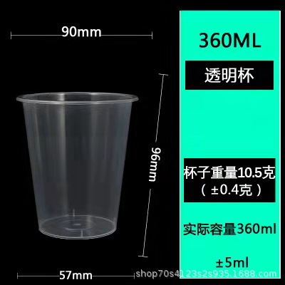 90口径一次性奶茶杯子透明水果茶打包注塑饮料杯360ml磨砂杯定制