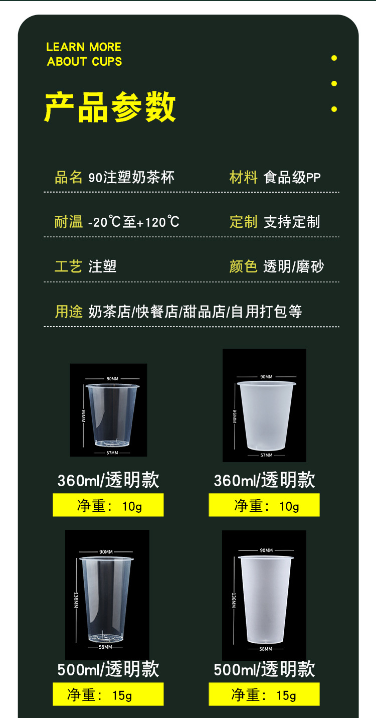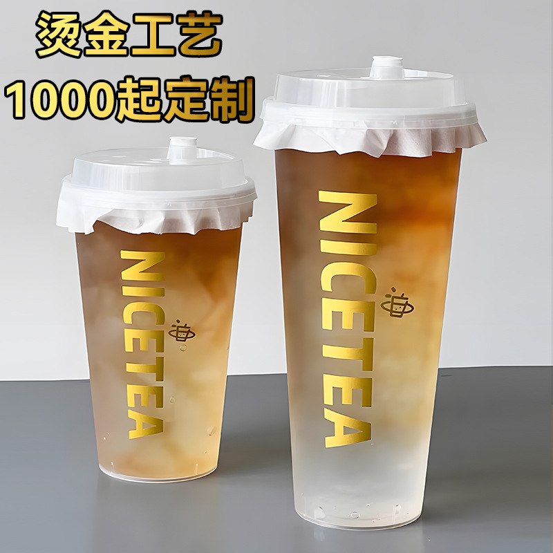 一次性奶茶杯子摆摊商用磨砂透明甜品果汁杯PP注塑小酒杯定制LOGO