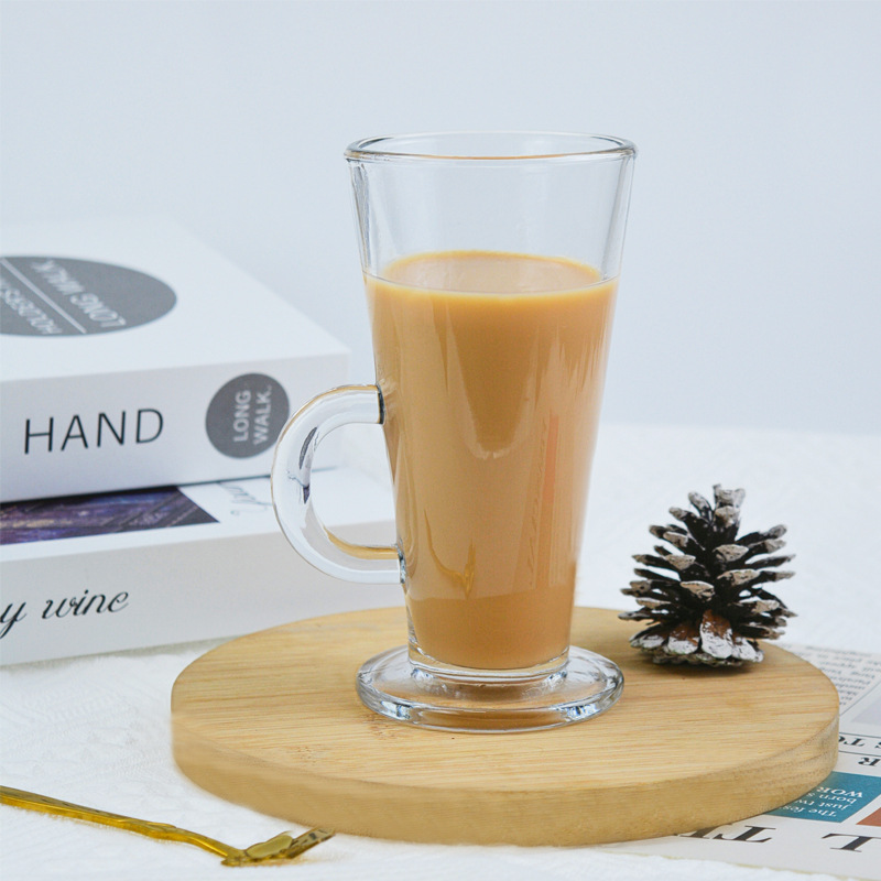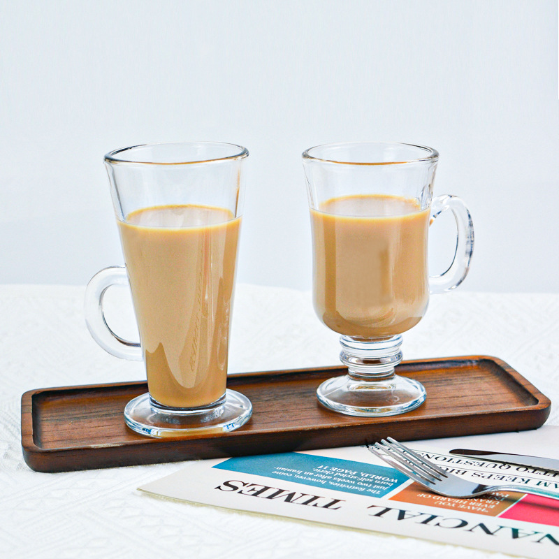 咖啡杯250ml 爱尔兰拿铁咖啡玻璃杯 果汁沙冰杯奶茶杯斜身带把款