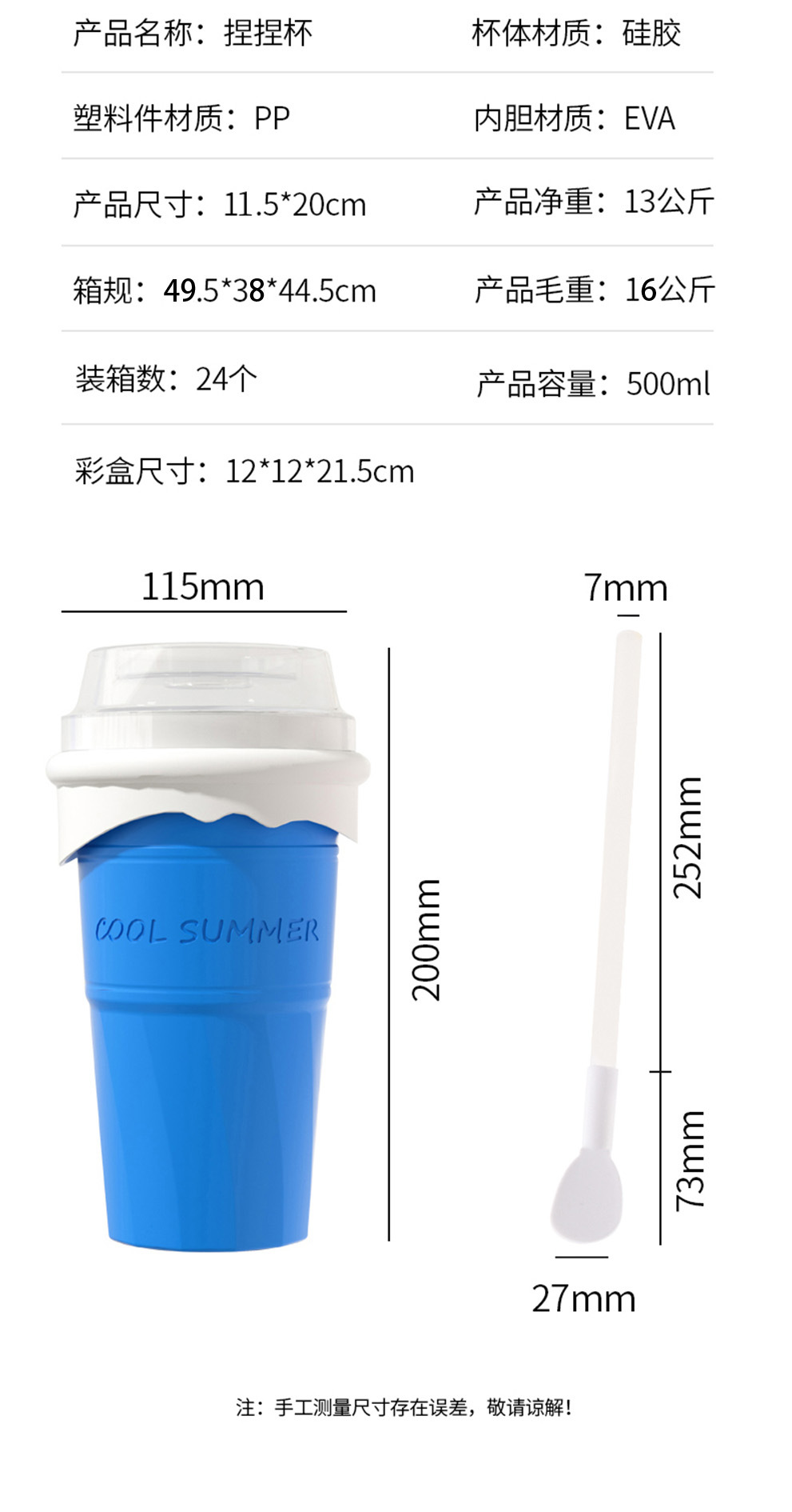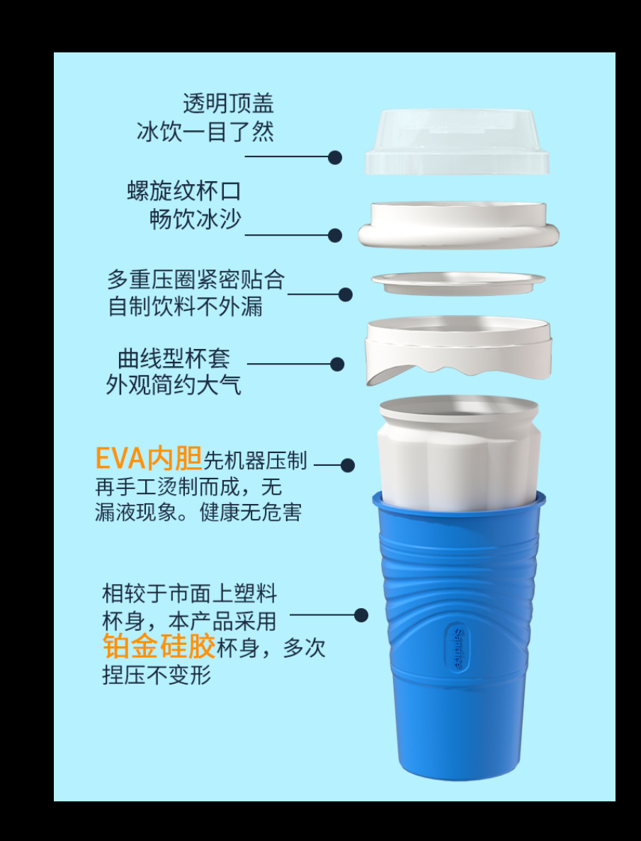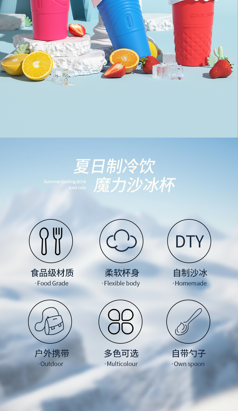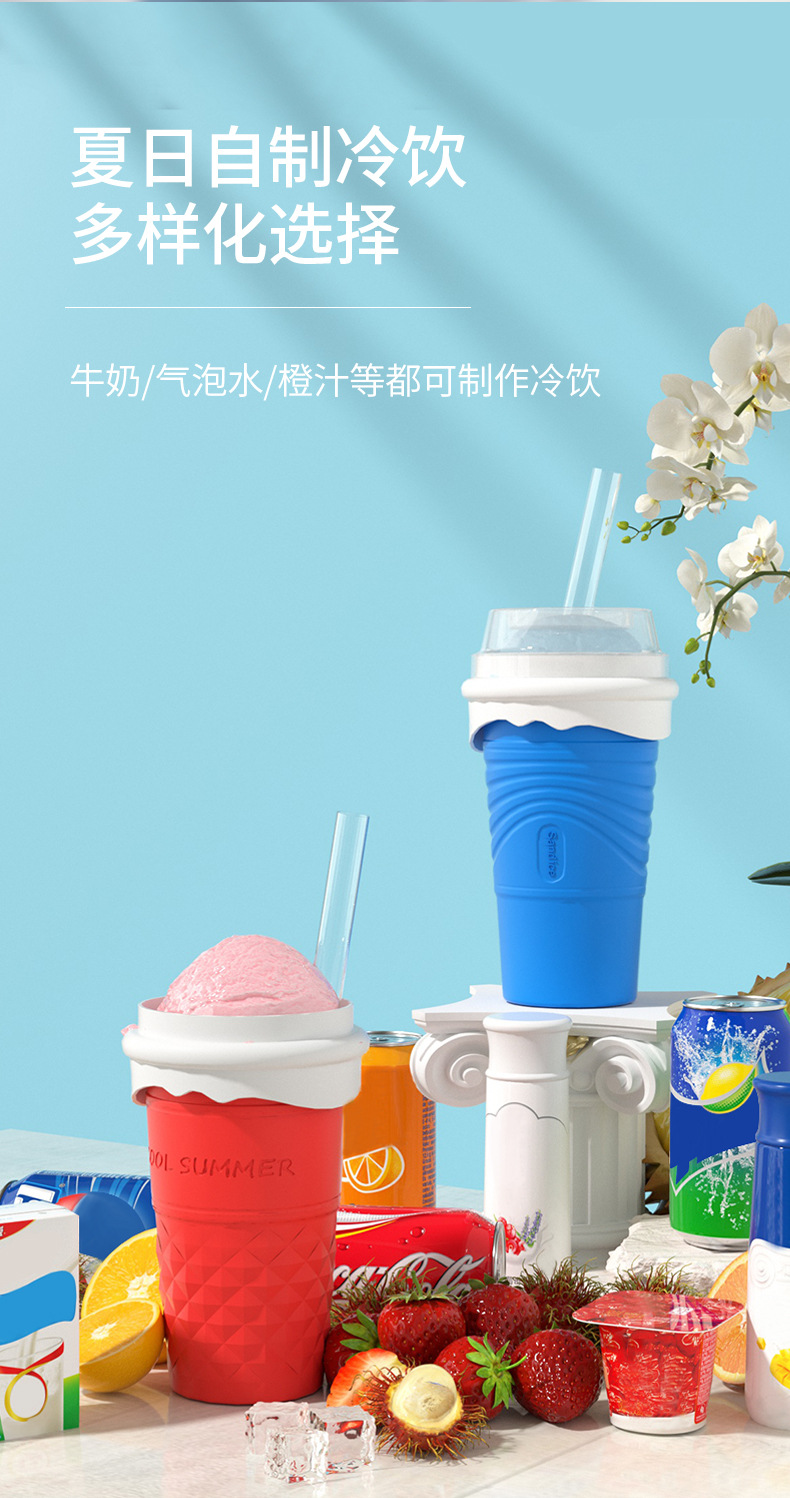 新款一捏成冰捏捏杯家用户外饮料自制冰沙杯硅胶快速制冰制冷杯