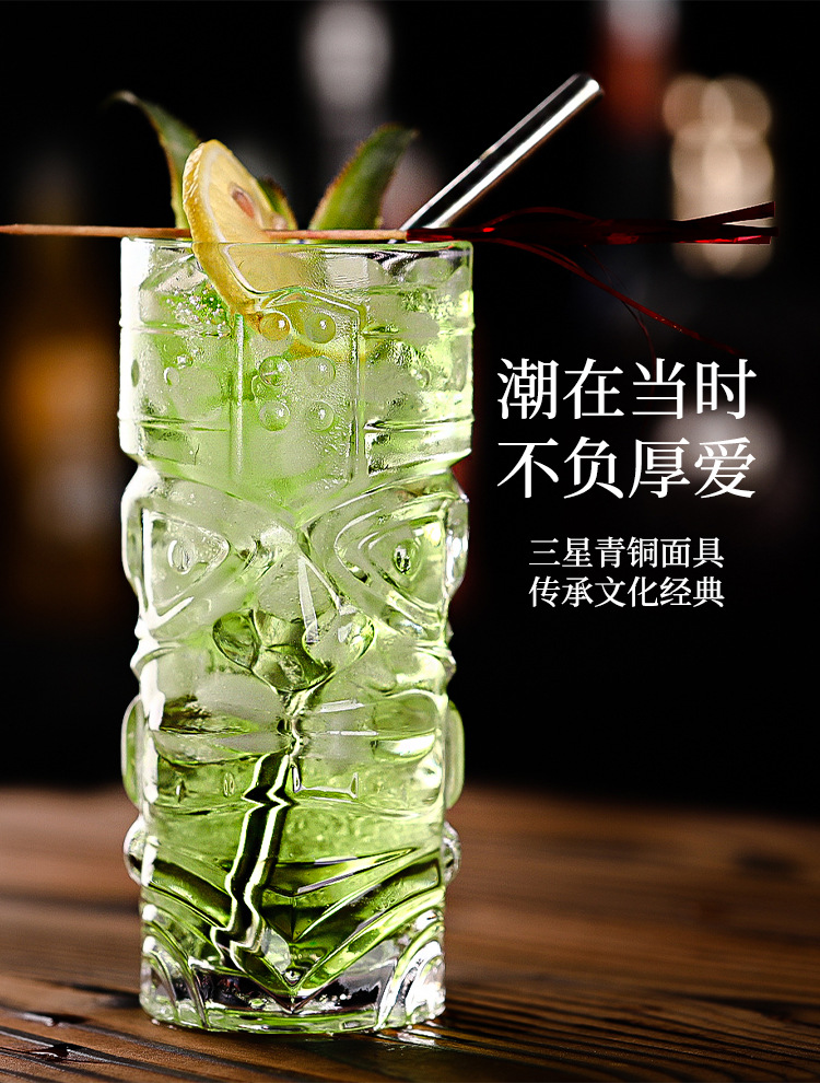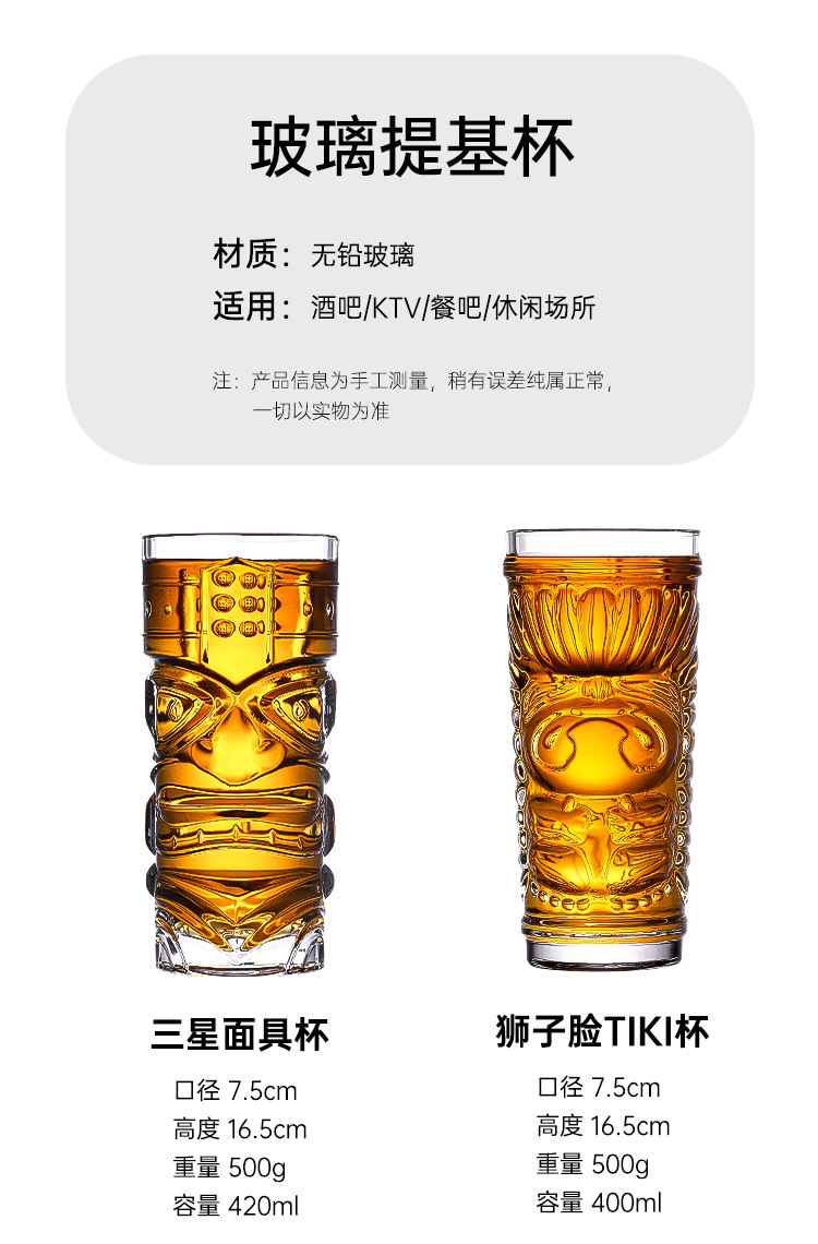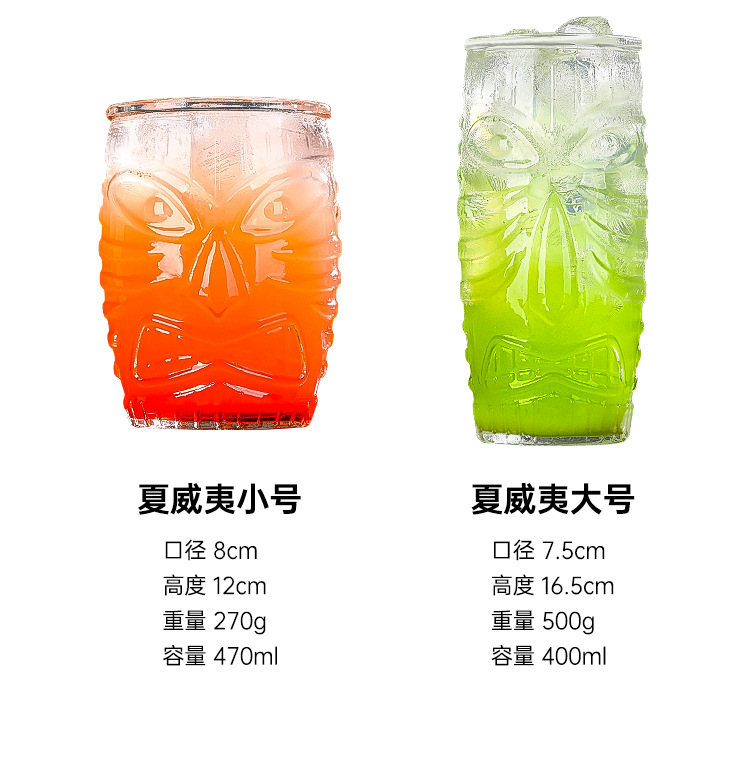 夏威夷tiki mug提基杯鸡尾酒杯鬼脸果汁杯冷饮杯玻璃沙冰杯神像杯