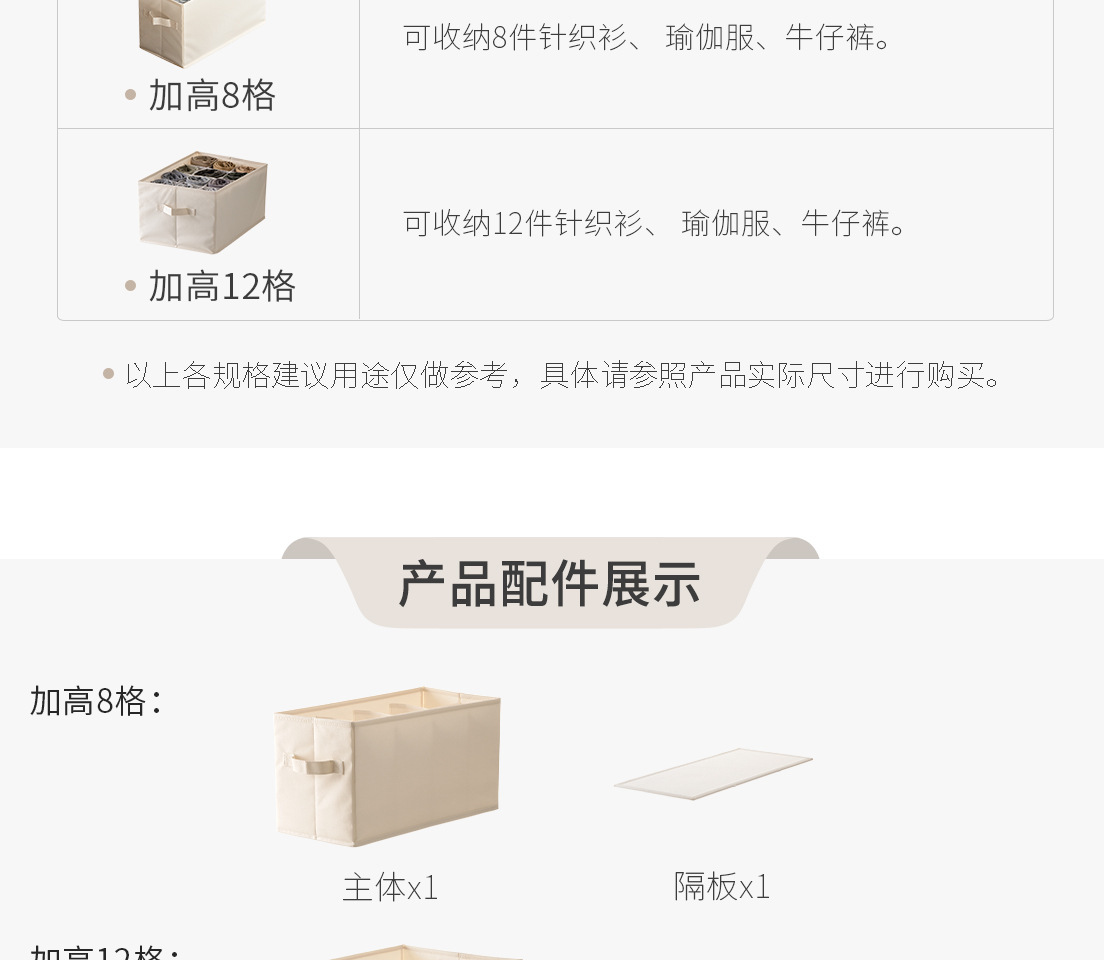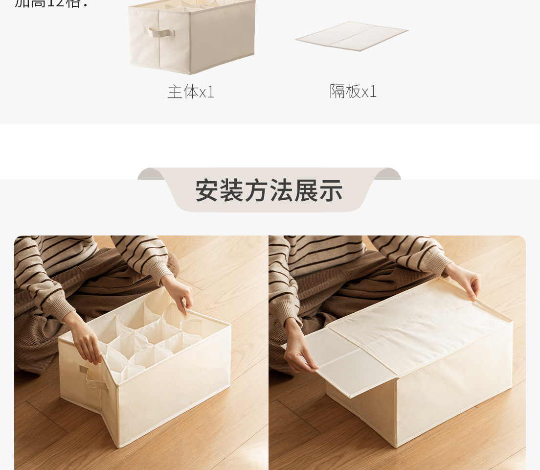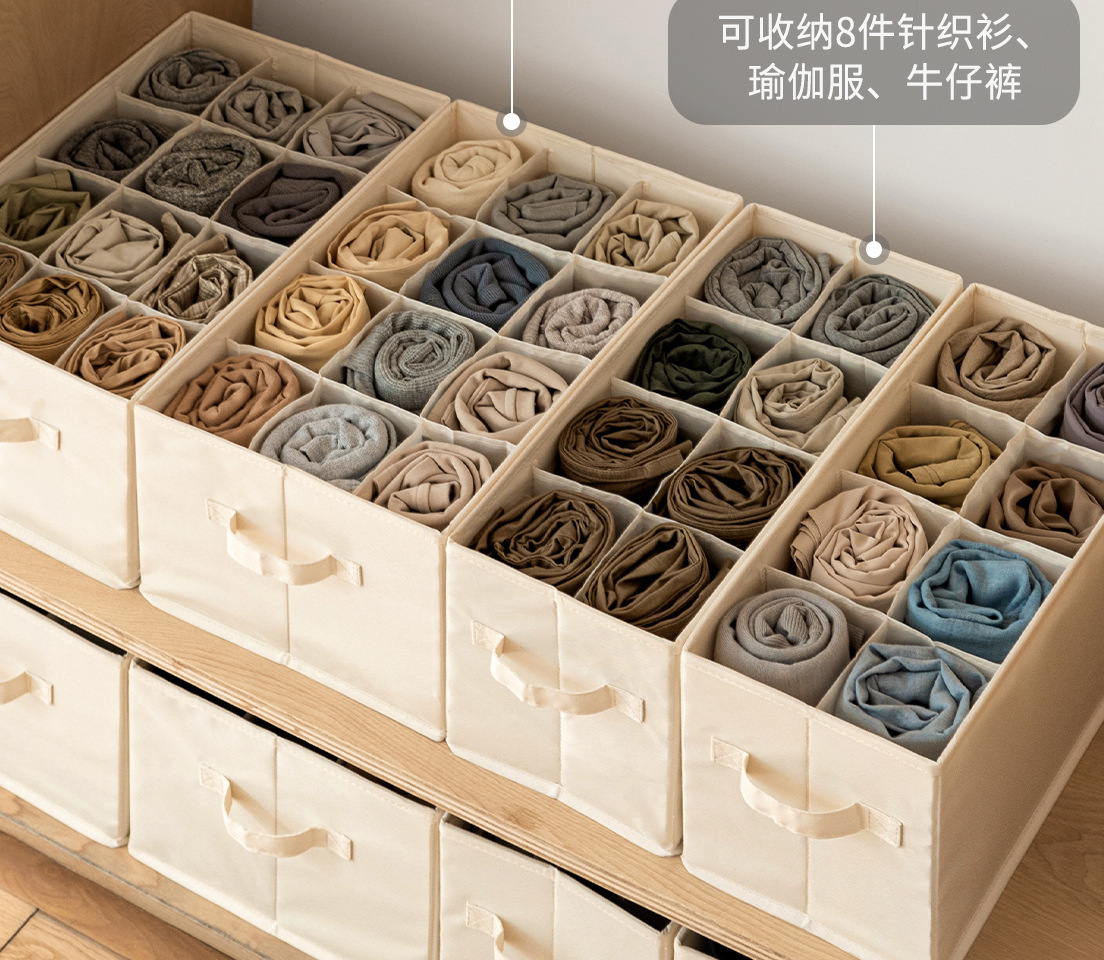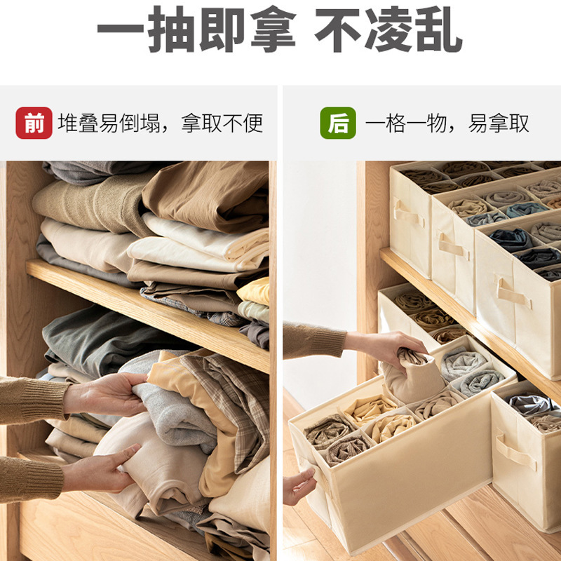 可水洗分格收纳盒布艺衣服裤子整理箱家用衣柜收纳分层分隔储物筐
