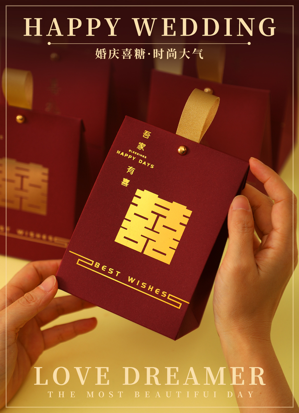 中式高档烫金喜糖盒结婚专用庆婚婚礼伴手礼回礼礼盒喜糖袋大空盒