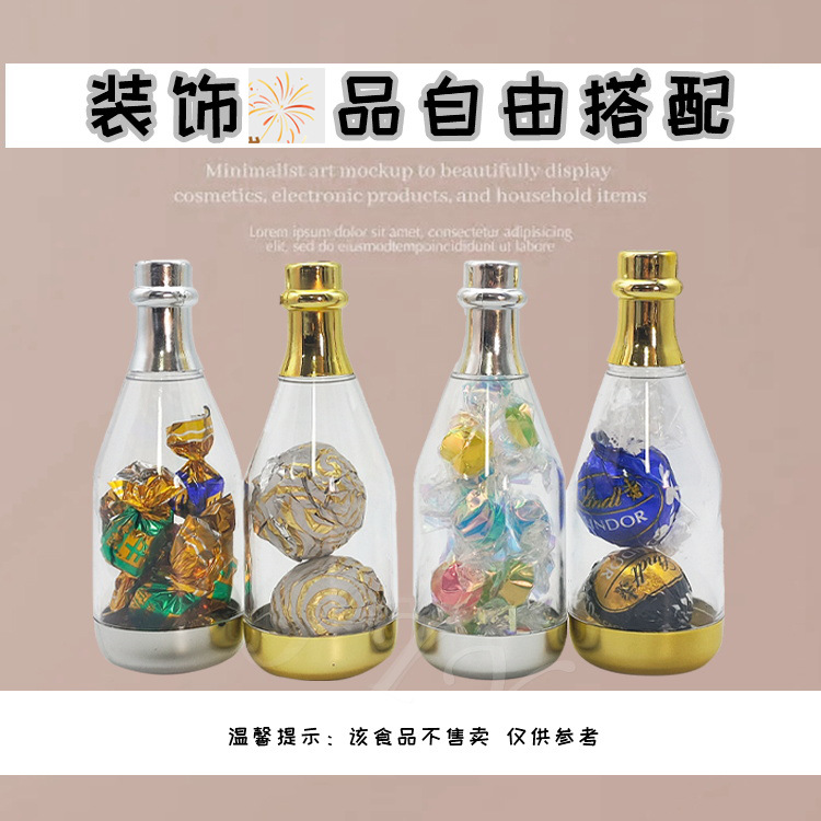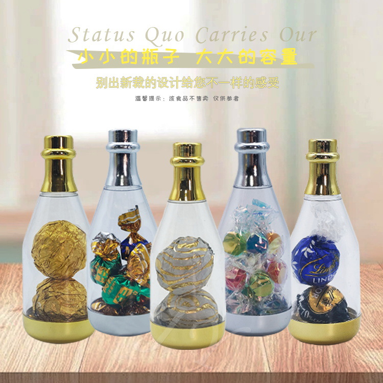 新款创意个性喜糖盒婚礼新款喜糖盒透明香槟瓶塑料酒瓶小糖盒批发