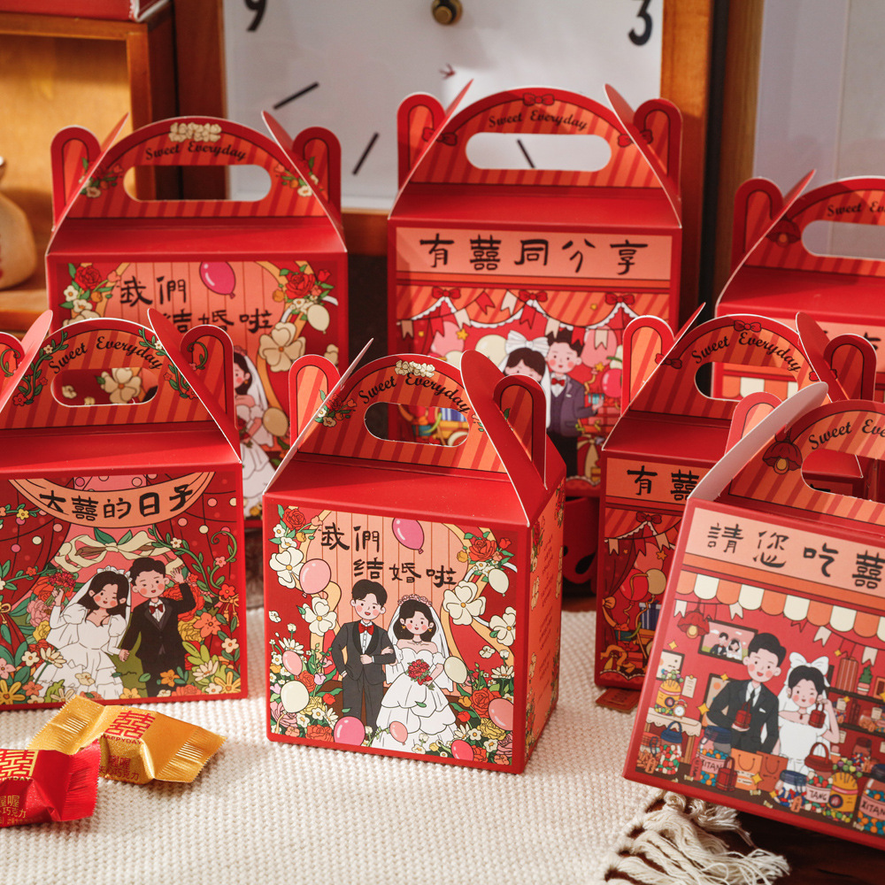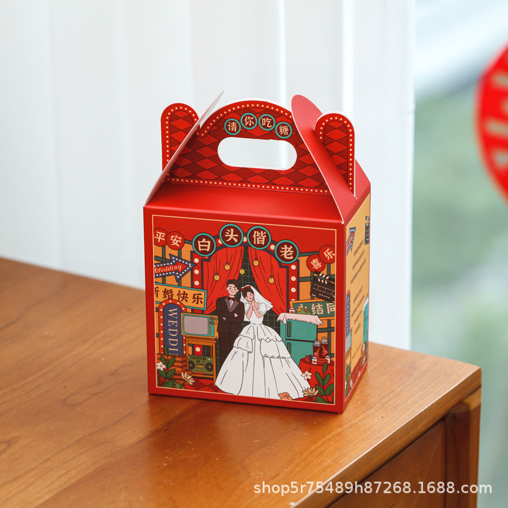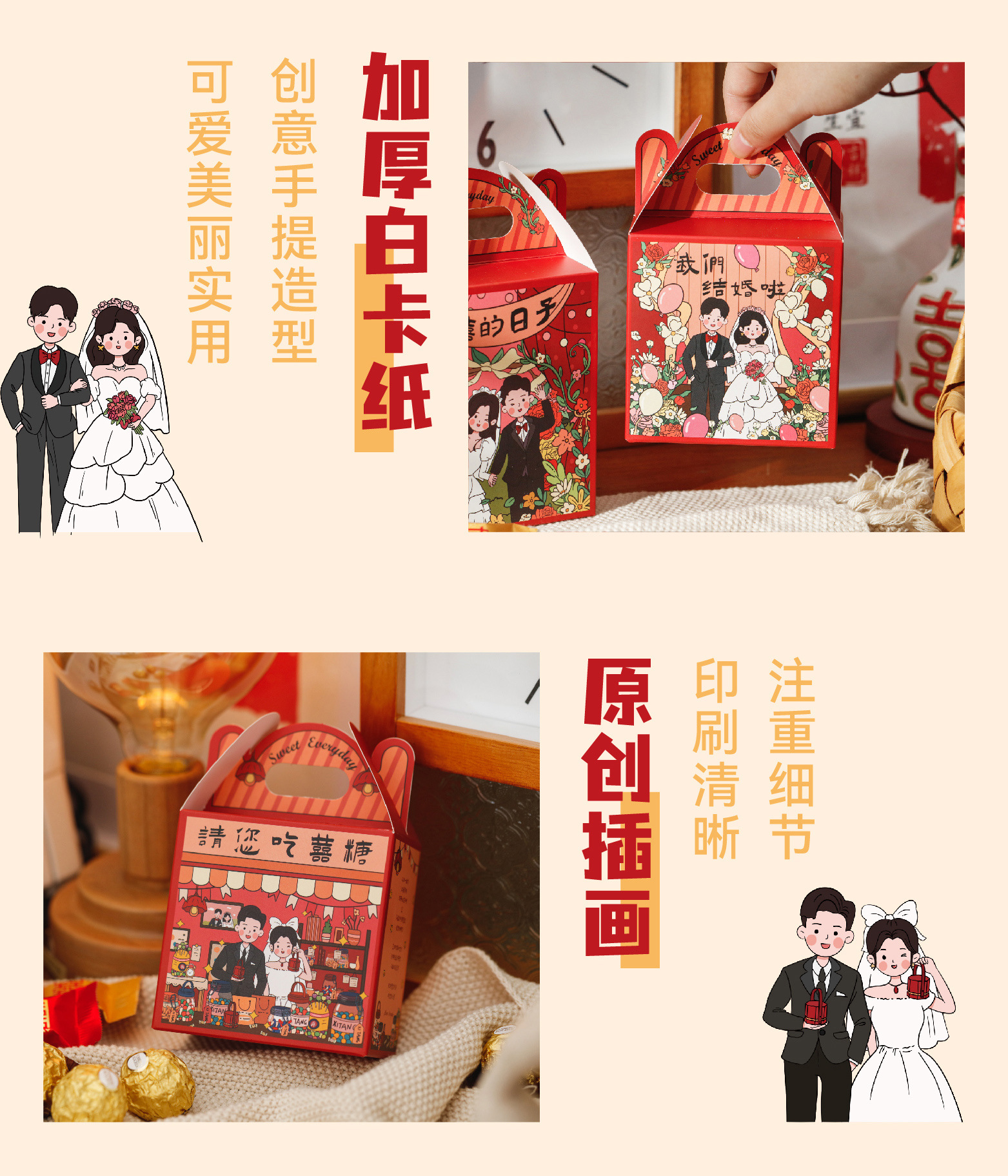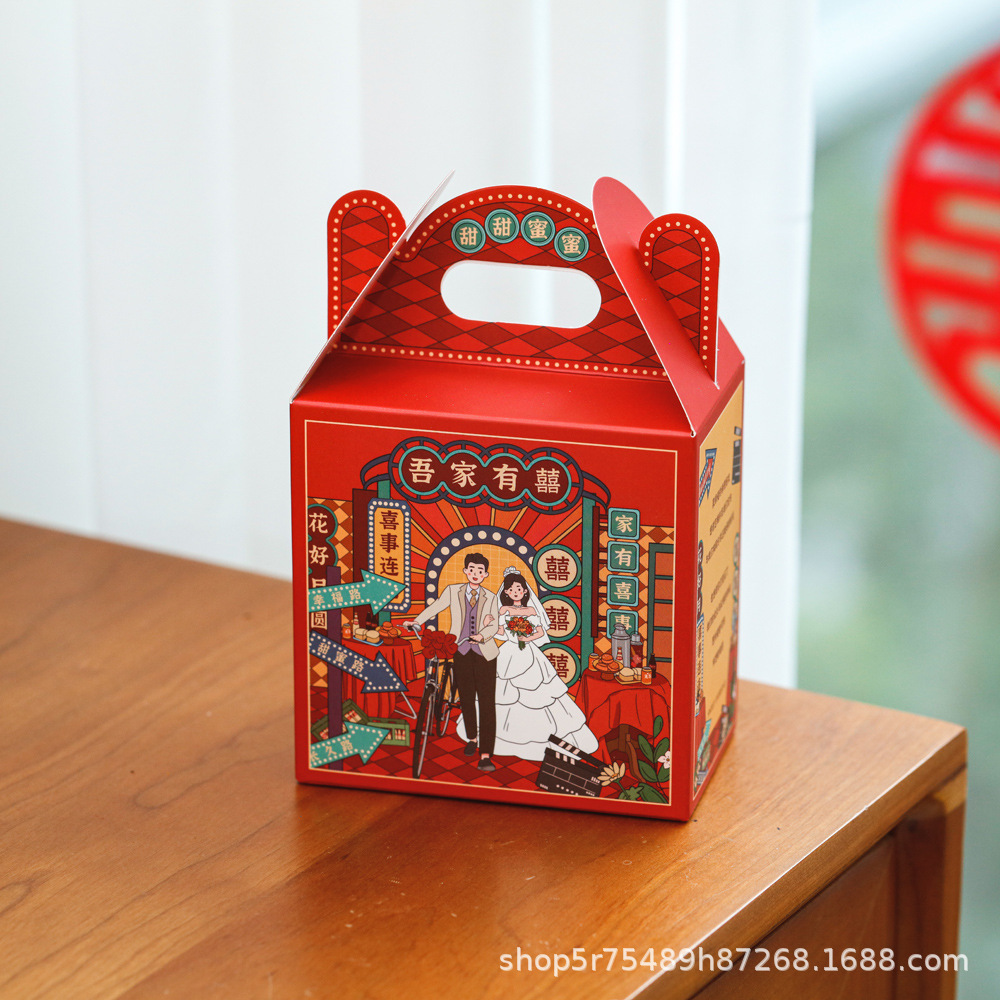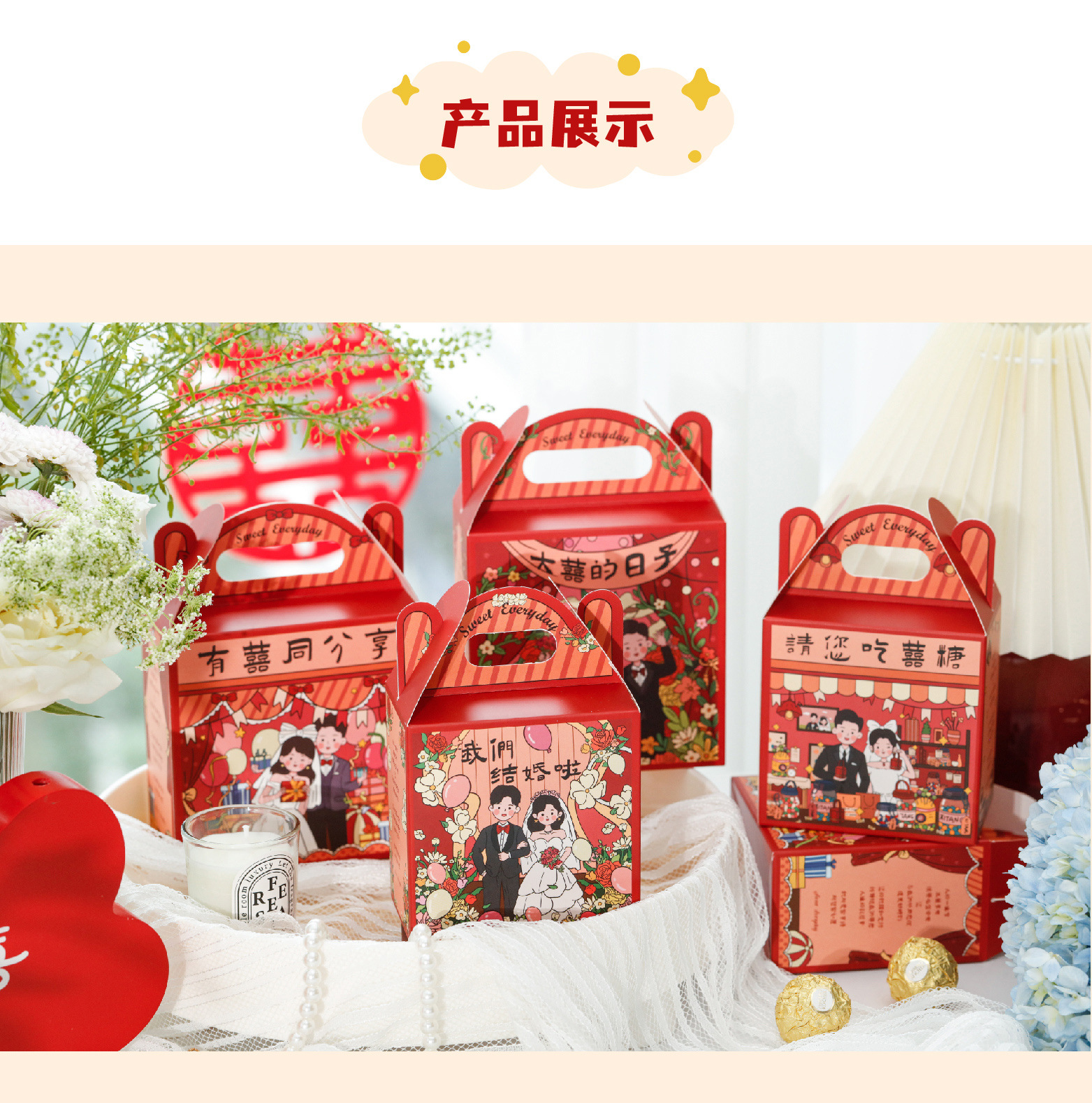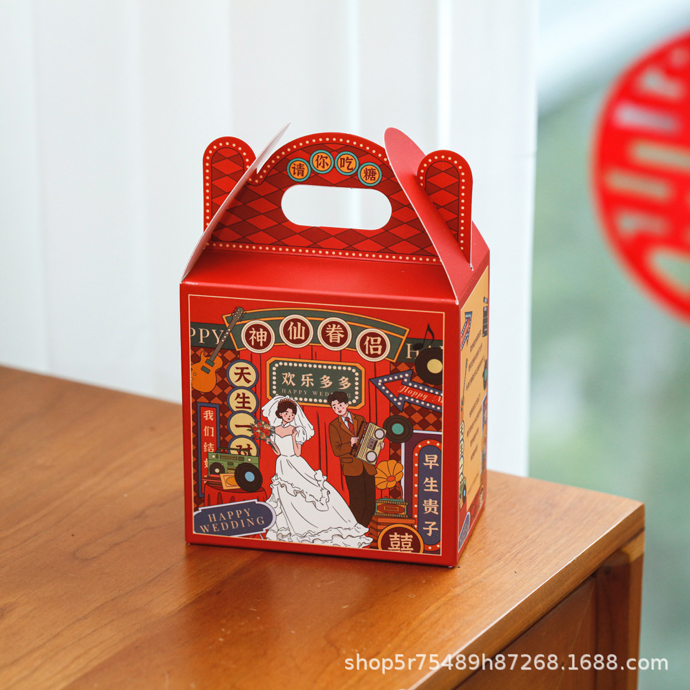 喵述 港风复古结婚喜糖盒小众高颜值婚礼用喜糖包装盒diy手提空盒