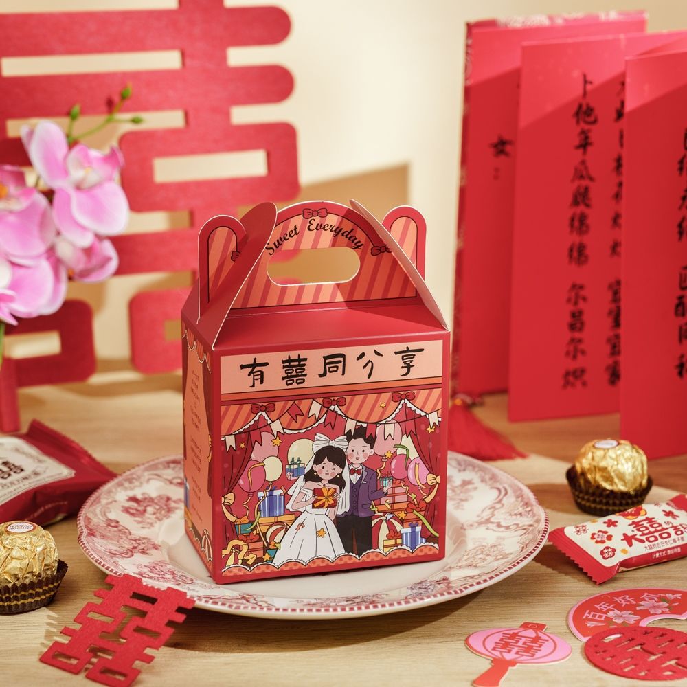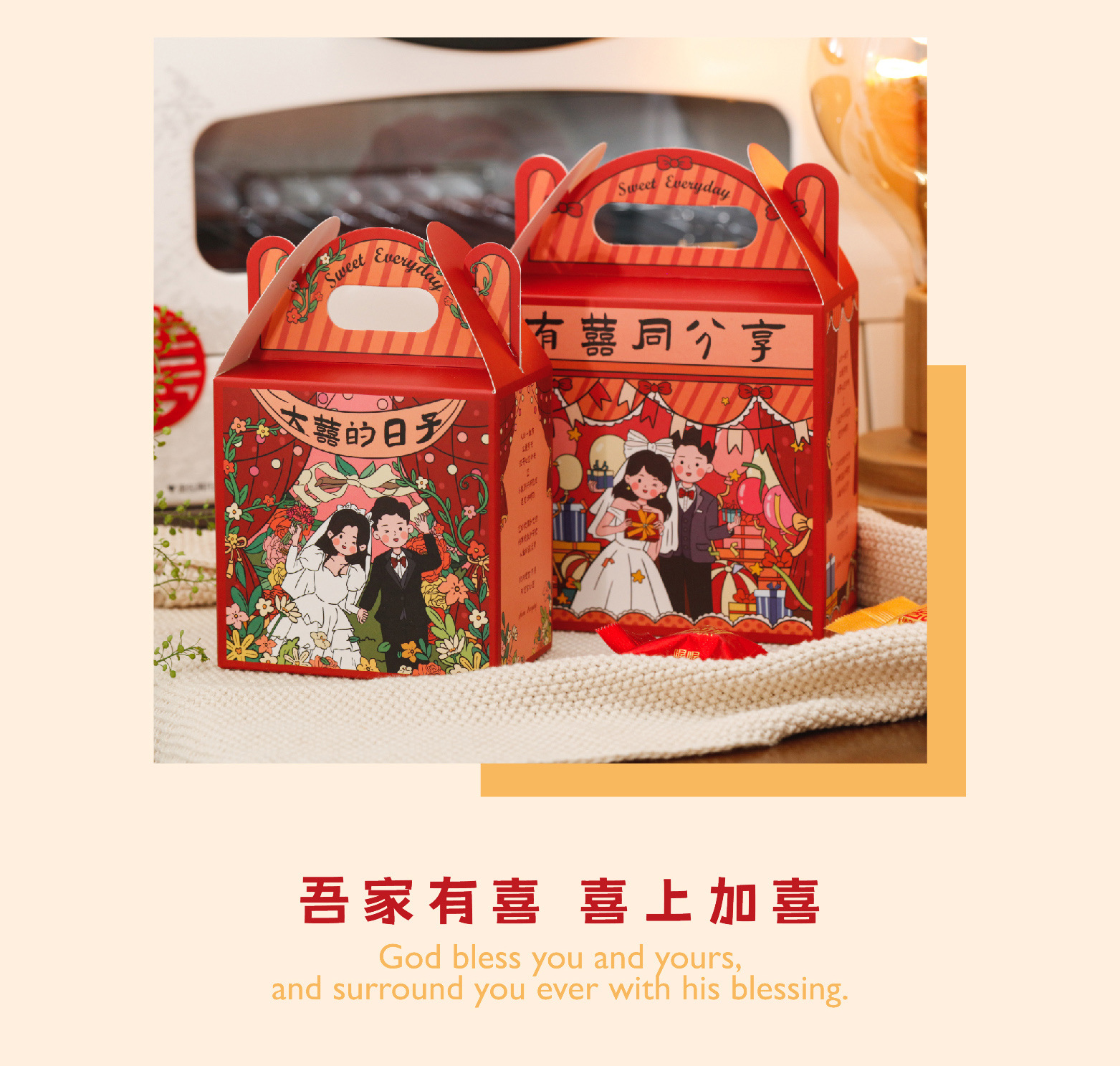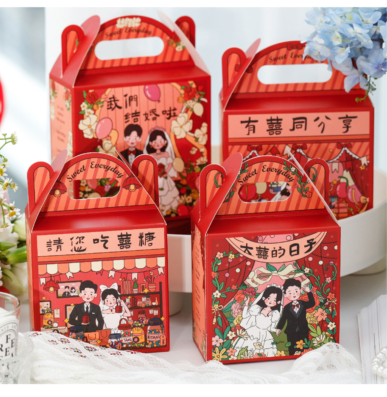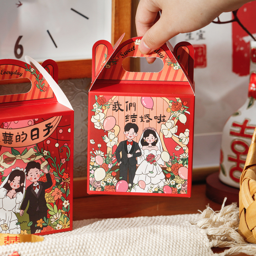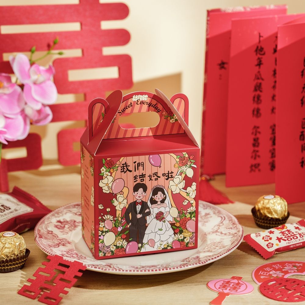 喵述 港风复古结婚喜糖盒小众高颜值婚礼用喜糖包装盒diy手提空盒