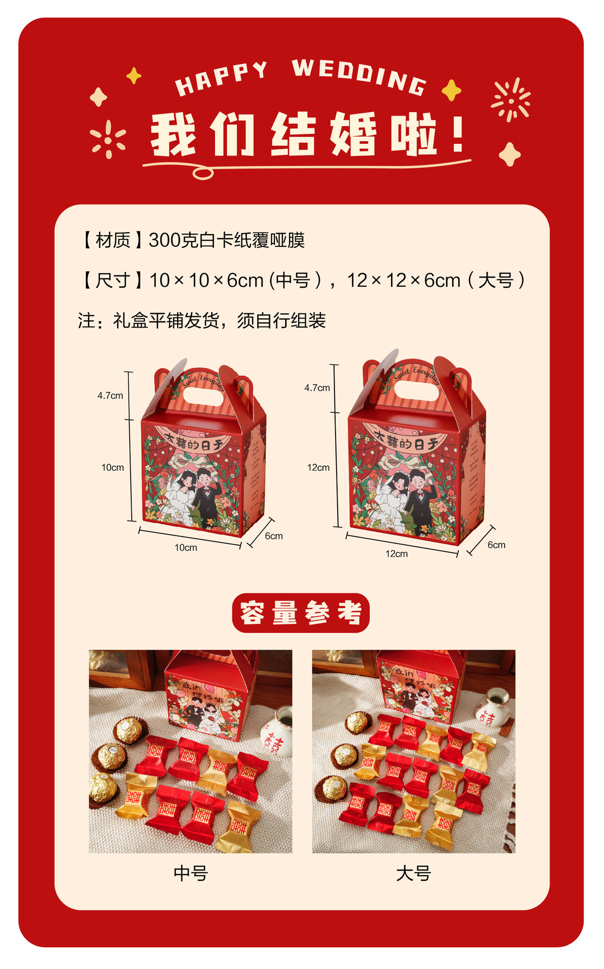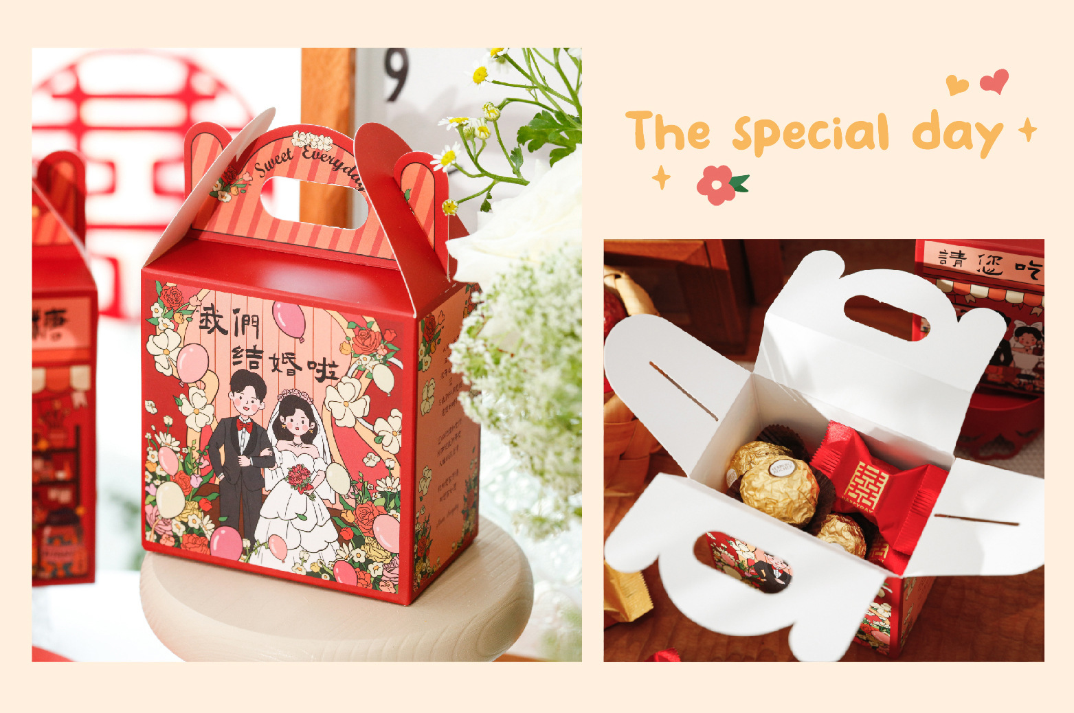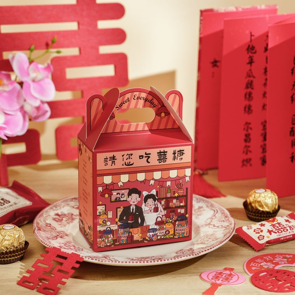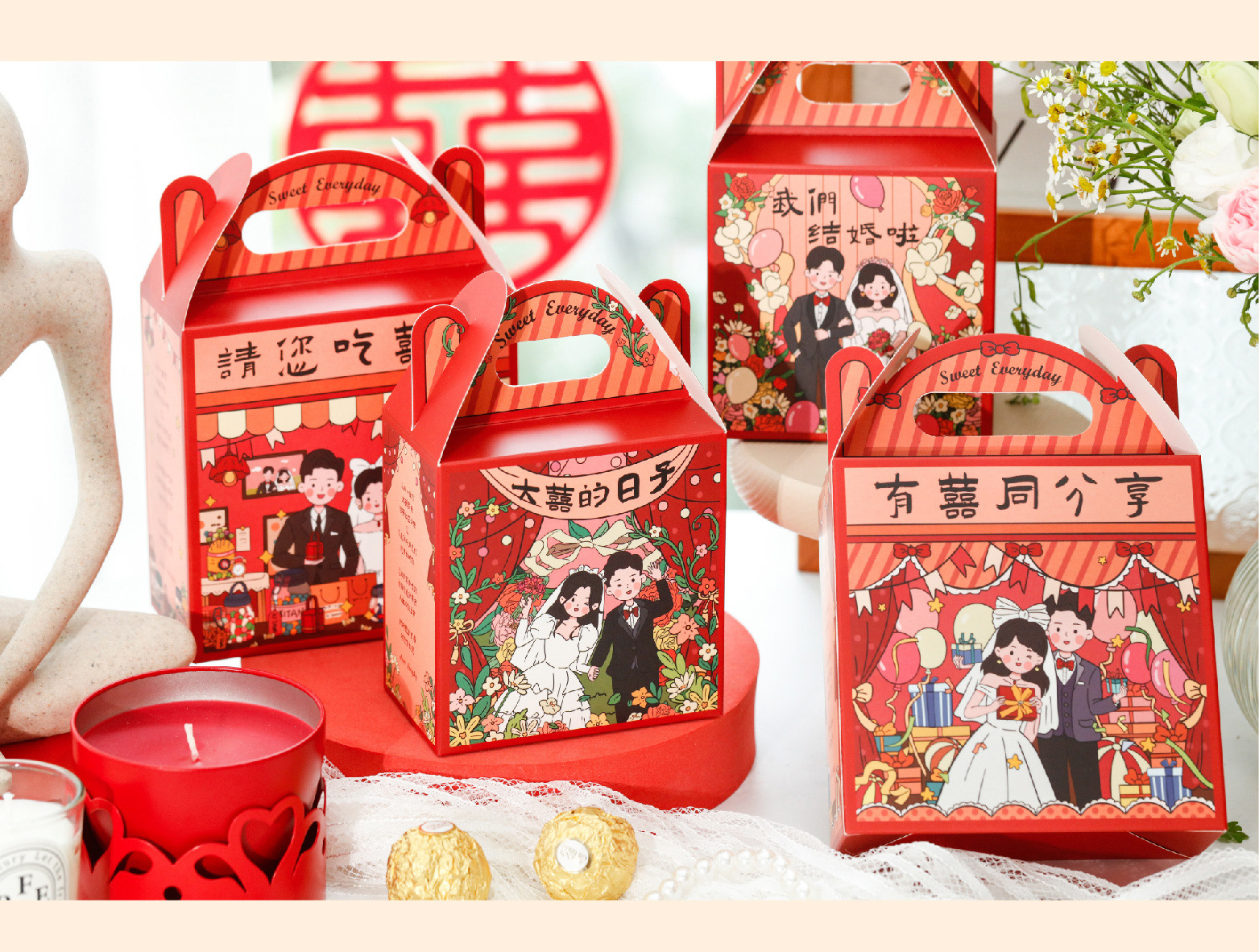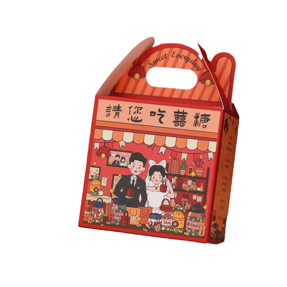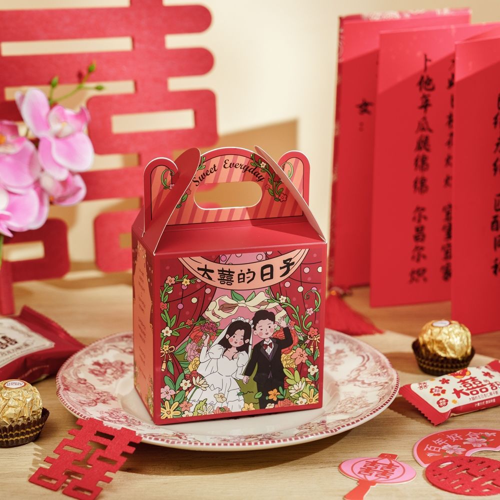 喵述 港风复古结婚喜糖盒小众高颜值婚礼用喜糖包装盒diy手提空盒