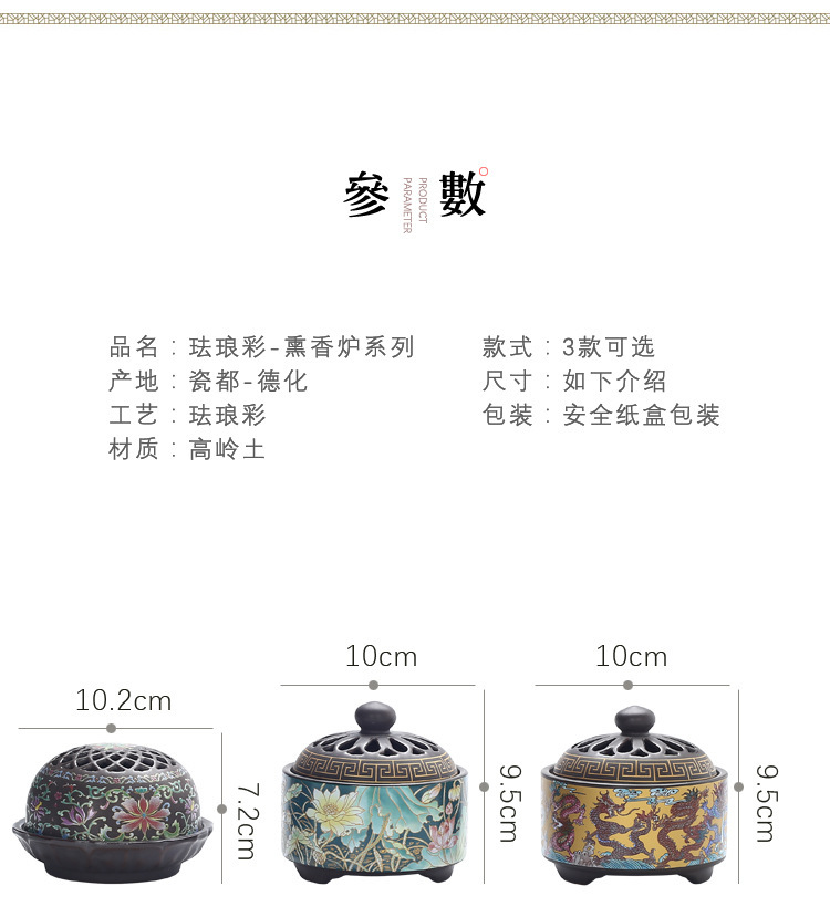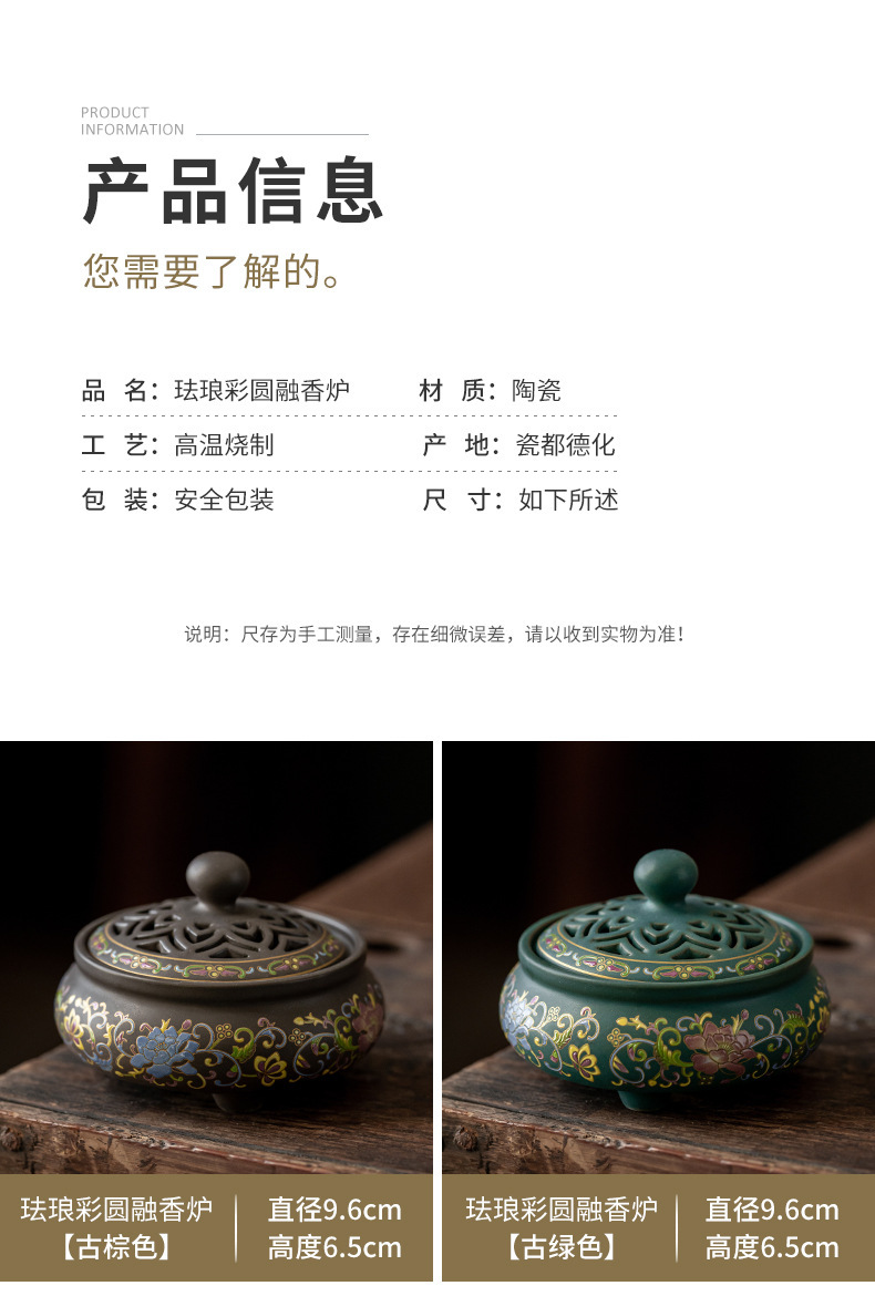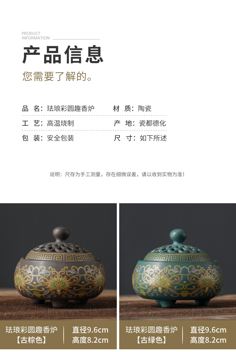 陶瓷景泰蓝香炉 倒流熏香炉 香薰炉香插香道珐琅彩跨境一件直供