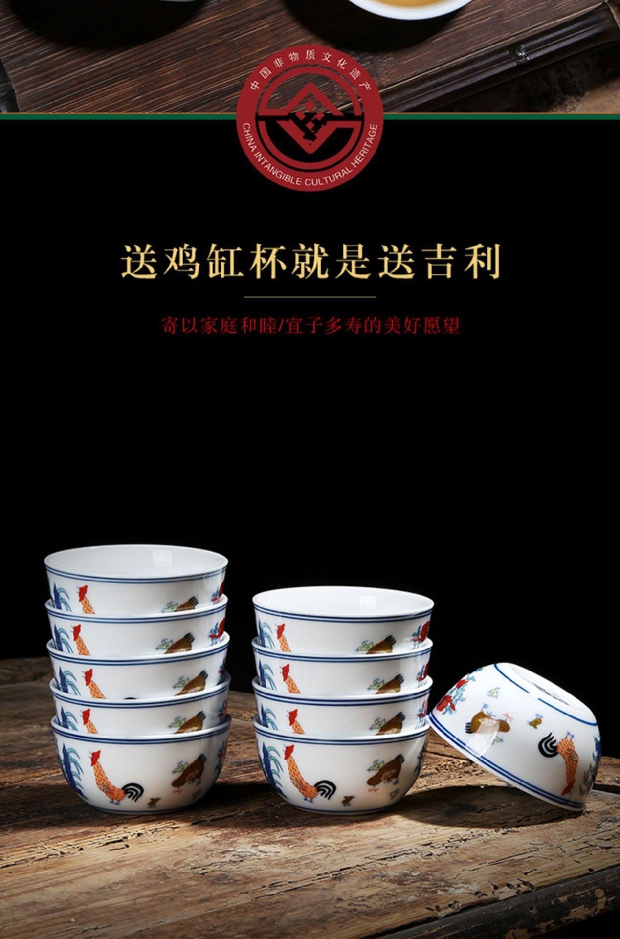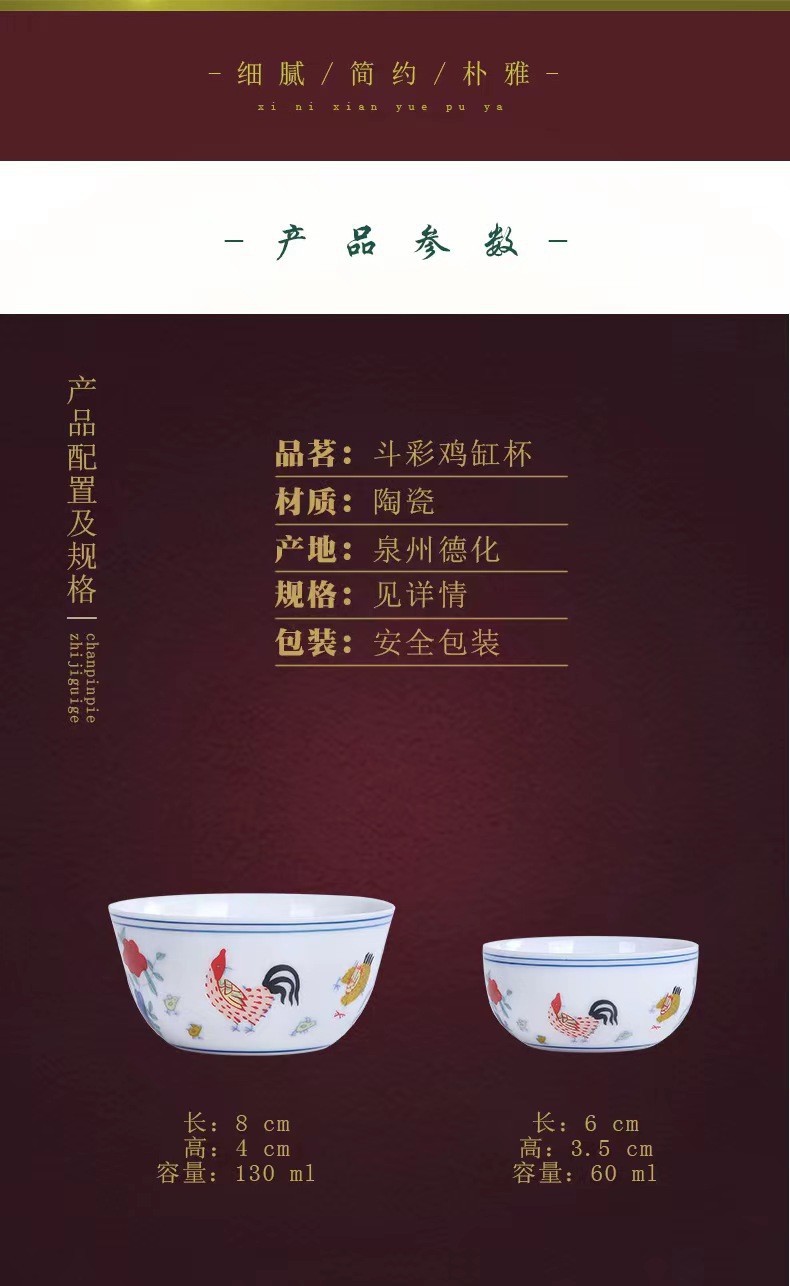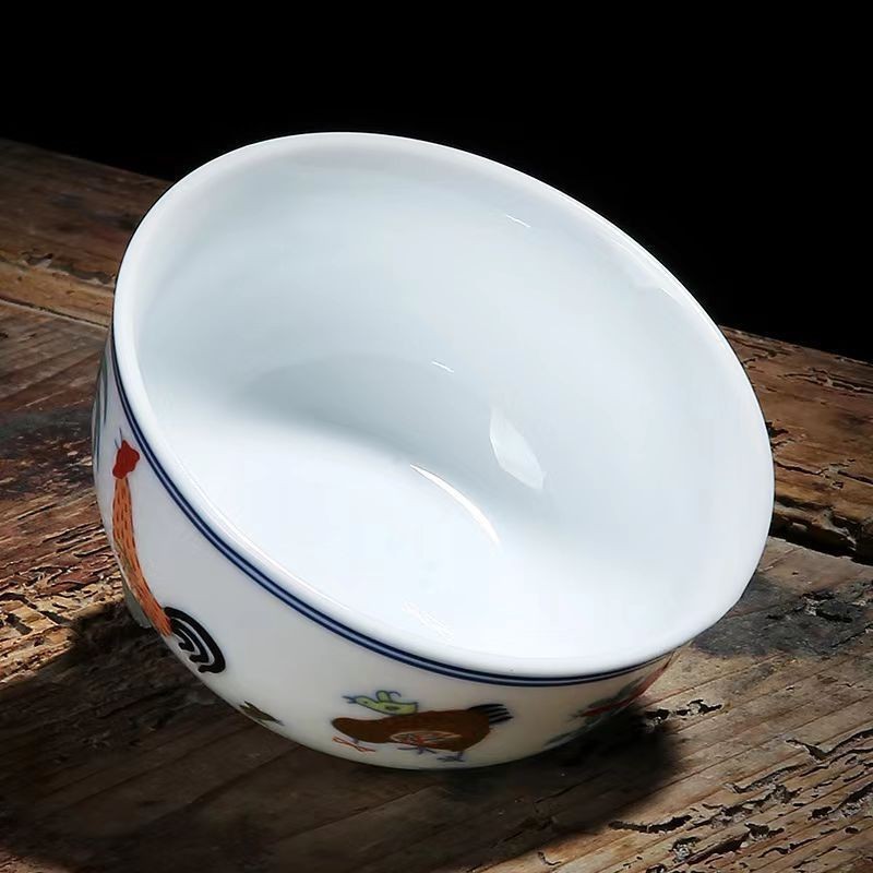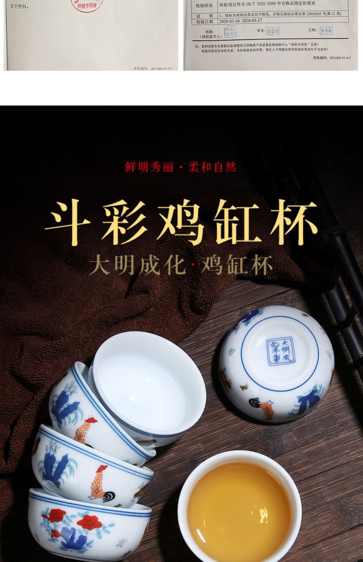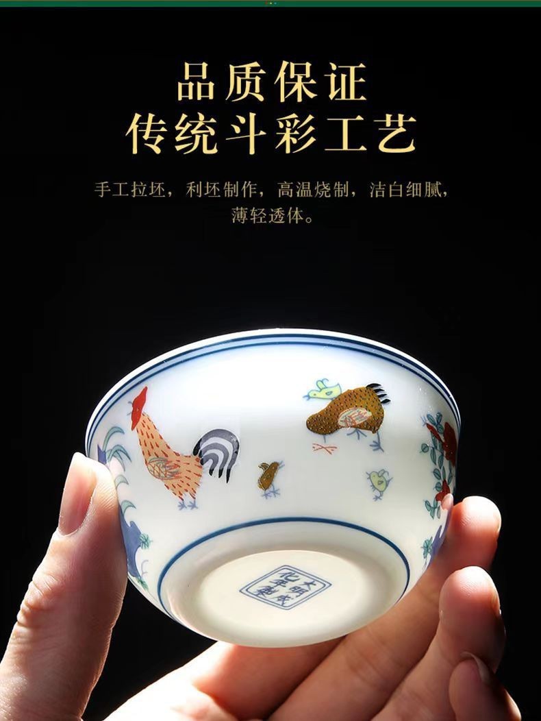 仿古明成化斗彩鸡缸杯大小号陶瓷主人品茗杯茶具套装酒杯单杯礼品