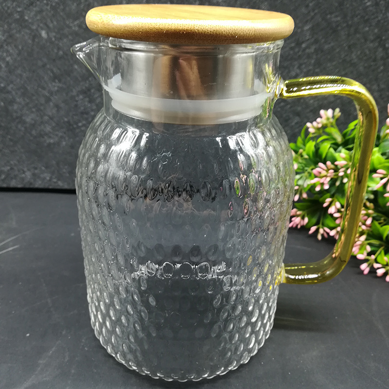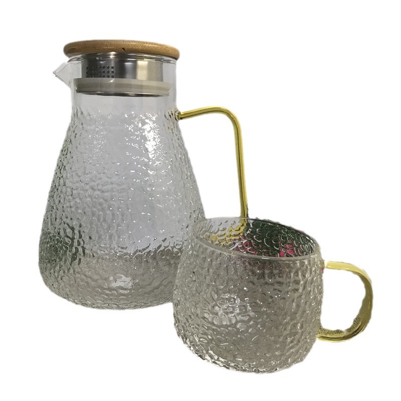 大容量锤纹玻璃冷水壶套装高级感家用高硼硅凉水壶加厚简约果汁壶