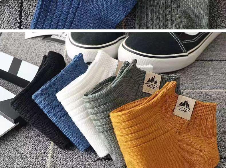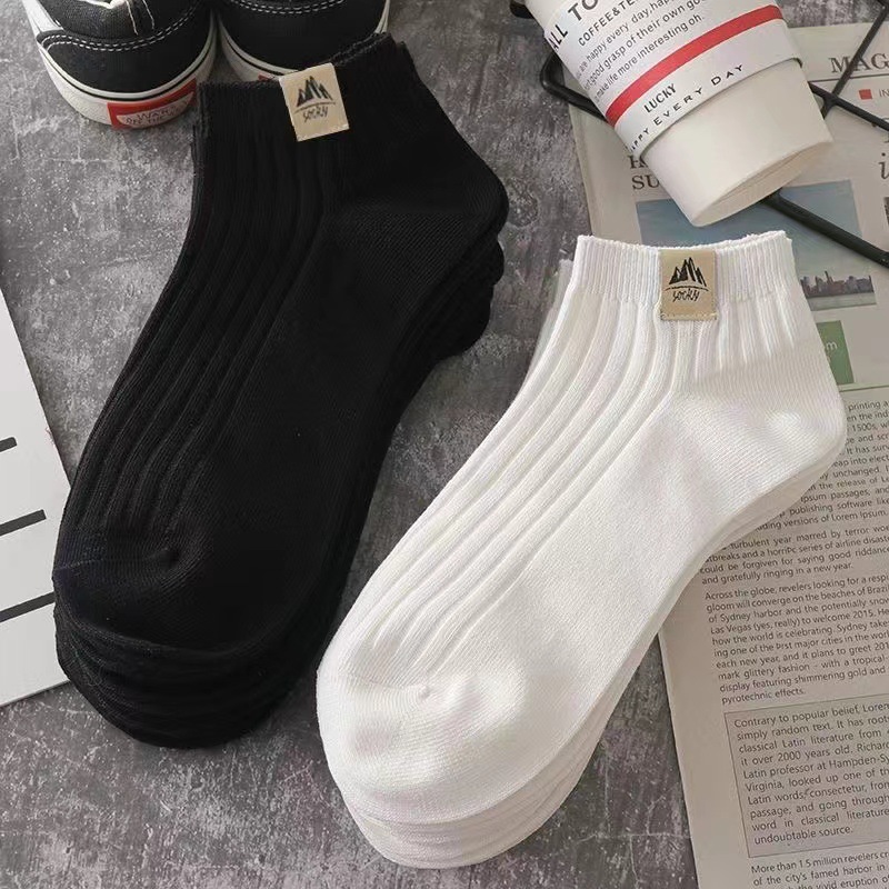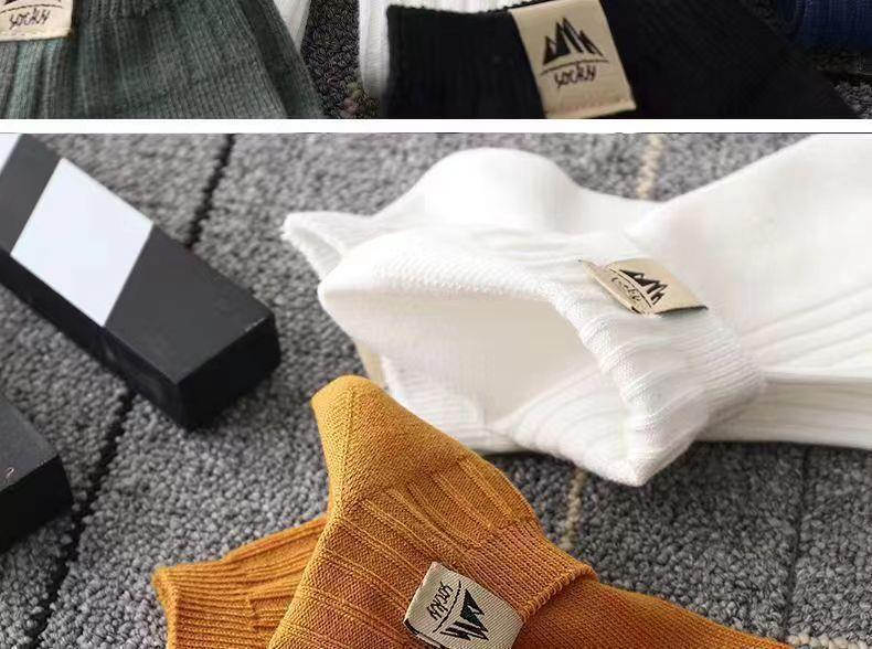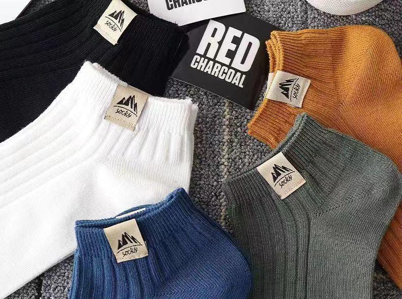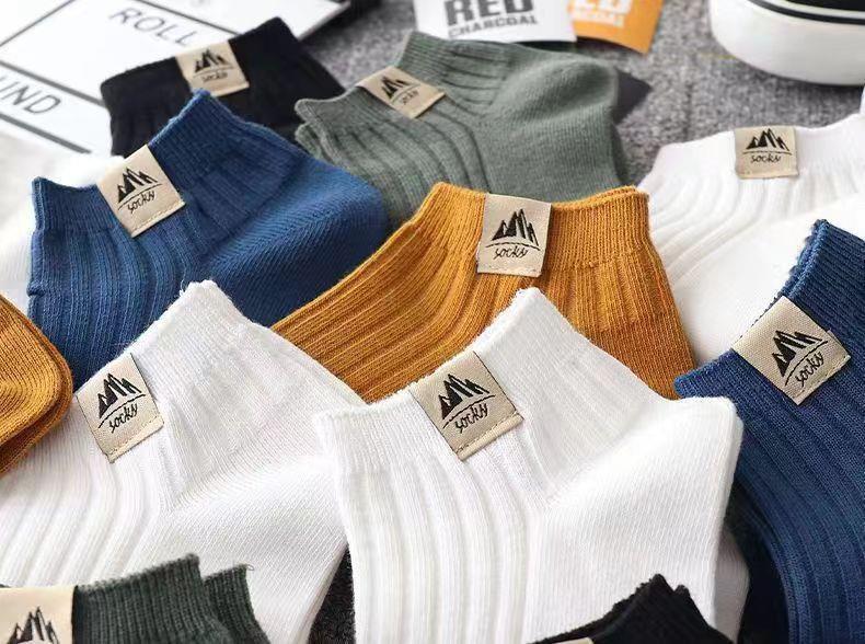 男士袜子夏薄款布标雪山男士短袜抽条隐形短筒休闲复古袜子春夏薄
