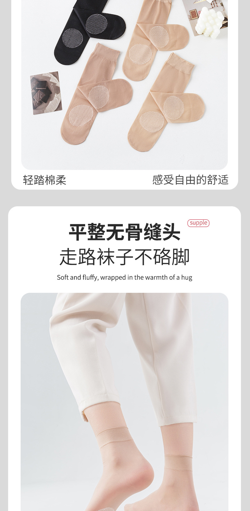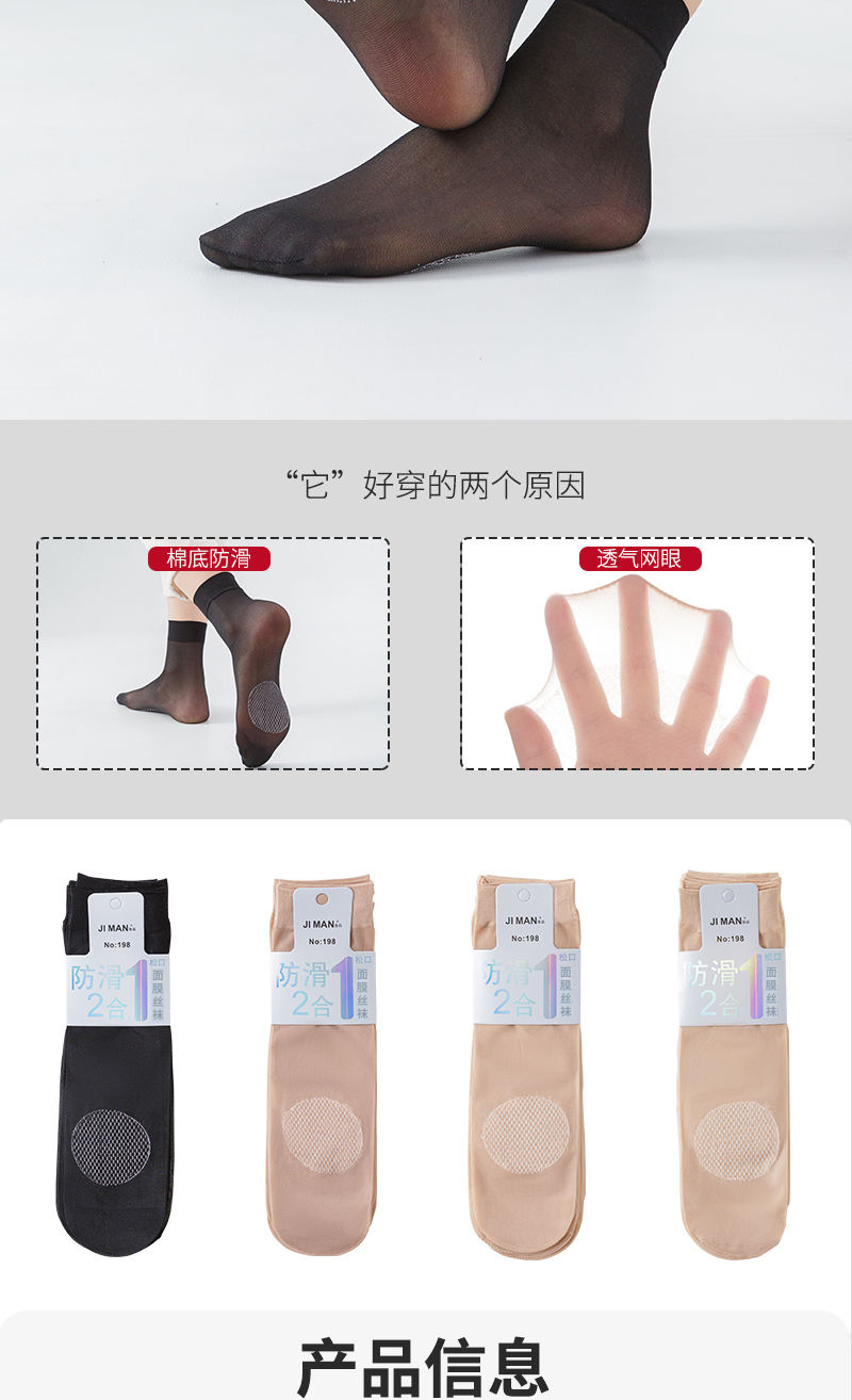 丝袜春夏薄款耐磨防滑肤色短丝袜半透防勾肉色短筒钢丝袜厂家批发