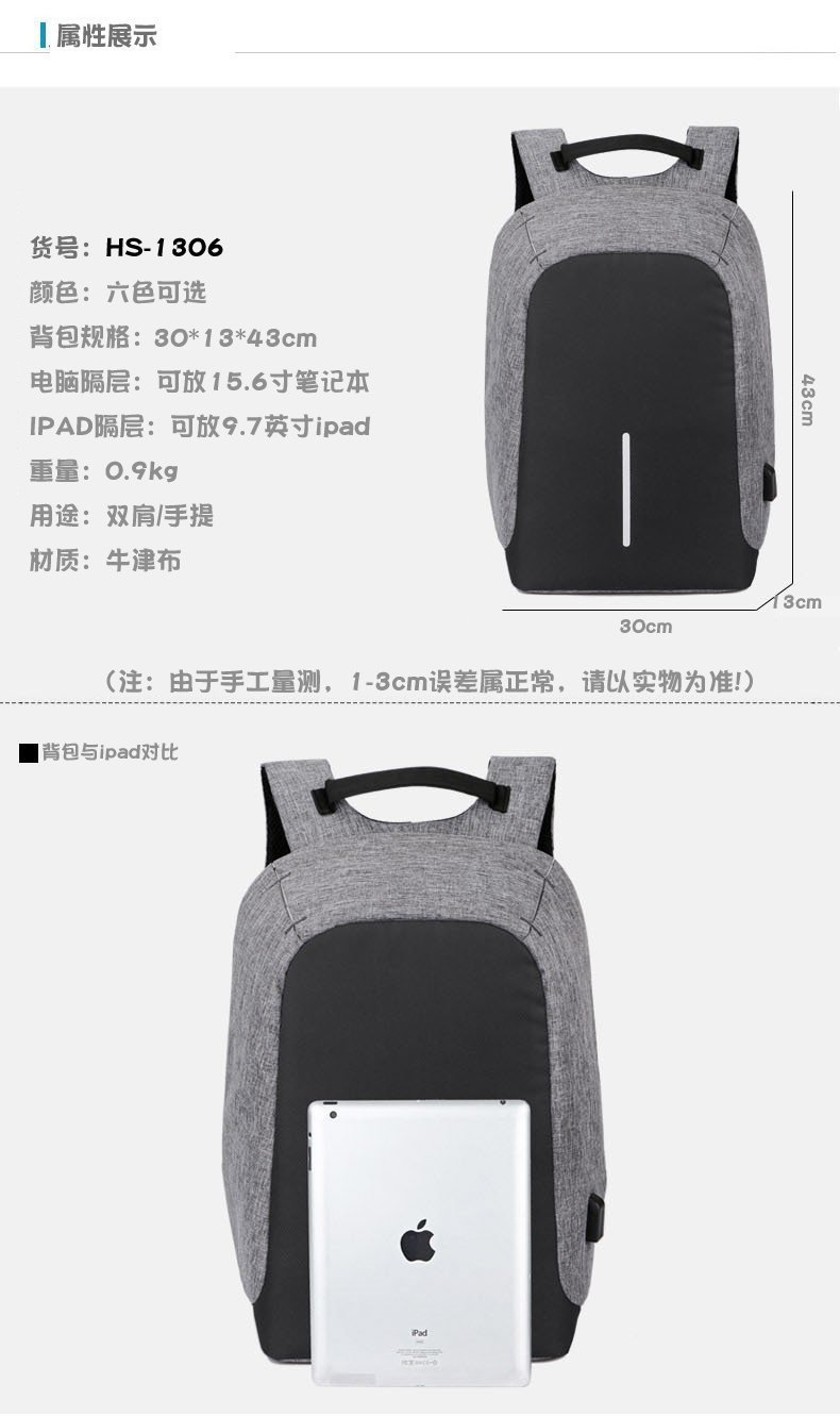 休闲商务新款电脑包男可充电初高中学生背包旅行大容量简约双肩包