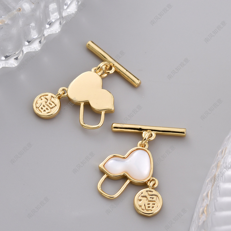 珍珠项链扣贴贝母中国风葫芦福字手工收尾扣连接扣毛衣链diy配件
