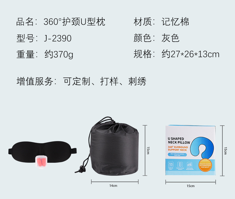 跨境u型旅行枕汽车护颈办公室午睡记忆棉飞机头枕不偏头U型护颈枕