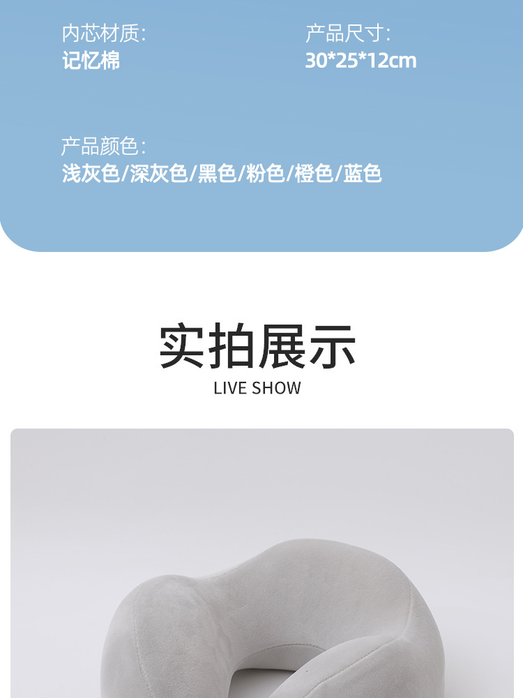 u型便携简约飞机旅行枕办公室午睡可拆洗护颈枕颈椎枕记忆棉u型枕