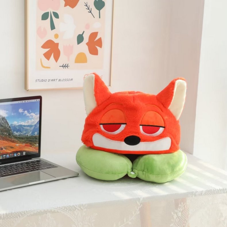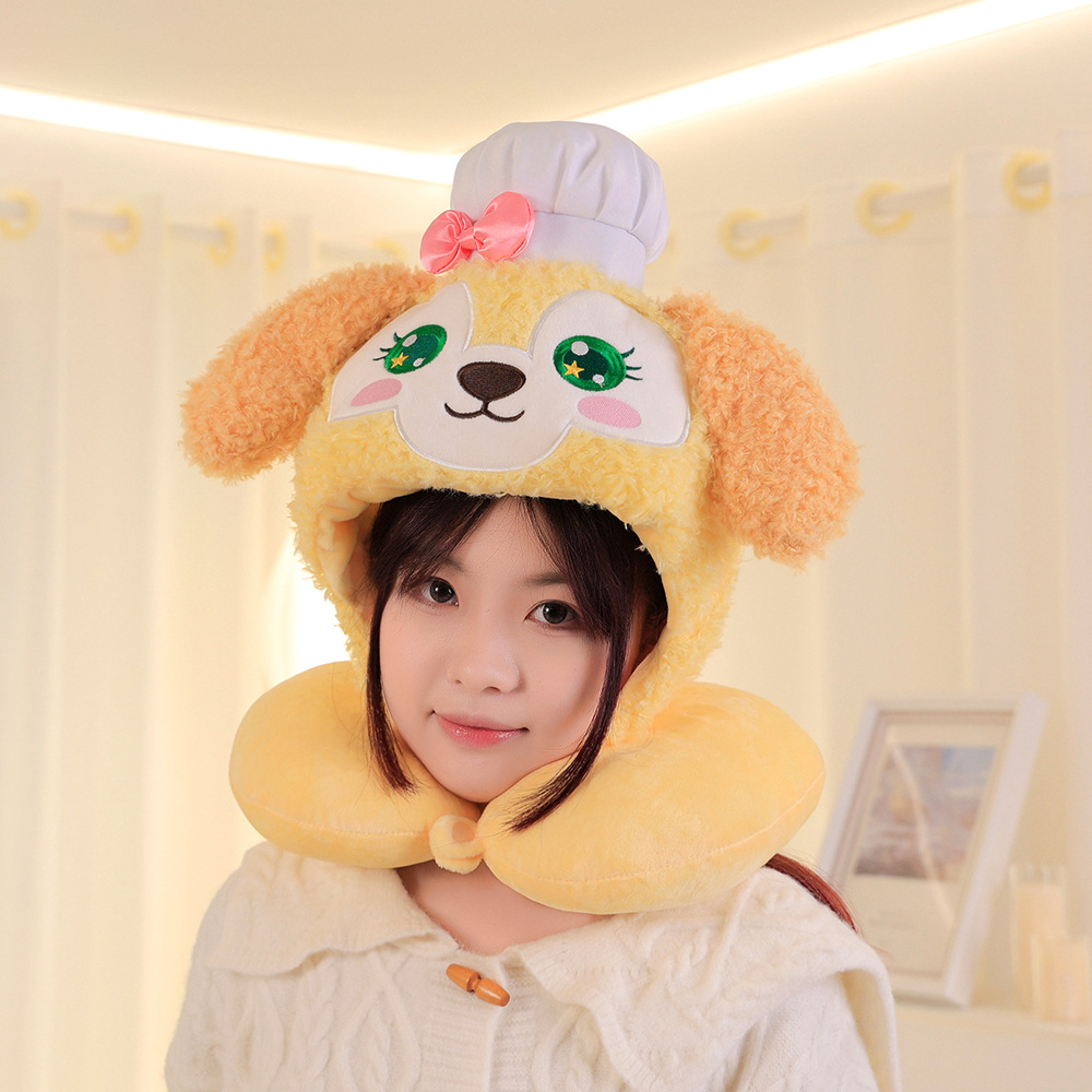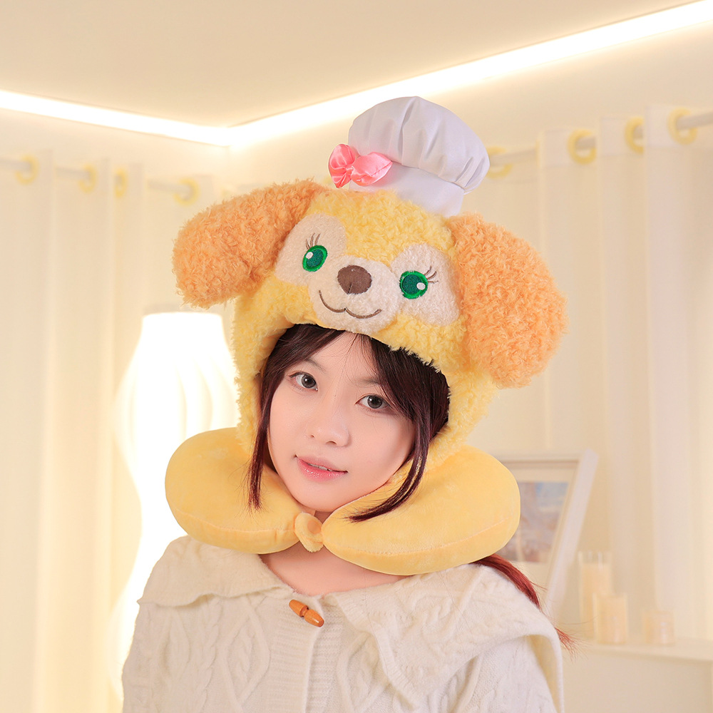 卡通史迪仔毛绒u型枕连帽脖子护颈枕旅行坐车飞机办公室午睡枕头