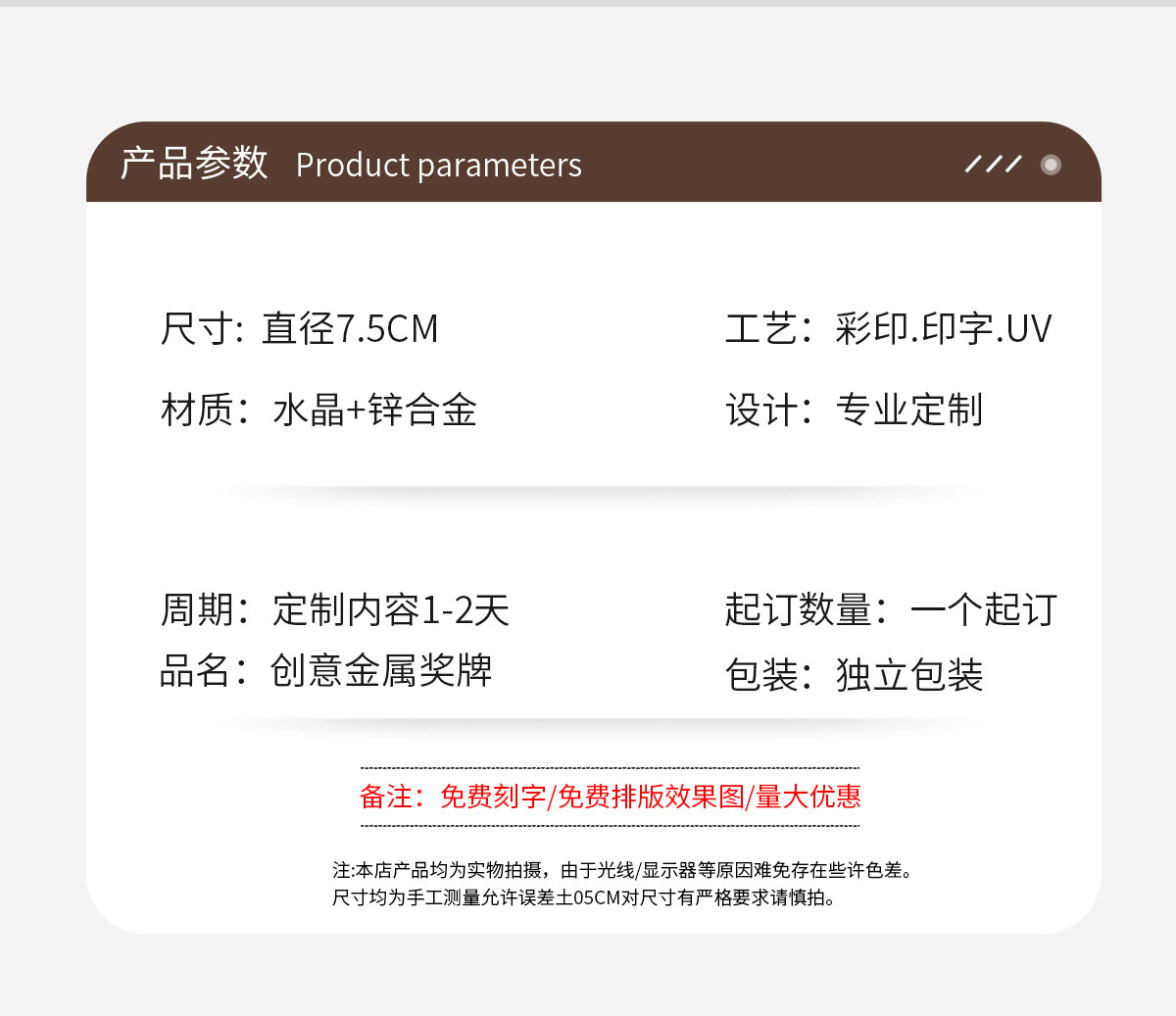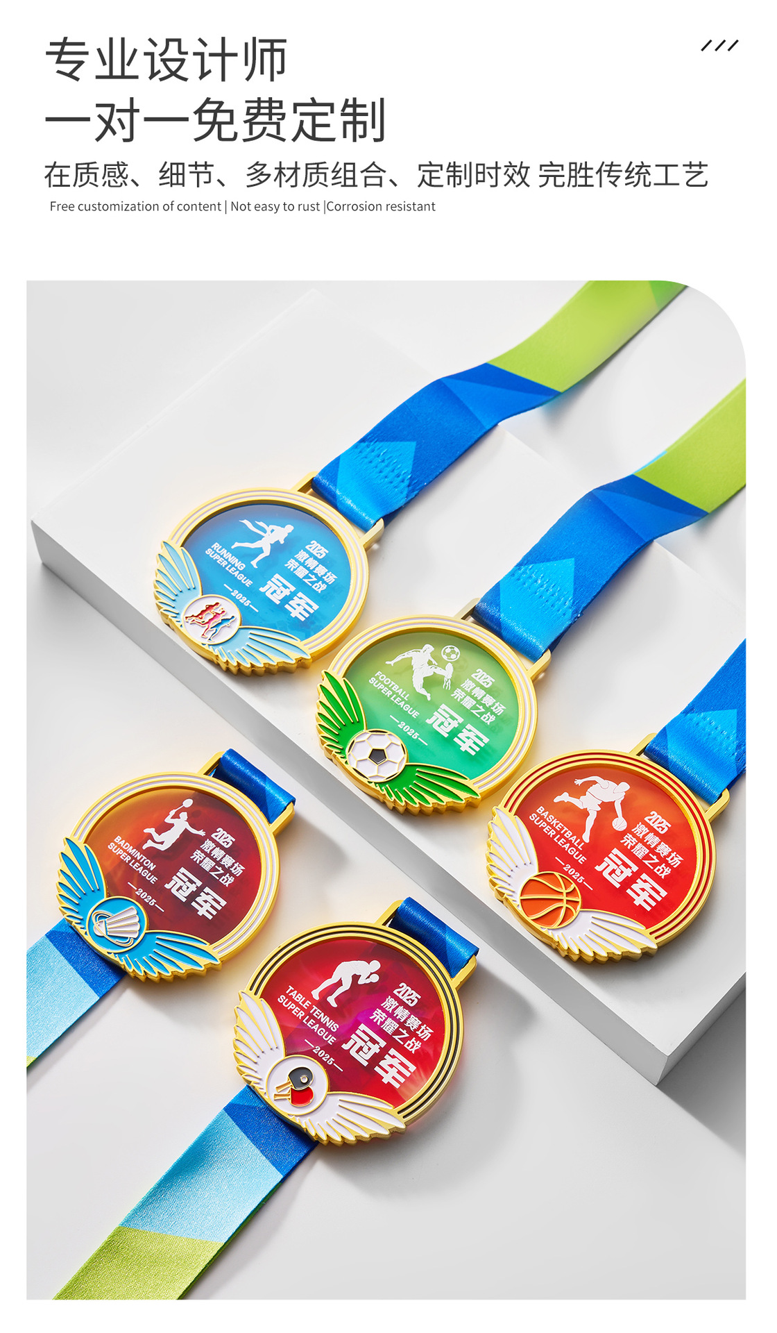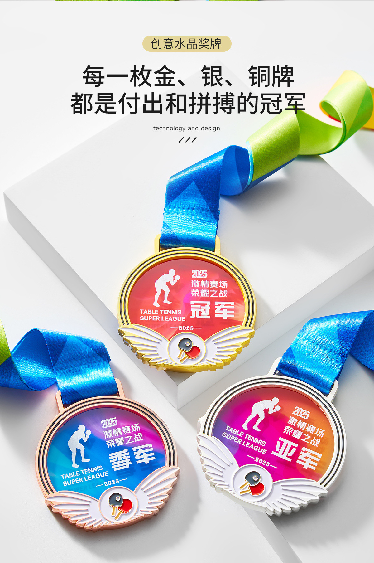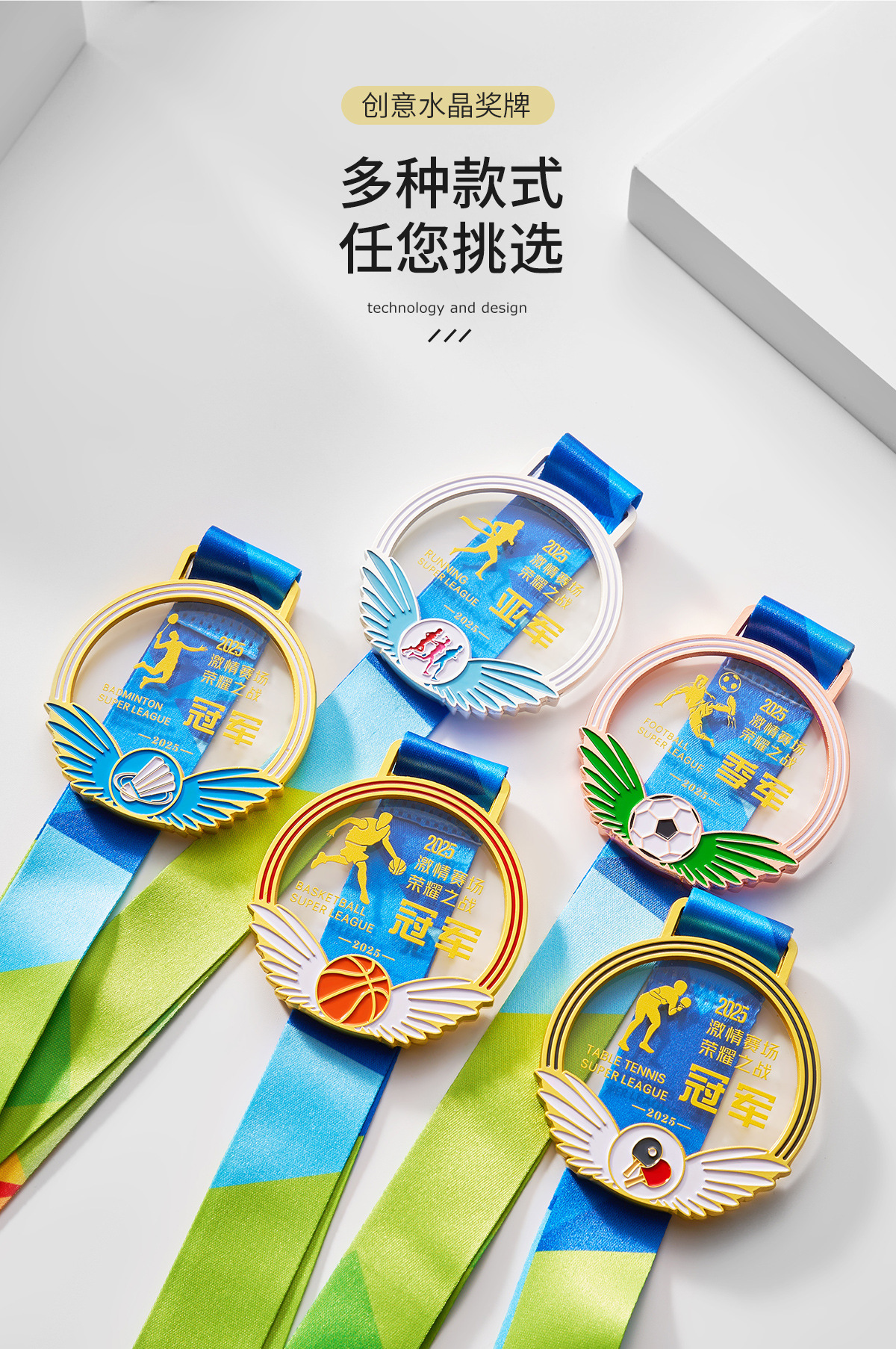定制荣誉水晶运动挂牌运动会篮球比赛马拉松奖牌金属表彰嘉奖纪念