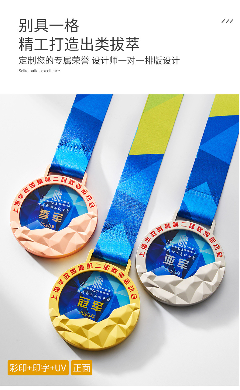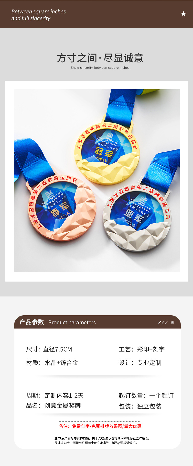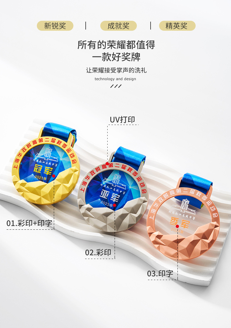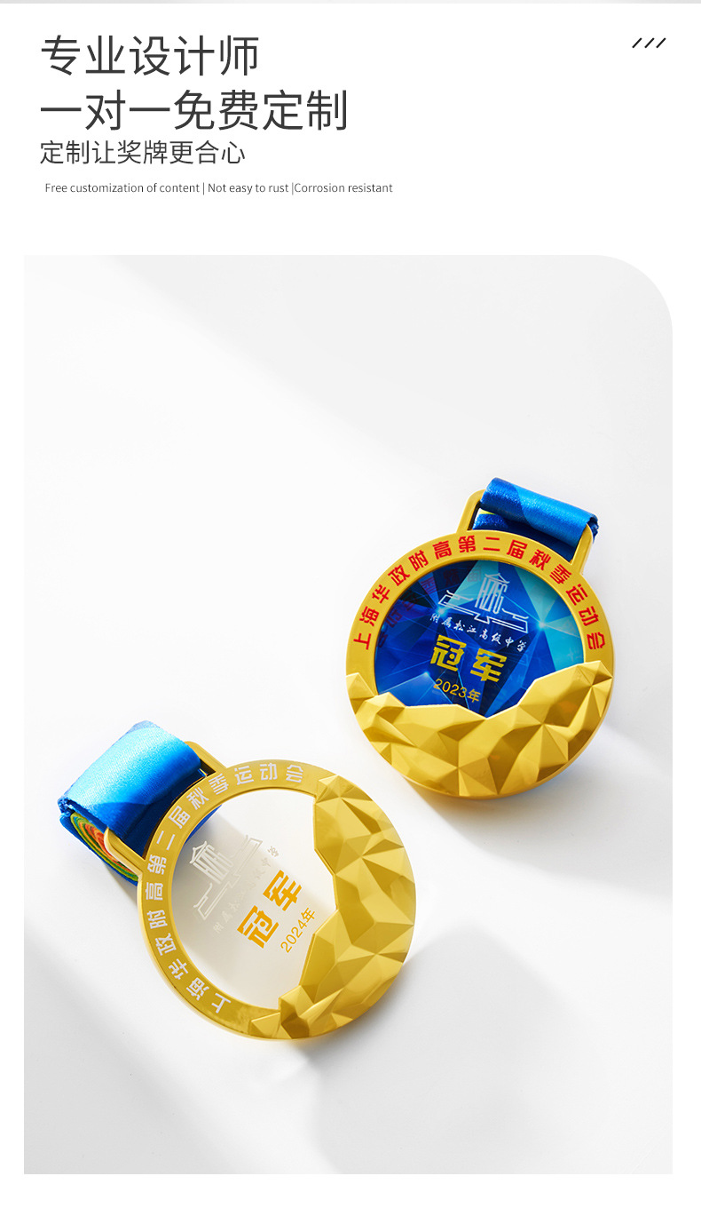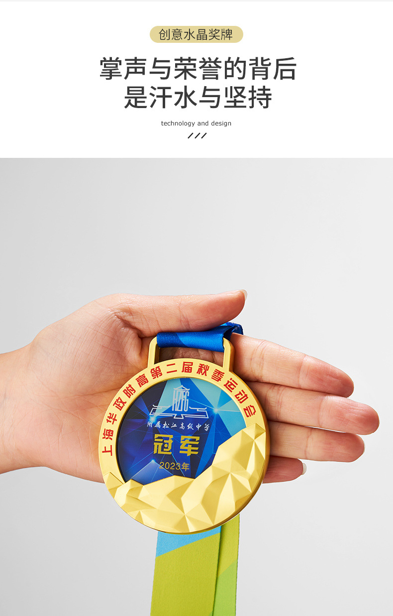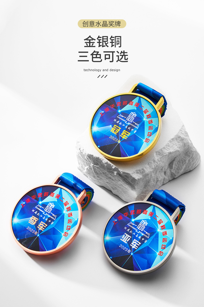金属水晶奖牌制作荣誉儿童学生学校马拉松运动会纪念金牌挂牌刻字