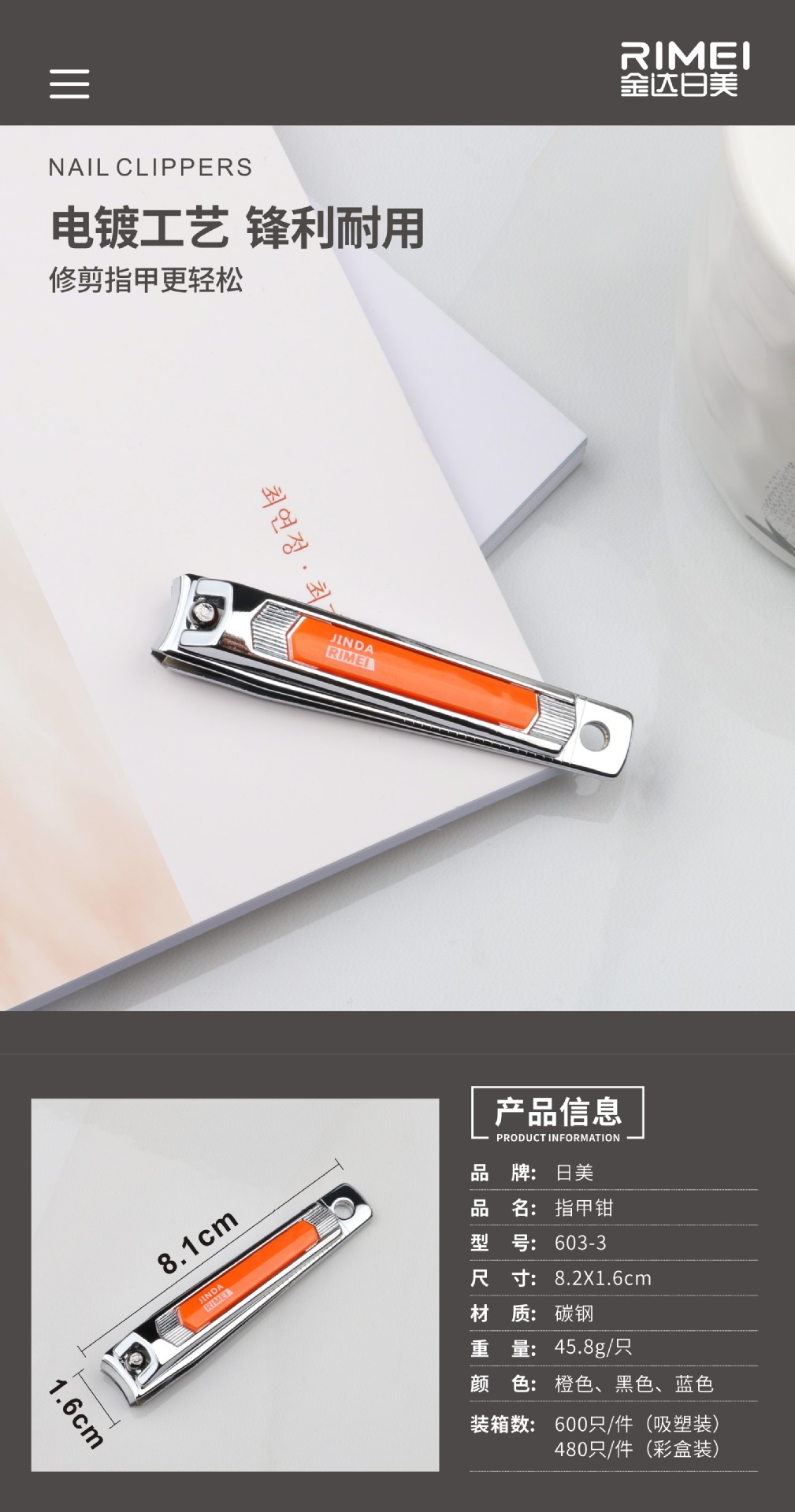 金达日美盒装指甲剪指甲刀指甲钳大号中号小号批发625R全系列