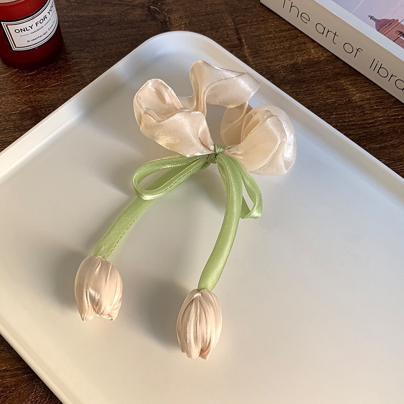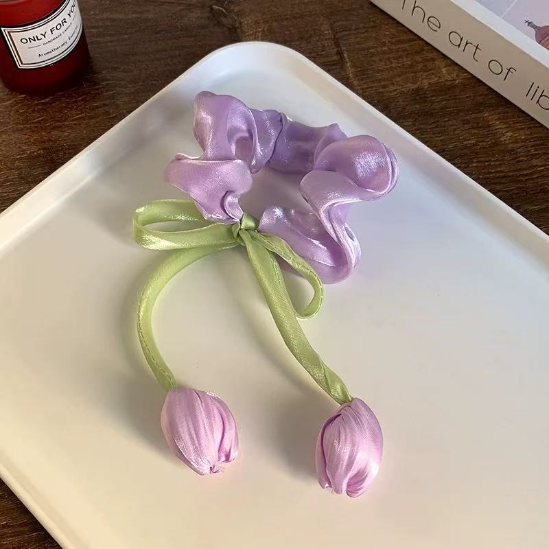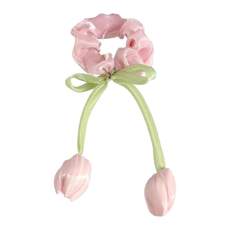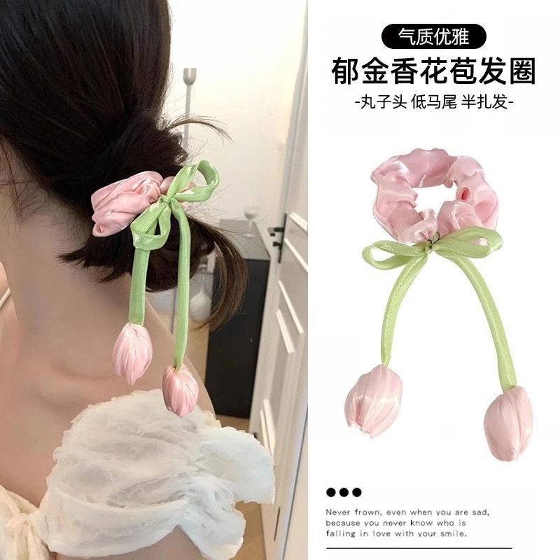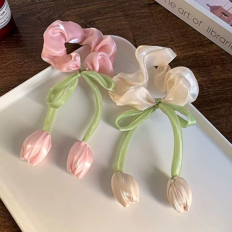 韩系郁金香飘带大肠发圈女感发绳皮筋扎马尾气质头绳花朵头饰