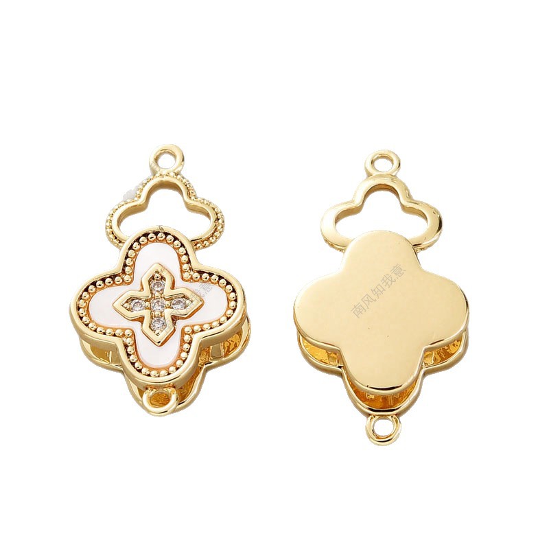 珍珠项链扣贝壳幸运草夹扣弹簧弹力按压手工收尾扣毛衣链diy配件