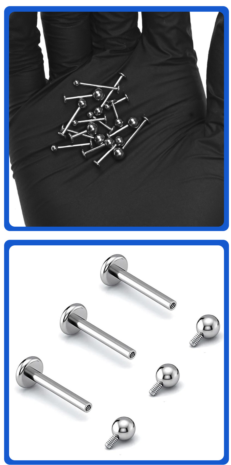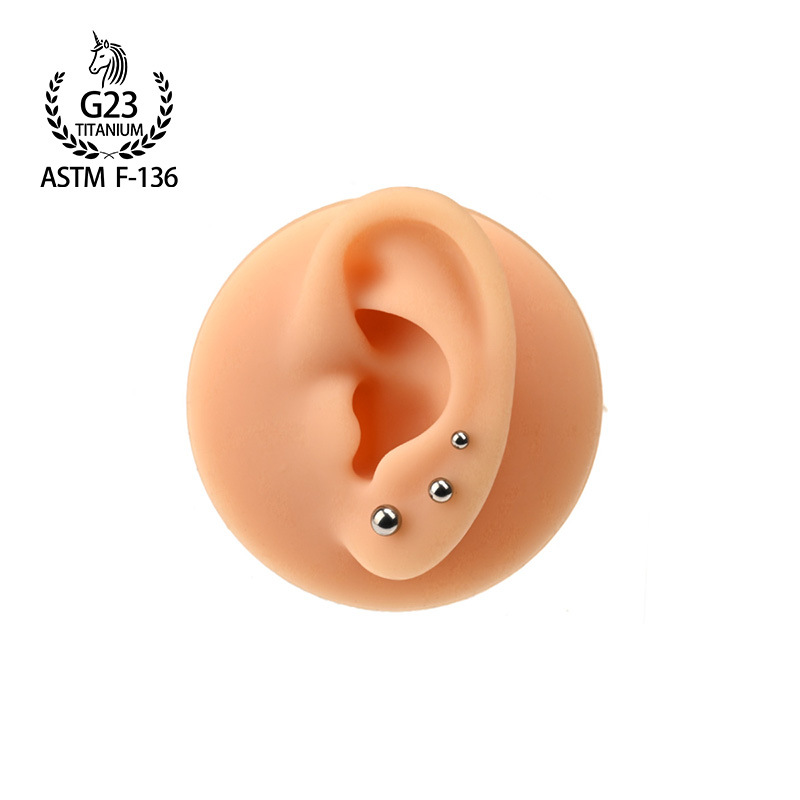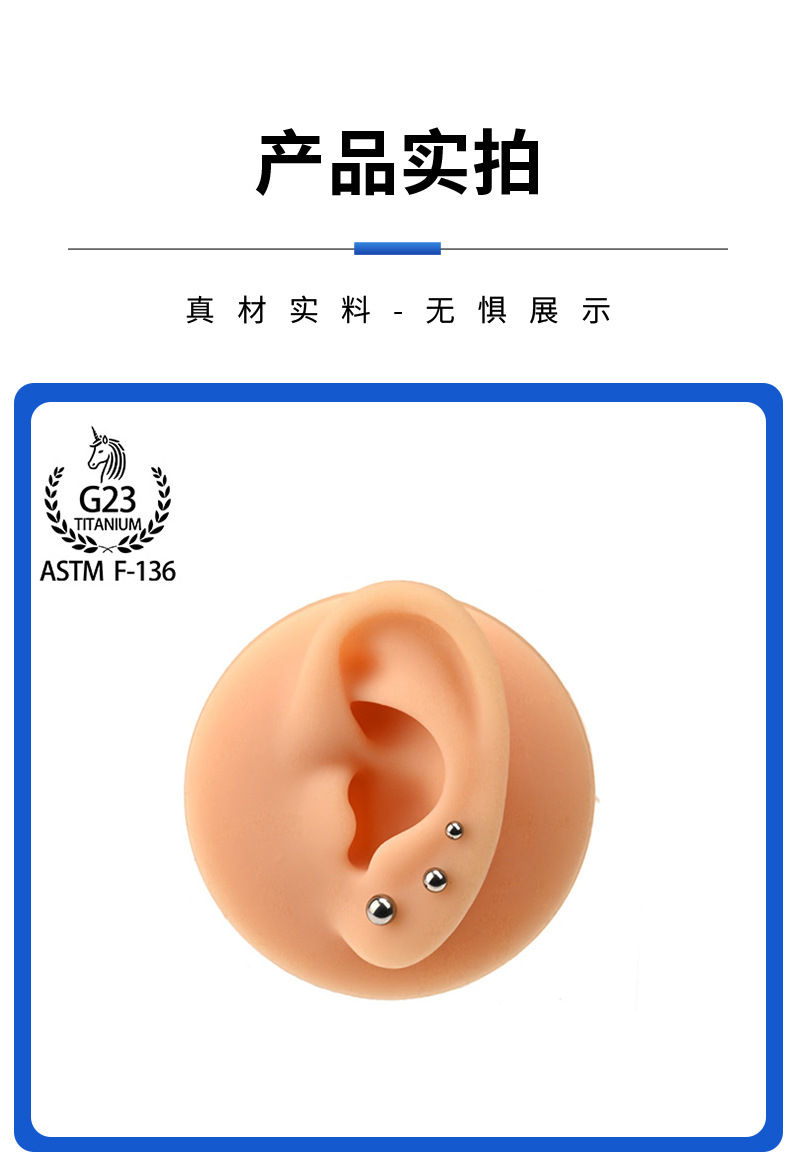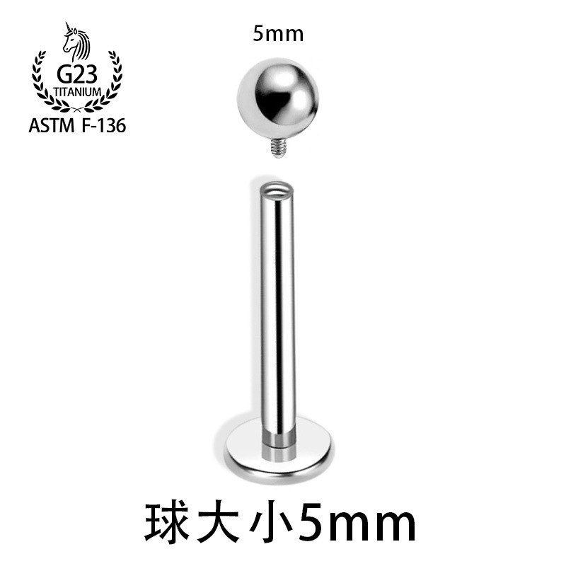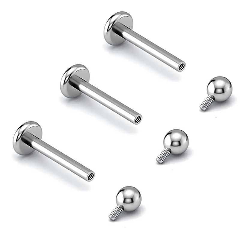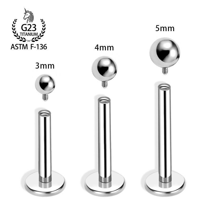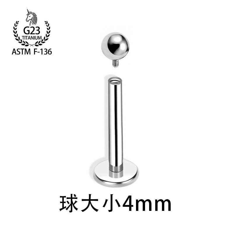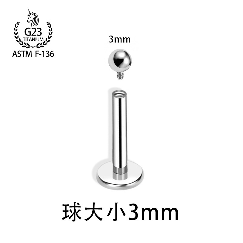 F136钛合金耳钉内螺旋基础钉平底圆球款唇钉内牙耳骨钉穿刺饰品