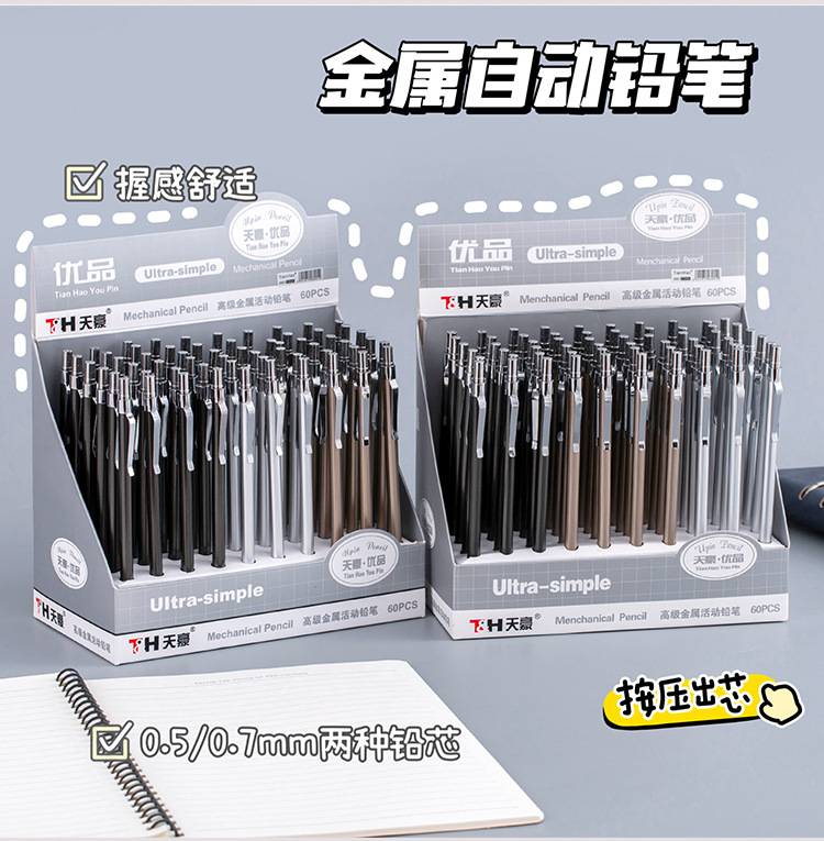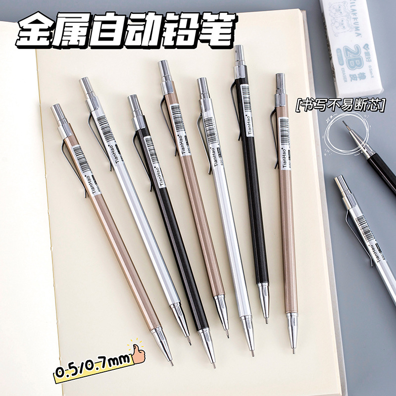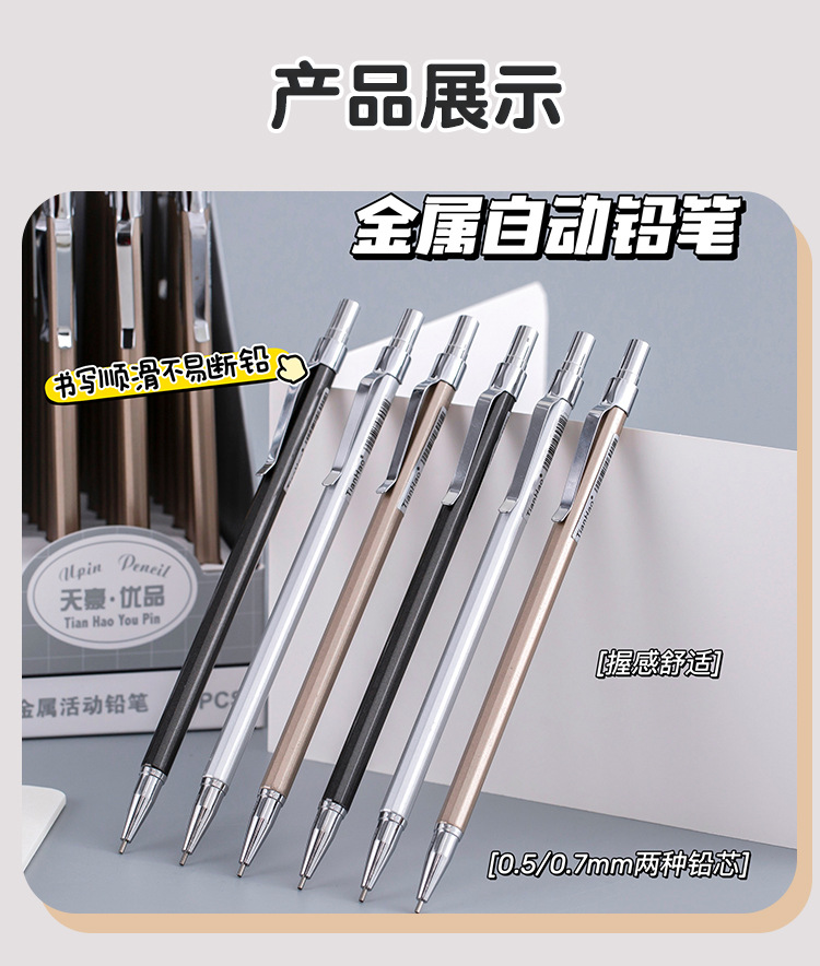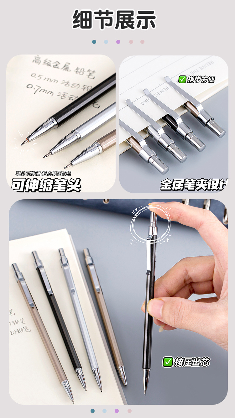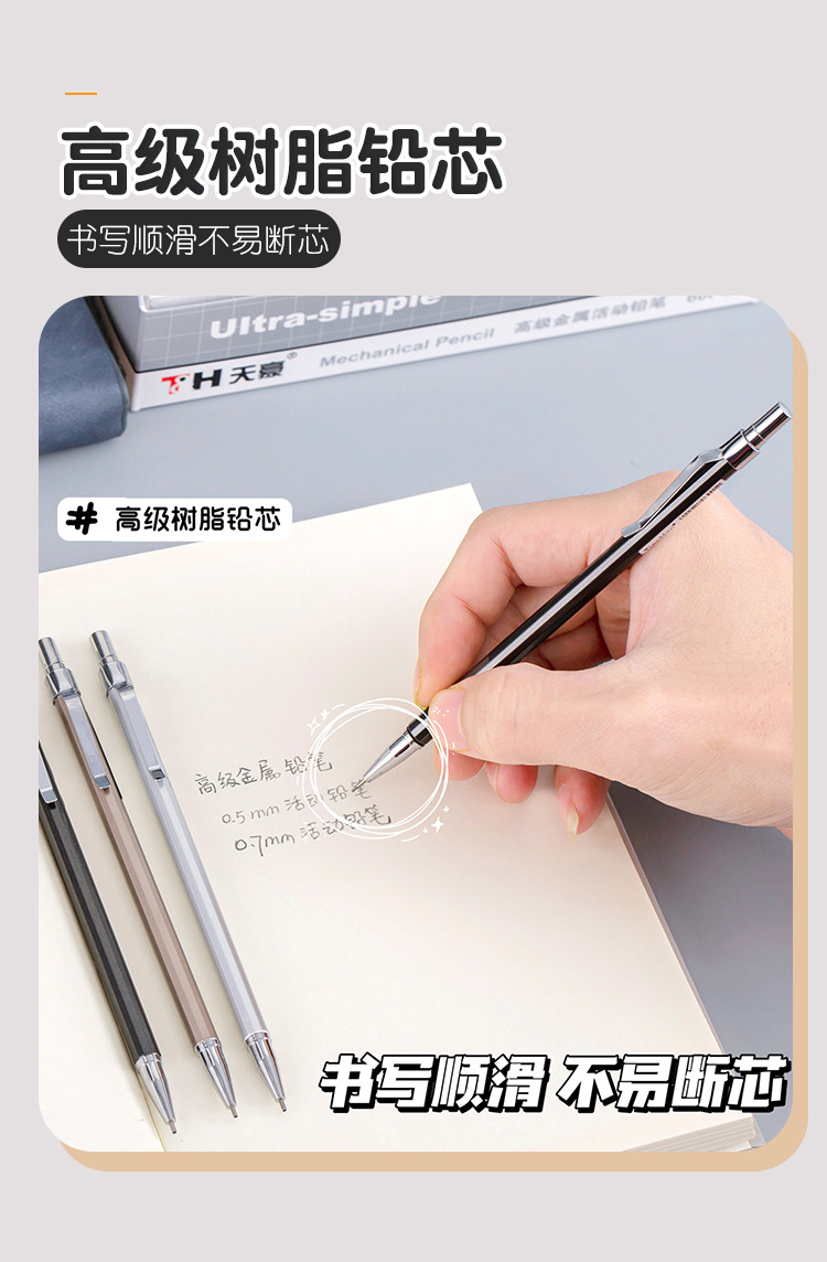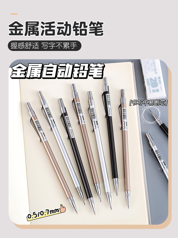 简约自动铅笔0.5按动铅笔学生文具0.7低重心感自动笔活动铅笔礼品