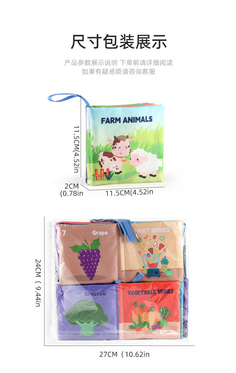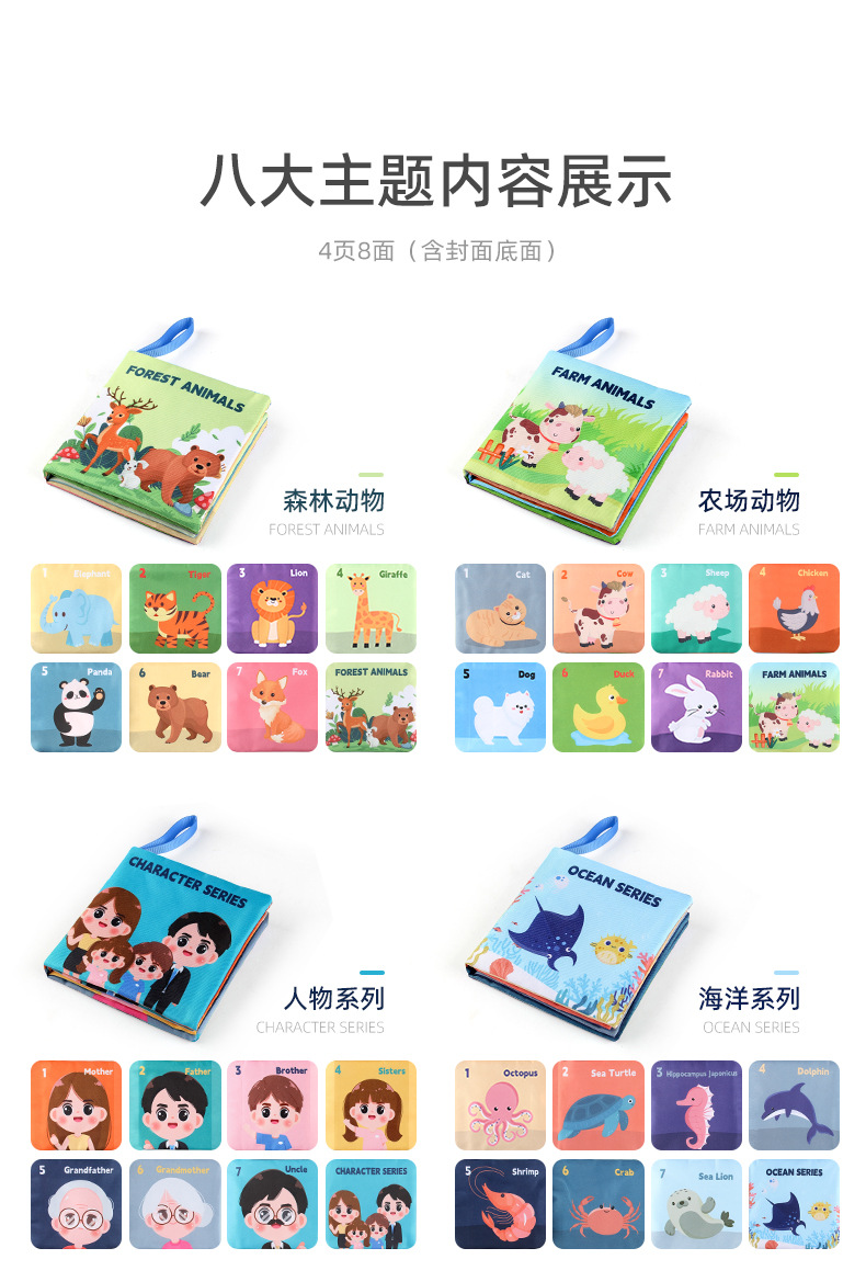 外贸热卖 8件套宝宝布书套装 婴儿玩具0-3岁动物布书圣诞节玩具