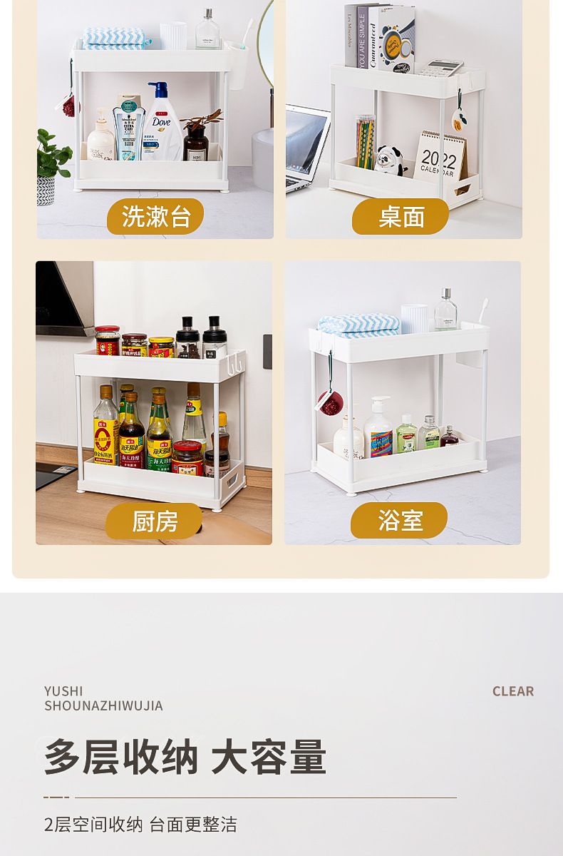 跨境双层塑料厨房亚克力置物架 多功能厨卫沥水篮水槽收纳盒