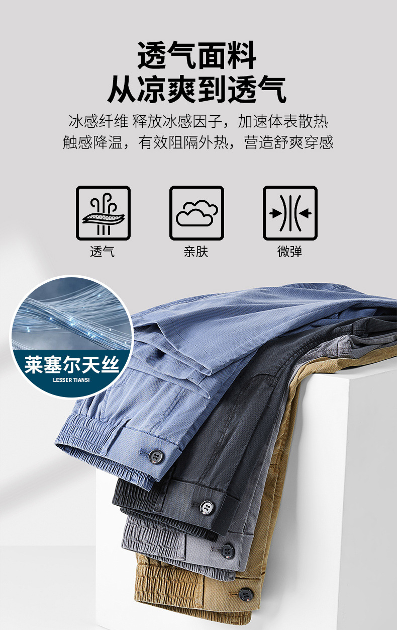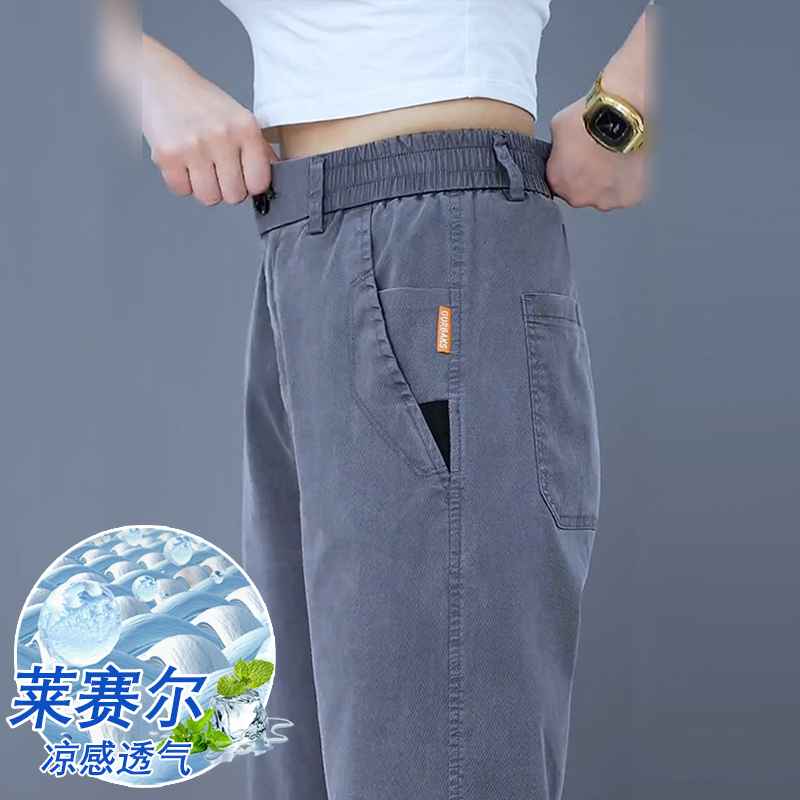 莱赛尔天丝休闲裤男夏季薄款2025新款宽松直筒裤中年男士冰丝裤子