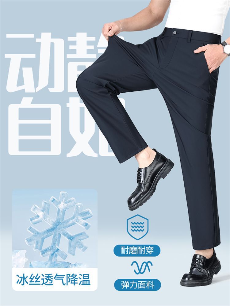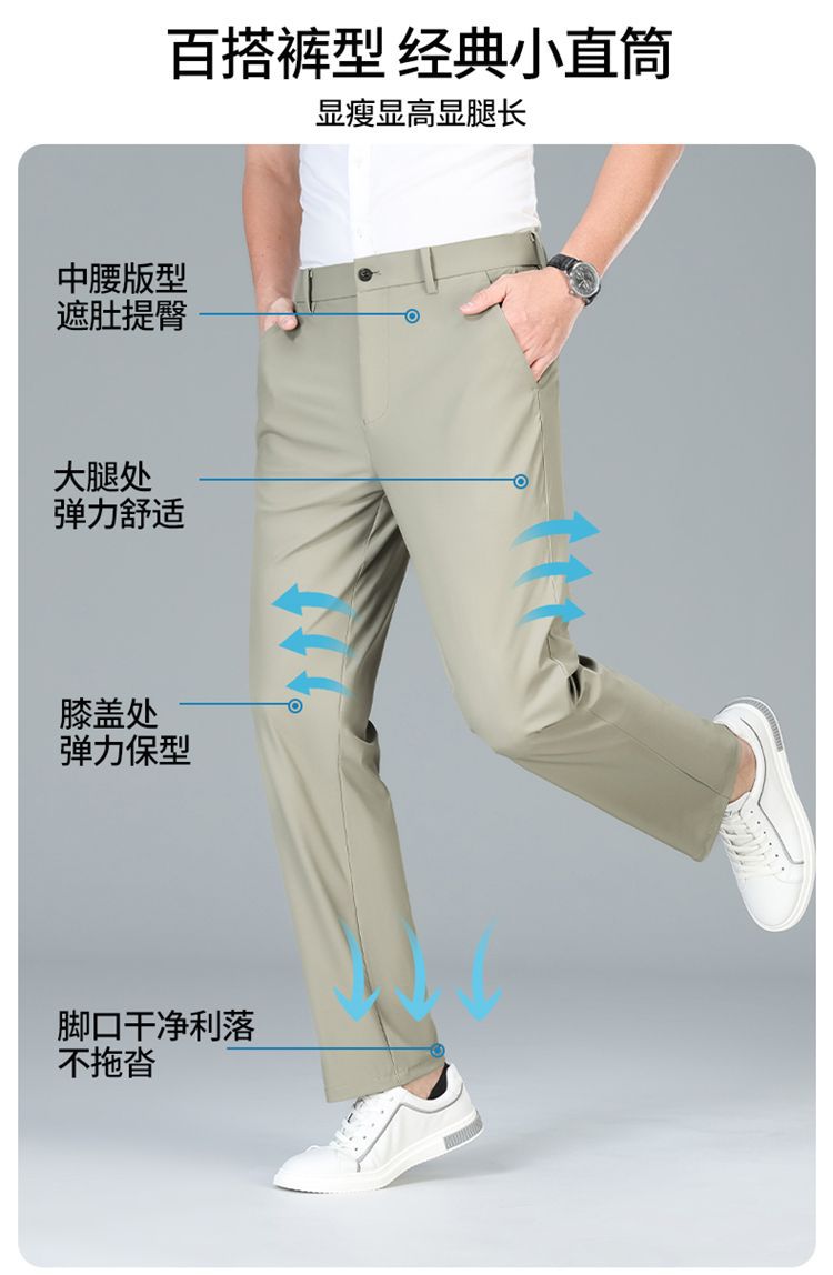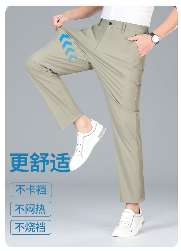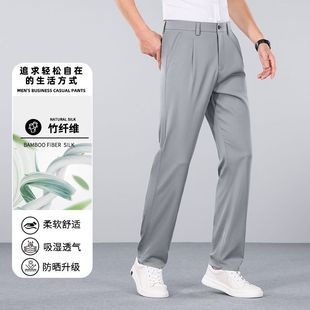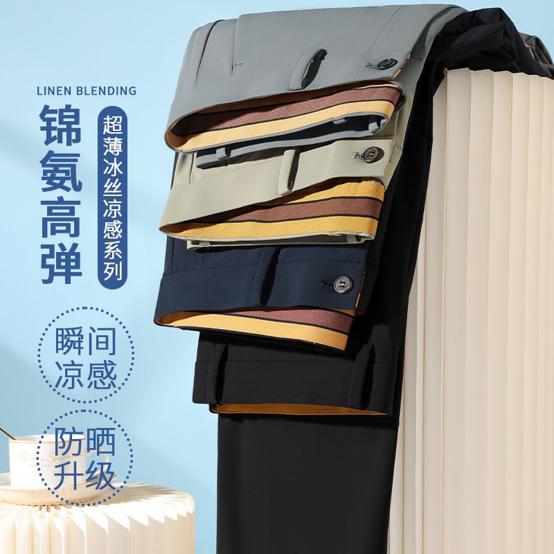 亚麻休闲裤男士冰丝夏季商务休闲弹力透气亲肤免烫抗皱长裤裤子