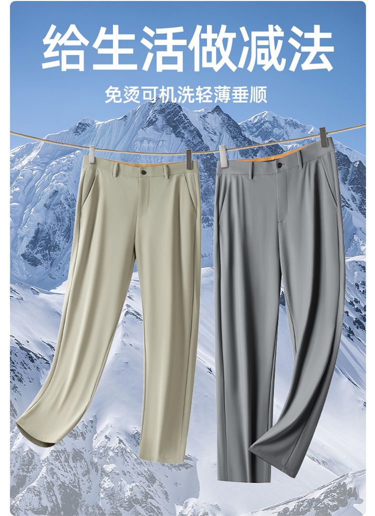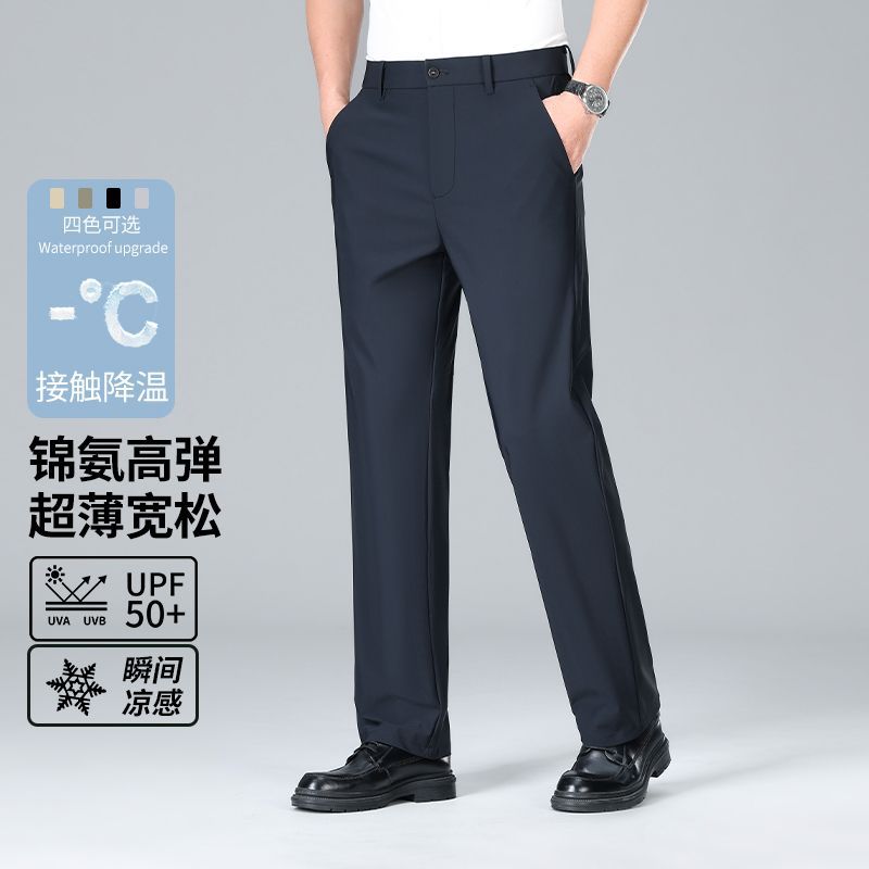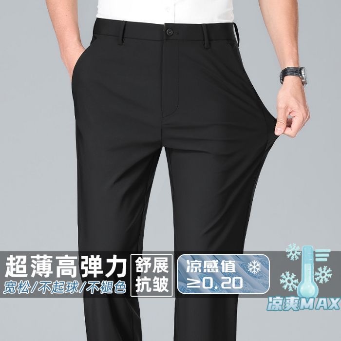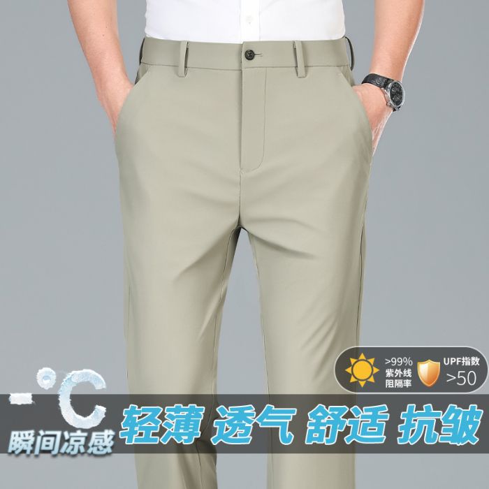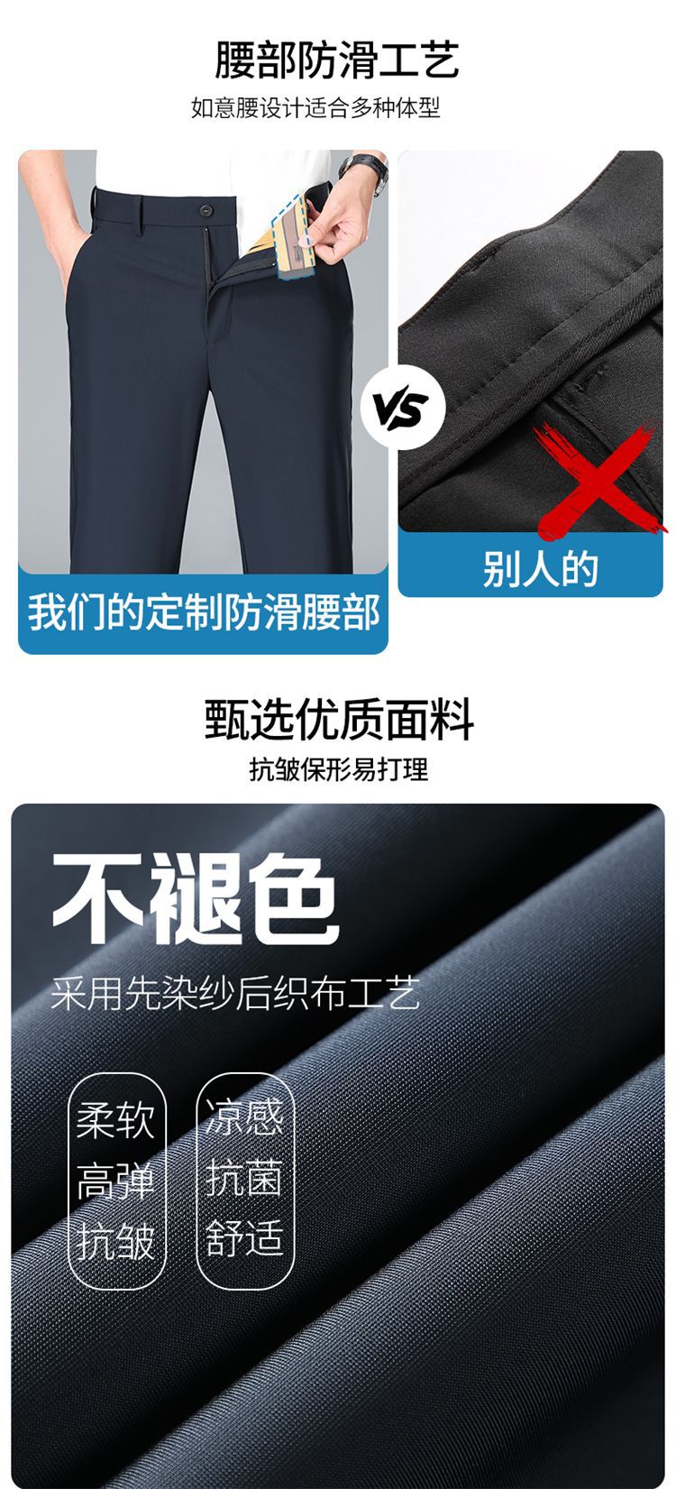 亚麻休闲裤男士冰丝夏季商务休闲弹力透气亲肤免烫抗皱长裤裤子